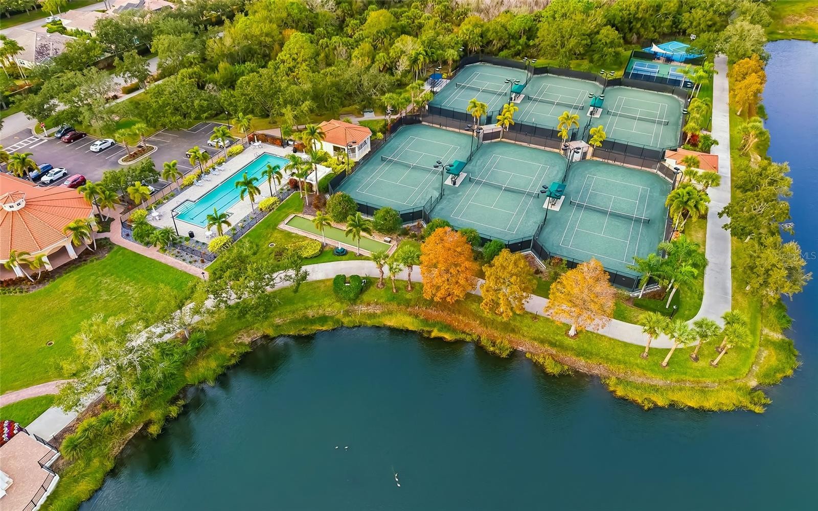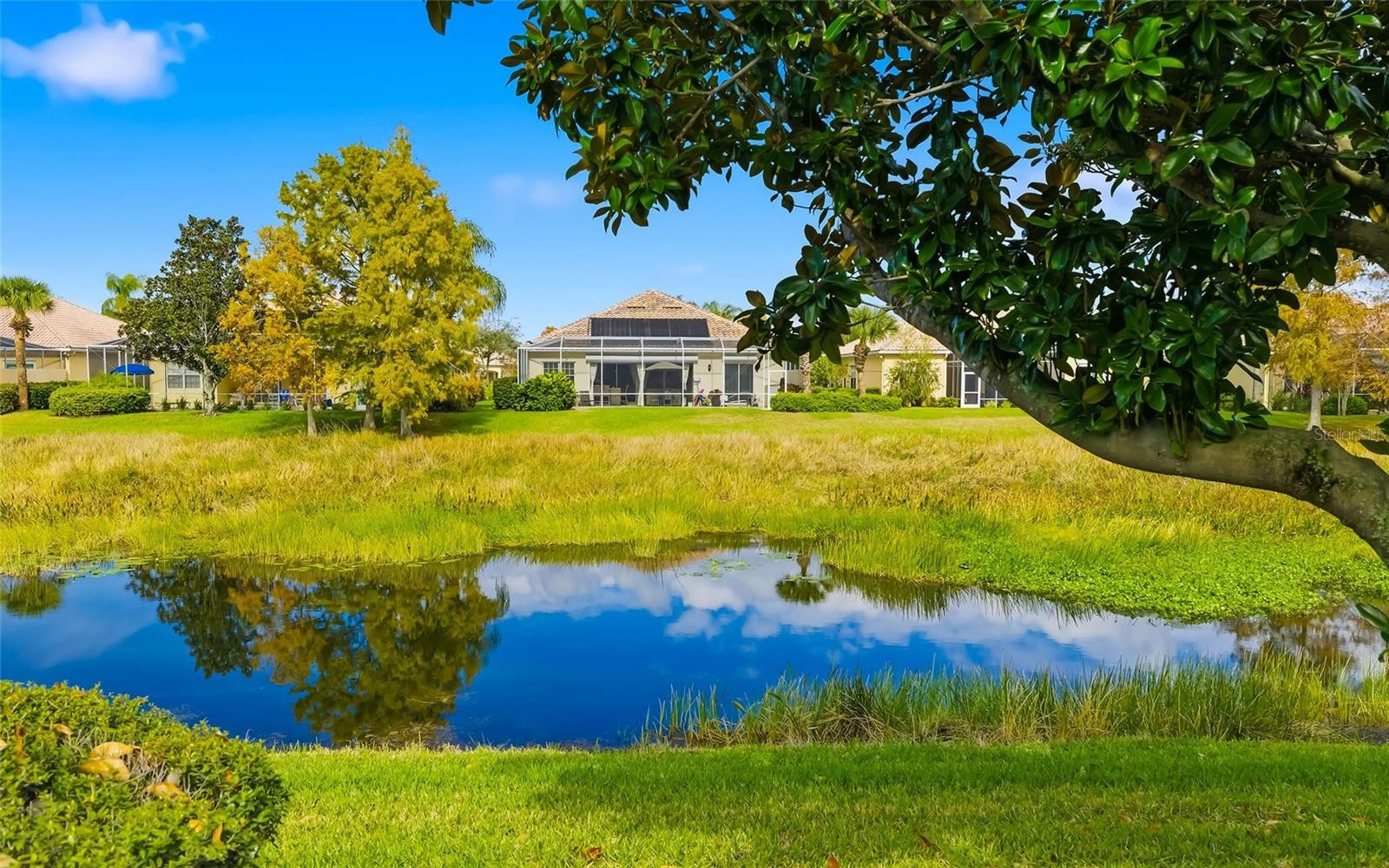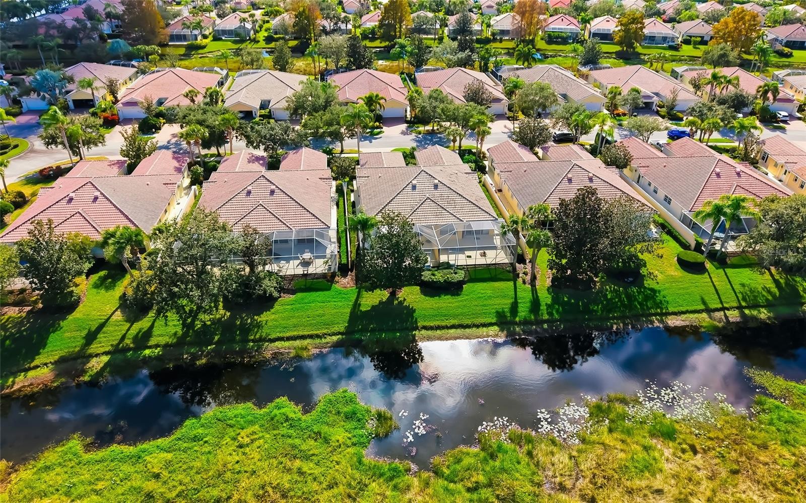 Love Florida life the way it’s meant to be. Easy, sunny and brimming with resort-style amenities. This spacious two-bedroom, two-bath villa in Sarasota’s Village Walk is your invitation to carefree living. Inside, 1,693 square feet shines with vaulted ceilings, an inviting eat-in kitchen counter, and an open dining/family room that flows through sliding doors to an enclosed lanai. Out back, your screened patio overlooks a tranquil lake. The living room’s wall-to-wall built-in cabinetry with glass shelving and integrated lighting adds a polished touch, while two en-suite bedrooms with walk-in closets offer comfort and privacy for everyone. An inside utility room and two-car garage keep it effortlessly functional, because the good life should be convenient, too. Village Walk is an amenity-rich community, ideal for buyers seeking resort-style, low-maintenance living in a secure, socially active environment. Miles of scenic paths weave through 516 acres of lakes and preserves where wildlife sightings are a daily treat. The lakefront Town Center brings staycation energy with a 24-hour fitness center, heated lap and resort-style pools, tennis, pickleball and a full calendar of social events, plus the added perks of an on-site café and bar, gas station, salon, post office and gift shop. The ideal Palmer Ranch location is close to shopping, dining, Legacy Trail and Siesta Key Beach. Carefree days. Peaceful views. Resort-style amenities. Welcome to the good life at Village Walk.