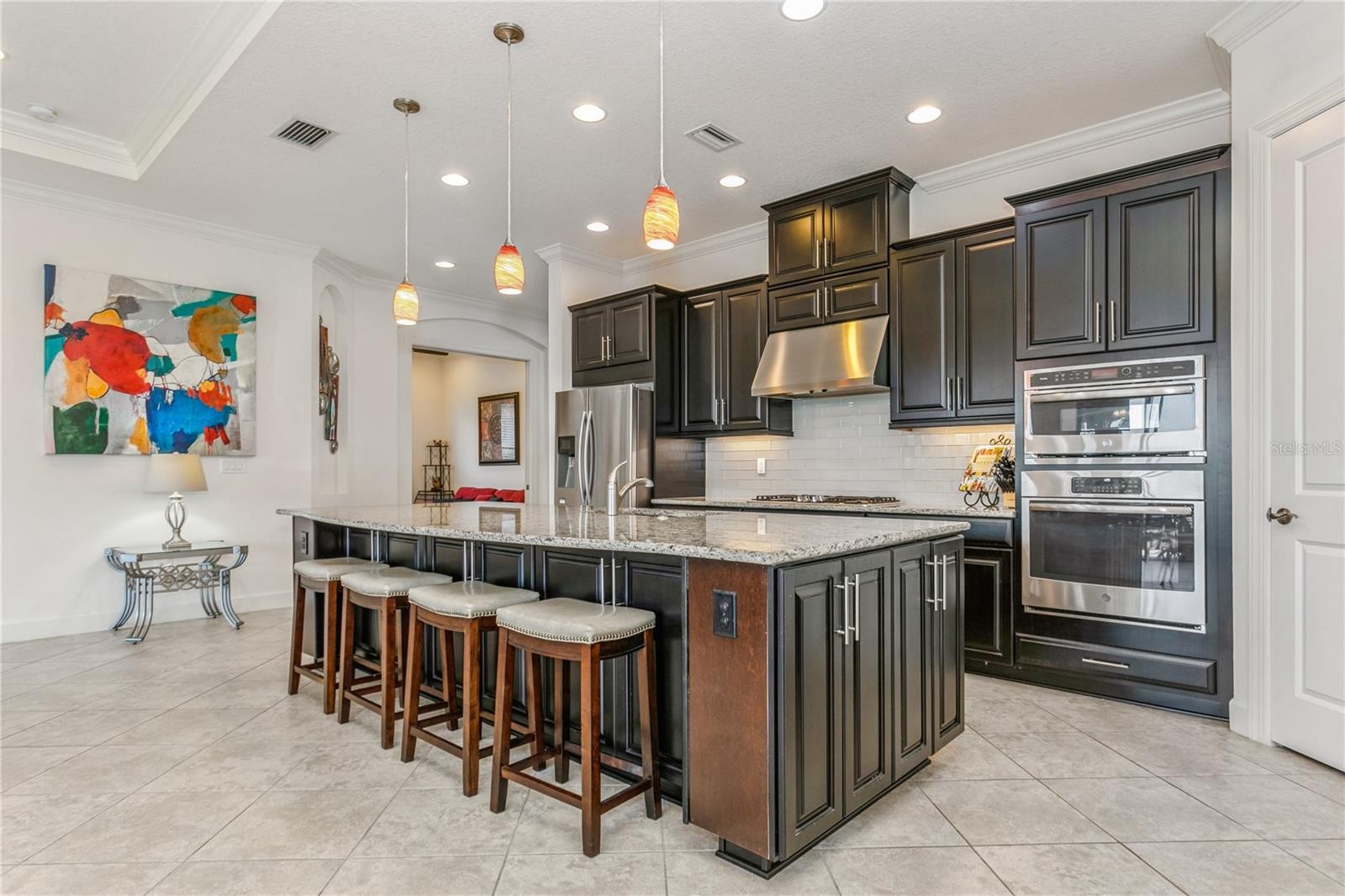 Welcome to this beautifully appointed Taylor Morrison Piceno model, offering 2 bedrooms, 2 bathrooms, a spacious den, and 1,831 sq. ft. of thoughtfully designed living space. Situated on a picturesque POND-VIEW lot, this home perfectly blends comfort, style, and Florida living. From the moment you arrive, you’ll notice a striking HURRICANE IMPACT glass-inlaid front door with dual side panels, creating an elegant entryway. Step into a large foyer that leads into an open, inviting layout featuring ceramic tile flooring in the main living areas and plush carpet in the bedrooms and den. The gourmet kitchen is a true centerpiece, boasting a large center island with built-in storage, a spacious pantry, and beautifully upgraded cabinetry. The open-concept kitchen, living, and dining area is ideal for entertaining, enhanced by tray ceilings with crown molding and two sets of triple sliding glass doors that flood the space with natural light and showcase the pond view and expansive grassy backyard. Retreat to the tranquil master suite, which features lanai access, serene water views, and an ensuite bathroom with separate vanities, a walk-in shower, and two spacious walk-in closets. Bedroom #2 is located at the front of the home and features a stunning HURRICANE IMPACT double windows for abundant natural light. A full bathroom is conveniently located just outside the bedroom in the adjacent hallway—perfect for guests or family. The home also includes a versatile den with pocket doors, ideal for a home office, guest room, or hobby space. Stepping in from the double garage, the entryway leads into the laundry room that boasts a washer and dryer (Whirlpool washer bought in March 2025) ample cabinetry and shelving for added storage. Step outside to enjoy the oversized lanai with a fully equipped OUTDOOR KITCHEN, ideal for relaxing or hosting gatherings while enjoying peaceful pond views. This home is move-in ready and full of thoughtful upgrades, designed for easy, elegant living in one of the area’s most desirable communities. Living in the Bellacina by Casey Key community offers more than just a beautiful home. Enjoy resort-style amenities including a sparkling, resort-style heated swimming pool with cabanas, a state-of-the-art clubhouse with a chef’s kitchen, pool table, a 24-hour fitness center and showers, outdoor spa, bocce ball courts, corn hole and grill area, and cozy gas fire pits. There is a private community entrance onto the famous Sarasota Legacy Trail, 4 lighted pickleball courts, a Har Tru tennis court, a playground, and 2 dog parks. A full calendar of events is organized by the on-sight Activities Director ensuring there’s always something to do and the full-time HOA Manager is on-site M-F as well. Location is key! Bellacina is only a 2.5 mi. golf-cart ride from Nokomis Beach, 5 miles from historic downtown Venice, 20 minutes to the world-renowned Siesta Key, and 30 minutes to downtown Sarasota and SRQ International Airport. This home is not just a gorgeous residence....it's a lifestyle!!