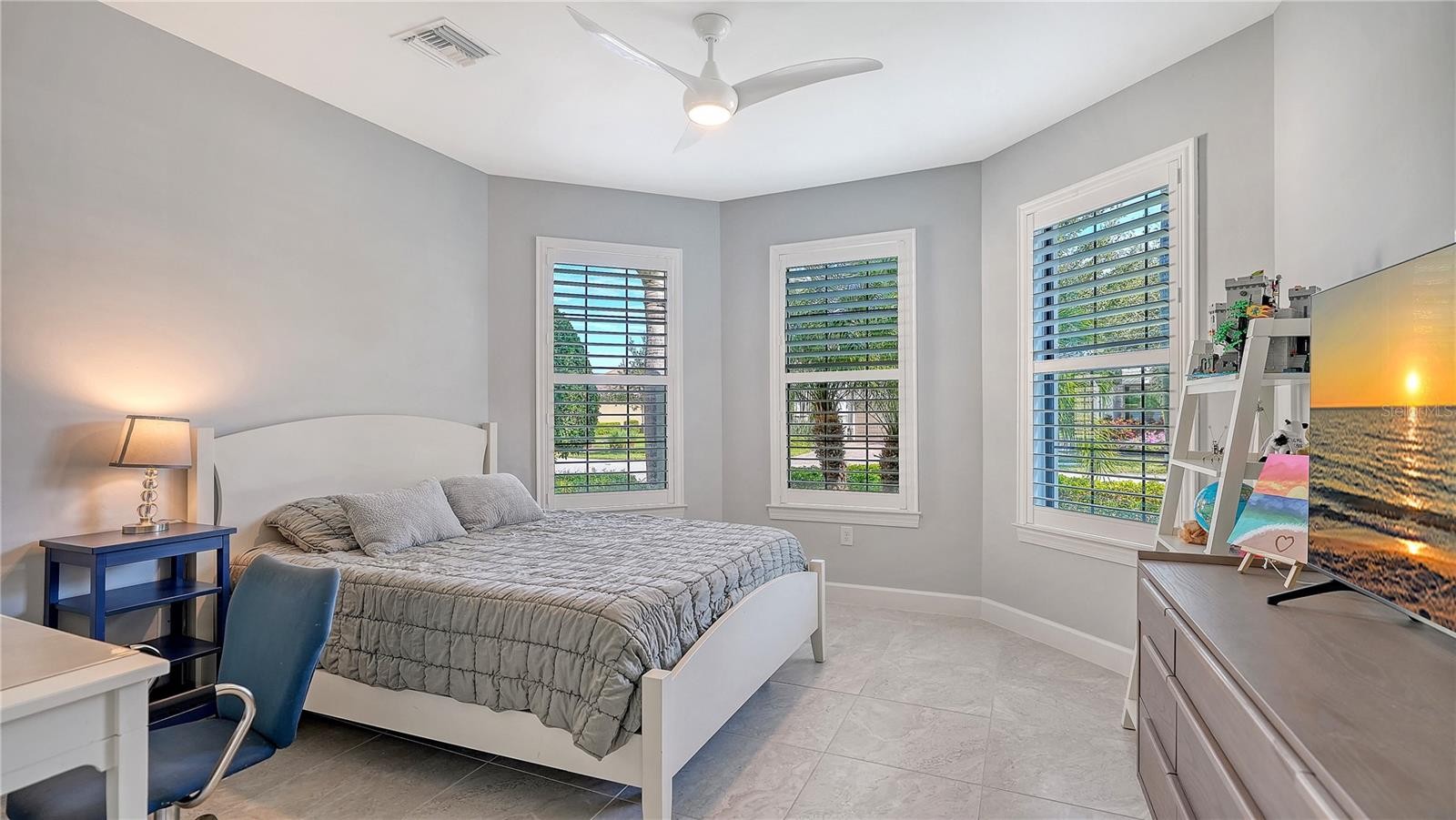 Welcome to Florida living at its finest! Step into the sunlit foyer and you are enticed to walk straight back to the beautiful heated saltwater pool. The pool is accented with decorative waterfall bowls and a stunning hot tub. The 90 degree sliding pocket doors make the outdoors come inside by making an expansive open feel as you get set to enjoy the outside. The lanai is spacious enough for a dining area, lounge chairs and a grill. The open living space has an easy flow from kitchen to dining and living room. The kitchen is light and airy and features Kitchen Aide appliances. The island is just over ten feet long with a breakfast bar and large rectangular kitchen sink, pendant lighting and extra storage. The walk in pantry is spacious enough to allow ample food storage and small appliance storage as well. Just off the foyer are French doors that open into the executive office or den. The owners suite is situated for privacy and accented with a trey ceiling. The ensuite bath offers a Roman shower, custom niche, bench seat and double sinks. Large owners suite closet is customized and features dressing table with makeup mirror. The second bedroom has bay windows and an ensuite bath with shower tub combination. The third bedroom has a bath adjacent with tub shower combination and linen closet. The laundry room is conveniently located near the garage and has utility sink and extra cabinets. Lots of extras make this home move in ready with custom Plantation shutters, repainted inside and outside in 2024, 8' doors, walking in closets in all bedrooms, and designer light fixtures. Enhanced safety with Ring door bell and camera system around the house, inside the three car garage and pool area. Steps away from the community center with first class amenities such as pickle ball, tennis, bocce ball, weight room, resort style pool, hot tub, and dog park. Hammock Preserve is a maintenance free community in Palmer Ranch. Conveniently located to Sarasota and Venice shopping, restaurants and world class beaches, Siesta, Nokomis and Casey Key.