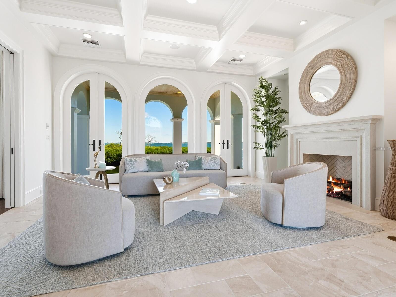 Exquisite Palladian-Style Waterfront Estate Located on the serene shores of Sarasota Bay, this home epitomizes elegance and sophistication. Designed by Cliff Scholz and meticulously crafted by Murray Homes, this, 5,300-square-foot masterpiece is situated in a double-gated community offering unparalleled privacy and exclusivity. Perched at the end of a quiet cul-de-sac, the property boasts almost 200 feet of pristine waterfront, with breathtaking views of the downtown Sarasota skyline and a protected deep-water yacht slip. Deeded access to a private Gulf of Mexico beach club enhances the ultimate coastal lifestyle. Inside, the home features an exceptional floor plan with four luxurious bedroom suites and numerous entertainment spaces, including a formal living room, dining room, family room, and a gourmet kitchen equipped for the finest culinary creations. Expansive waterfront terraces, a redesigned viewing porch, and his-and-her offices add to the home's functional elegance. Every detail has been executed to perfection, from the impeccable millwork to the finest finishes throughout. With magical views from every room, this estate embodies class, comfort, and privacy in one of Sarasota's most coveted locations. Experience refined waterfront living at its finest.