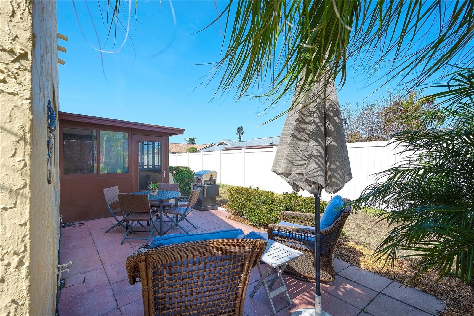 Step inside this charming 1 bedroom/1 bath condo and you'll immediately be saying, "Ahhh, now this is NICE!". Located in the very popular 55+ community of Meadowcroft, this single story END UNIT is LIGHT and BRIGHT and MOVE-IN READY. This unit is also conveniently located right next to your covered carport parking spot. Highlights include HURRICANE WINDOWS, new LIGHTING in the kitchen, a BRAND NEW WASHER/DRYER combo, and freshly cleaned carpets. There is a glass-enclosed lanai which leads out to an amazing PRIVATE PATIO! This unit also comes mostly furnished. You will definitely see the pride of ownership in this well-cared for home. Meadowcroft is a vibrant and active community with great amenities which include a heated pool, pickleball- tennis- shuffleboard courts, clubhouse, and gazebo overlooking a pond with the relaxing & soothing sounds of a fountain. The low monthly HOA fee covers almost everything except electric. Among those are cable TV, internet, exterior maintenance, recreational facilities, pest control, grounds maintenance, and water, sewer, & trash. Meadowcroft is in a NO FLOOD ZONE. It's also PET-FRIENDLY. The Meadowcroft community is located in West Bradenton within minutes of shopping, restaurants, hospitals, golf, lovely parks, and our beautiful beaches on Anna Maria Island. Whether you're a snowbird or fulltime resident, you will love this home and this community.