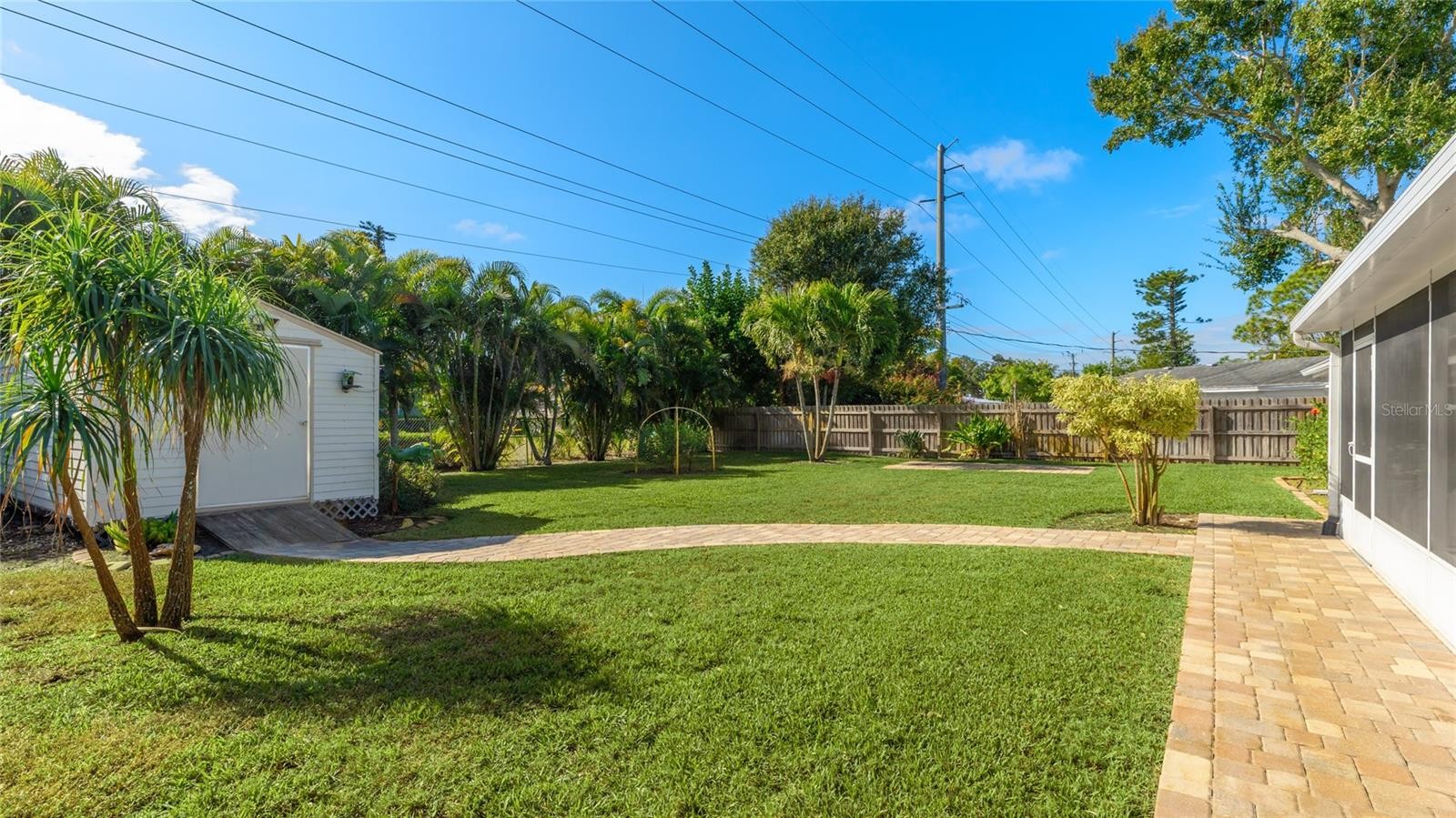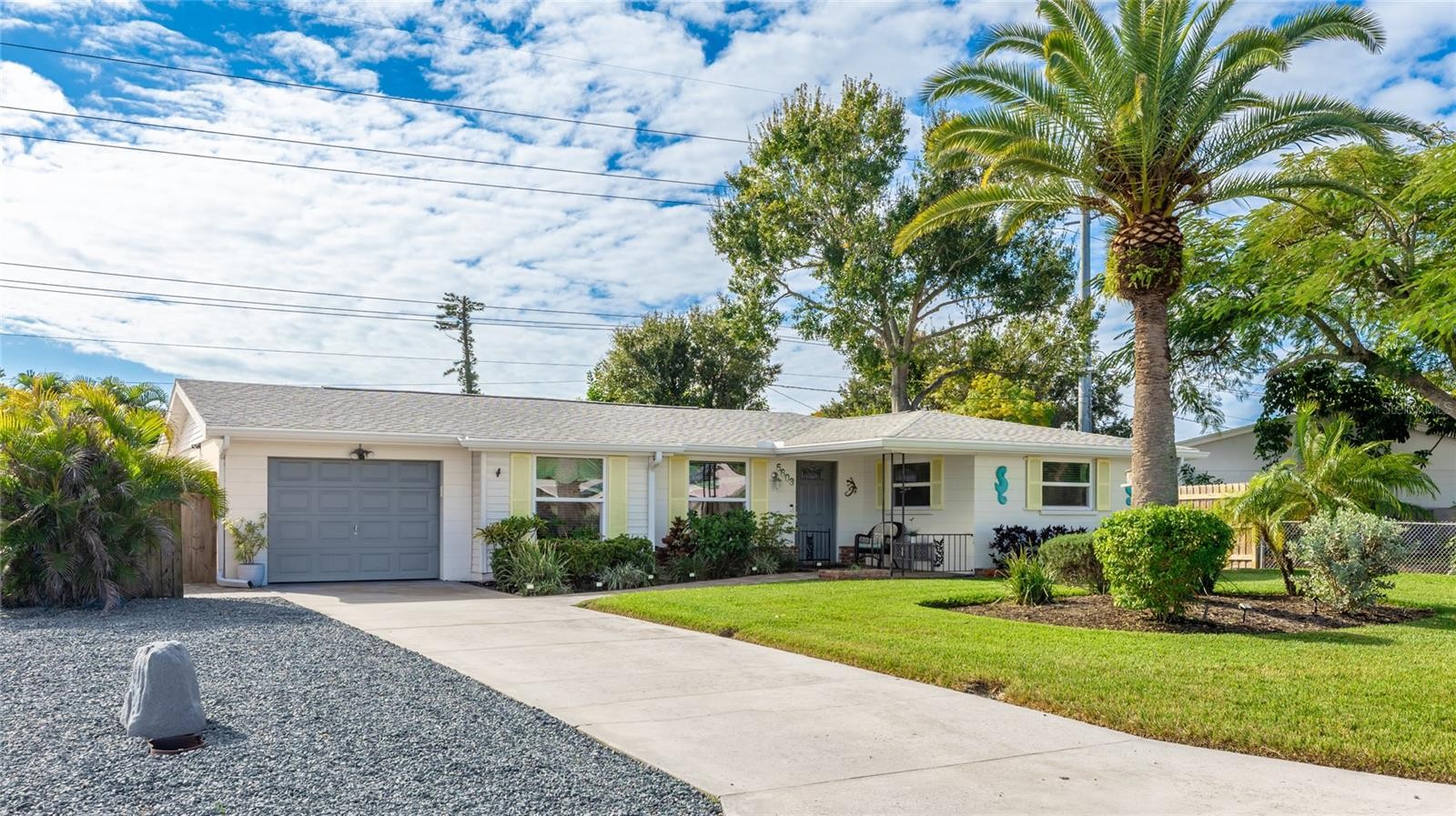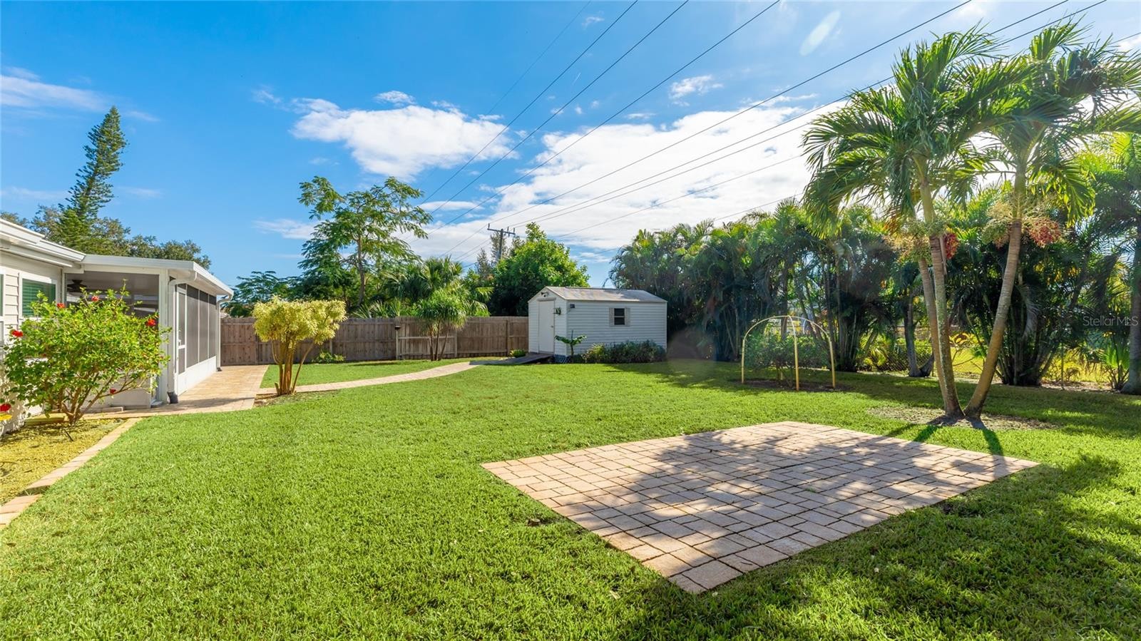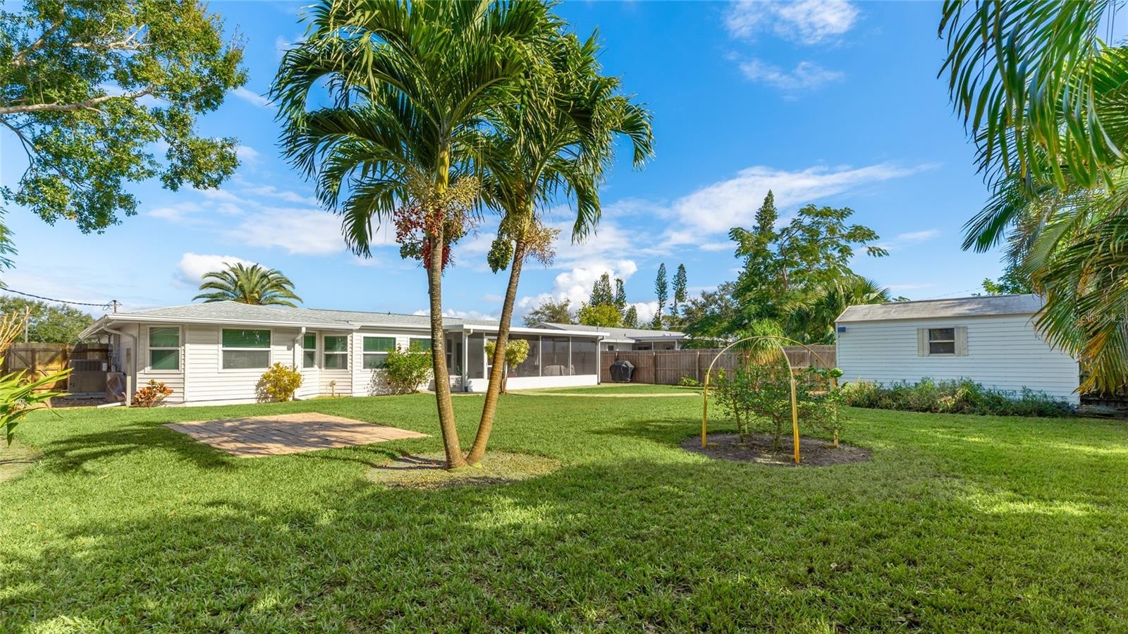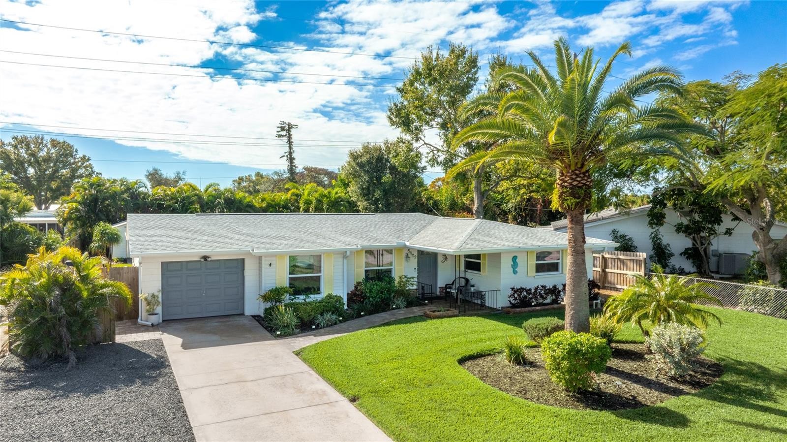 Completely UPDATED NW Bradenton Home near the beaches – Move-in ready with modern upgrades! This beautifully maintained 2-bedroom, 2-bath concrete block home with an OVERSIZED 1-car garage is located in a highly sought-after area, just minutes from stunning Anna Maria Island and the scenic trails of Robinson Preserve. Step inside to discover 1,573 sq. ft. of comfortable living space with engineered wood and ceramic tile flooring. NO carpet whatsoever. This spacious layout is light and bright and designed for easy living. This home has a modern kitchen with stainless steel appliances, a whole-house water softener and reverse osmosis system. All appliances stay including washer & dryer. Upgrades include NEW ROOF (2022), NEW A/C (2020). NEW REFRIGERATOR (2023), NEW WASHER AND DRYER (2022), NEW WATER HEATER (2019) AND UPDATED MASTER BATH (2018). All windows are IMPACT GLASS hurricane windows for peace of mind. SECURITY SYSTEM also included. Enjoy Florida living year-round in the large screened-in lanai (21x14), perfect for entertaining or relaxing. Large brick paved areas in the back and on the side of the home. The fully fenced backyard boasts lush landscaping and offers plenty of room for a pool. Spacious shed equipped with electricity. LAWN IRRIGATION SYSTEM run by a PRIVATE WELL —no metered water required! Driveway has extra spot for a second car or boat! PROPERTY HAS NEVER FLOODED, FLOOD ZONE X so lender will NOT require flood insurance. Close to top-rated schools, shopping, restaurants, fitness centers and some of the finest beaches in the world!