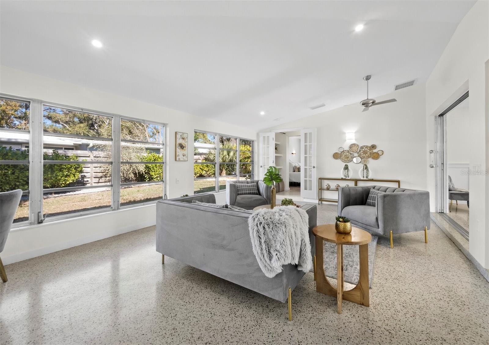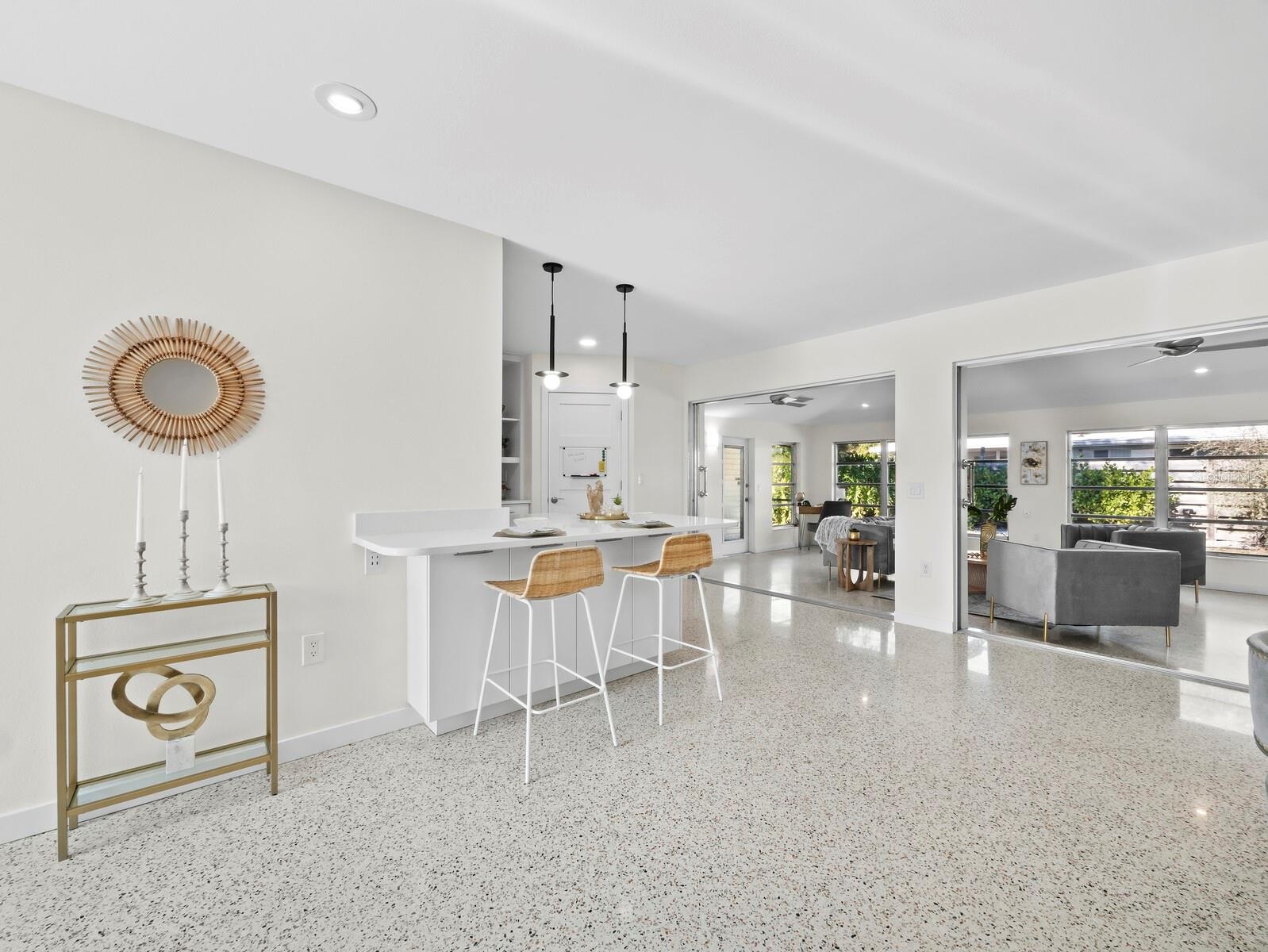Tucked away in the historic Museum District you will find an impeccable example of mid-century modern architecture. This classic home is perfectly situated on a large corner lot & boasts the clean, sleek lines that were so common during this period. Step inside the front door to beautifully refinished terrazzo floors that extend throughout the home. The thoughtfully designed layout maximizes space and natural light. A full wall of sliding glass doors pockets completely into the wall, creating seamless indoor-outdoor living and opening the main living area to a spacious Florida Room filled with windows overlooking the private backyard. The bedroom wing includes a primary suite, two generously sized guest bedrooms, and two bathrooms that retain their original 1950s and 1960s character. Tons of updates and upgrades. We will provide you with a list.