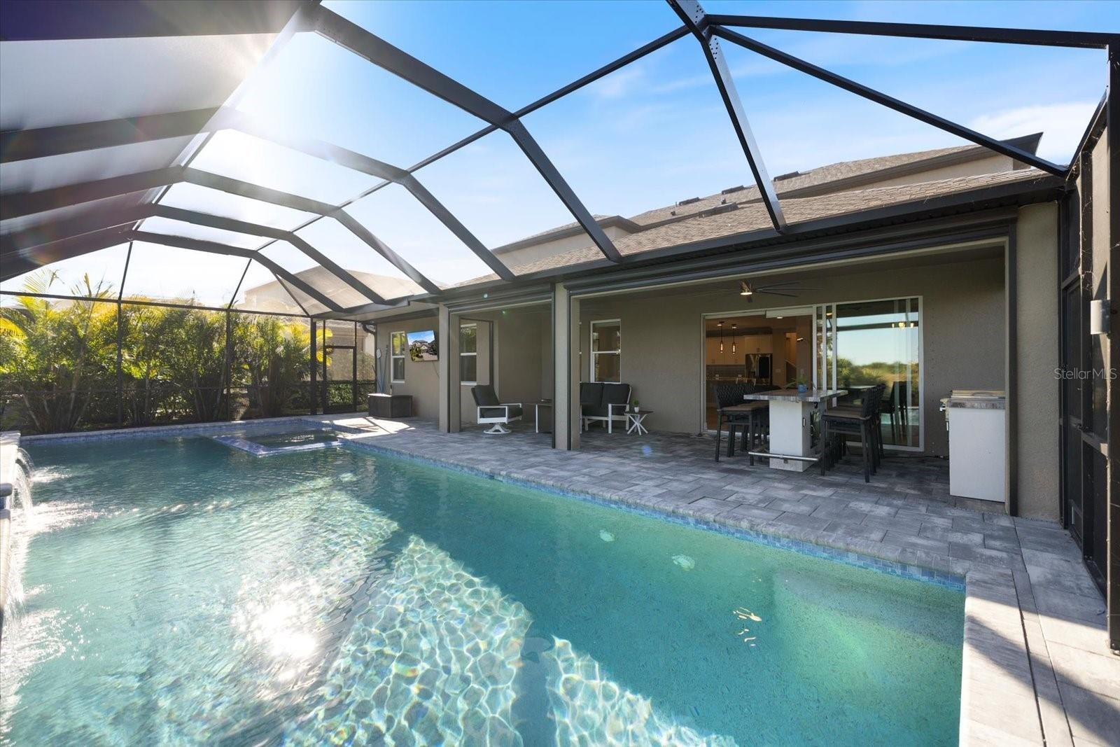 One or more photo(s) has been virtually staged. Welcome to a lifestyle of comfort, space, and resort inspired living in this stunning newer construction home located in the highly desirable Palmer Ranch area of Sarasota. Set within a gated community offering resort style amenities, this expansive 3,651 square foot residence is designed for those who value both everyday ease and elevated entertaining. From the moment you arrive, the three car garage, manicured surroundings, and modern coastal architecture set the tone for what awaits inside. The heart of the home is a bright, open living space anchored by a chef inspired kitchen with an oversized island, generous pantry storage, that flows into the dining and family areas, making it ideal for gatherings large or small. Sliding doors open to a private backyard retreat where days are spent enjoying the large pool and spa, relaxing under the covered lanai, or hosting friends in the outdoor kitchen while taking in peaceful water views. This indoor outdoor connection defines the Florida lifestyle and makes everyday living feel like a vacation. With five true bedrooms and a large loft, the home offers flexibility for multi generational living, remote work, fitness space, or a dedicated media room. The luxurious primary suite is a private sanctuary featuring a custom walk in closet and a spa like bath with a soaking jacuzzi tub, walk in shower, and elegant finishes that invite relaxation at the end of the day. Thoughtful upgrades throughout include a RainSoft water softener system, Ring security system, and custom storage solutions that enhance both comfort and functionality. Living in Palmer Ranch means you are surrounded by some of Sarasota’s most sought after attractions and conveniences. Siesta Key Beach, consistently ranked among the top beaches in the country, is approximately 7 miles away and offers powdery white sand and breathtaking Gulf sunsets. The Legacy Trail, a favorite for walking, running, and biking, is about 2 miles from the home and provides miles of scenic, car free recreation. Downtown Sarasota is roughly 9 miles away, where you can enjoy arts, culture, waterfront dining, and events year round. Nokomis beach and its famous sunsets are 7.2 miles and a 12 minute drive. When it comes to dining, some of the most searched and loved restaurants in the Sarasota area are just a short drive away. Owens Fish Camp, known for its laid back Old Florida charm and fresh seafood, is approximately 9 miles away. Ophelia’s on the Bay, a waterfront dining destination on Siesta Key offering elevated coastal cuisine, is about 8 miles from the home. Selva Grill, a downtown favorite for Latin inspired fine dining, is also around 9 miles away. This home offers the rare combination of newer construction, generous living space, luxury finishes, and an unbeatable location within one of Sarasota’s most desirable master planned communities. Here, life is defined by comfort, connection, and the freedom to enjoy everything Sarasota has to offer, from beach days and bike rides to elegant evenings out and quiet nights at home by the pool.