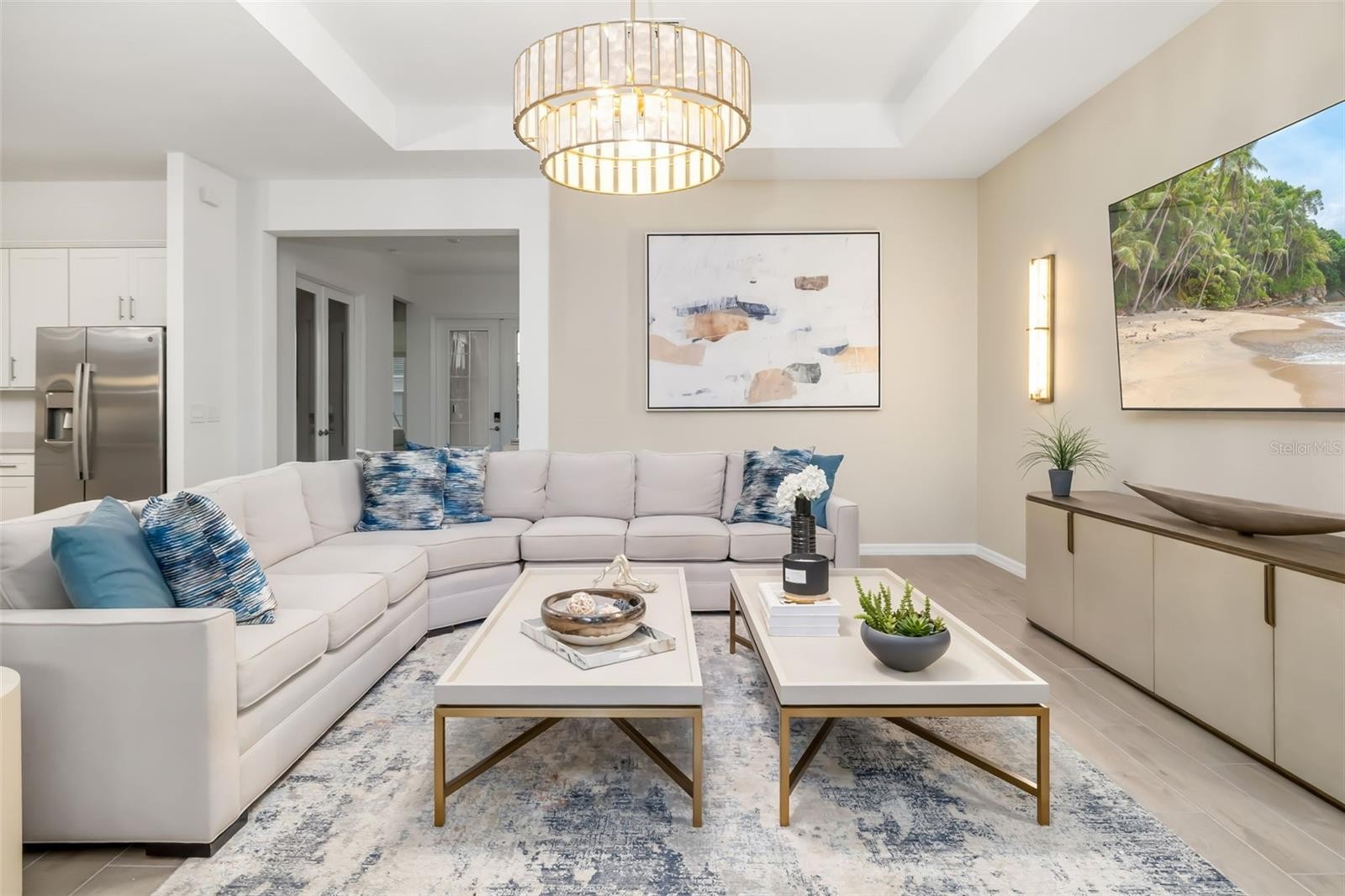 Welcome to Calusa Country Club, a brand new golf course retreat where luxury meets resort style living. Seller would prefer to sell home with the option of designer quality furnishings. Step into this never lived in luxury Summerville floor plan with incredible golf course views, offering the perfect blend of elegance and comfort. This home features 3 spacious bedrooms, 3 full bathrooms, a 3-car garage, a private office/den with French doors, and a stunning built-in pool, spa and outdoor kitchen. The open concept design boasts tile flooring throughout, an upscale chef’s kitchen with quartz countertops, stainless steel appliances, and an oversized island all ideal for entertaining family and friends. Your primary suite offers private lanai access, a huge walk-in shower, dual sinks, and two walk-in closets. The split floor plan provides privacy with two additional bedrooms, each with its own full bathroom. Step outside through the sliding glass doors to your oversized, screened lanai overlooking the golf course. Enjoy the heated pool and spa, perfect for relaxing after a round of golf. Best of all, a full golf membership to Calusa Country Club is included with your HOA! With two championship courses just steps from your door, you’ll enjoy unlimited access to one of the area’s premier golf experiences. Many amenities to come including full restaurant, fitness center, tennis/pickleball courts, bourbon bar, putting course with tiki bar and much more. Don’t miss this opportunity to live in a true luxury resort. Home has the option to sell with all luxury furnishings. Schedule your private showing today!