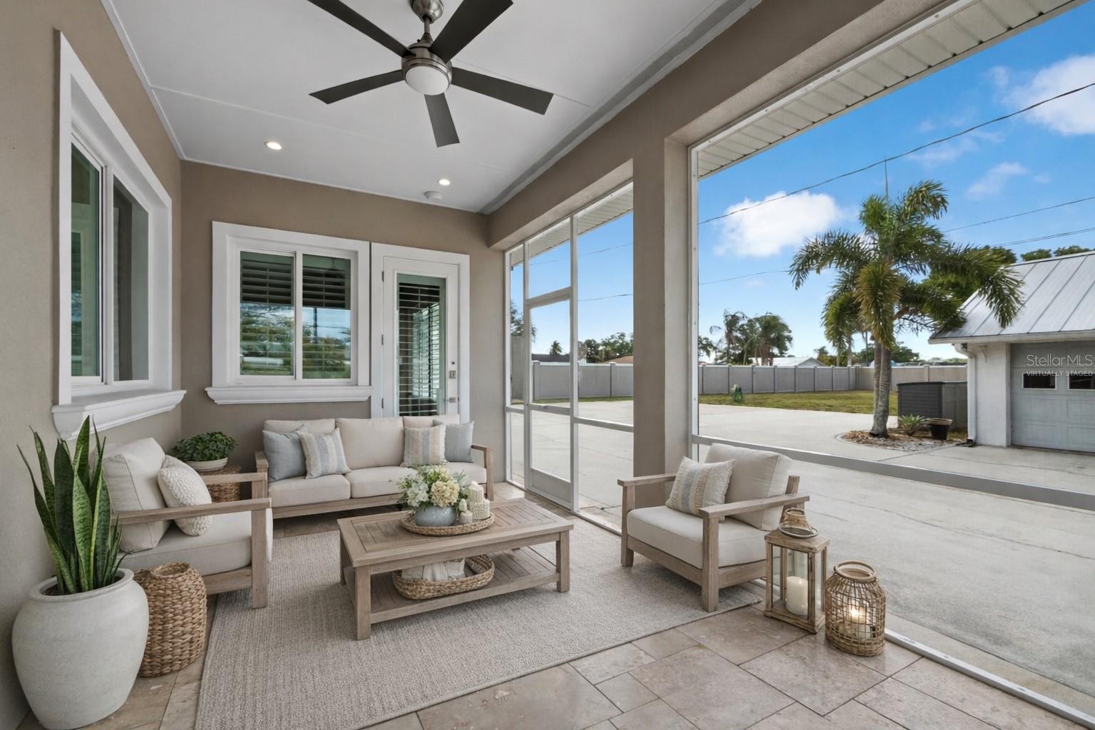 One or more photo(s) has been virtually staged. Brand new build in 2017. No HOA Fee or restrictions. Tucked away on nearly an acre in the desirable Phillippi Gardens area, this private 3-bedroom, 3.5-bath estate offers a rare blend of space, security, and classic Florida charm. Enclosed by a full concrete perimeter wall with an electronic gate, the property provides exceptional privacy and peace of mind in a prime location just minutes from Siesta Key, downtown Sarasota, shopping, dining, and top-rated schools. Designed for both comfort and efficiency, the home features hurricane-impact windows and doors, a durable metal roof, and solar panels with net metering available for energy savings. Additional upgrades include propane service, plantation shutters, and a comprehensive exterior security system with 11 surveillance cameras. Inside, the home offers a warm and inviting layout with spacious living areas, custom details, and seamless indoor-outdoor flow ideal for everyday living and entertaining. Step outside to your own private retreat featuring a sparkling pool surrounded by mature landscaping and expansive yard space. Car enthusiasts, hobbyists, and those needing extra storage will appreciate the detached, air-conditioned garages along with an RV hookup. Ample room to store your boat or RV. Set on nearly an acre with room to expand or simply enjoy the space, this unique property boasts privacy and convenience.