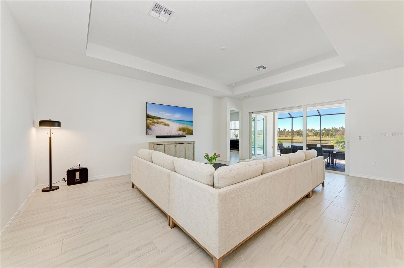 MOVE-IN READY HOME WITH LAKE & GOLF COURSE VIEWS! Welcome to Calusa Country Club, a premier golf and resort-style community where luxury living meets the Florida lifestyle in the #1 Master-Planned award-winning LAKEWOOD RANCH, FL. Lennar's Newest Golf community with a bundled full golf membership included with your HOA, offering unlimited access to two Gordon Lewis–designed championship golf courses, that are ready to golf! This stunning Summerville single-story floor plan showcases incredible lake/golf course views and has the perfect blend of elegance, comfort, and functionality. The spacious home features 3 bedrooms, 3 full bathrooms, a private den/office with French glass doors, with a designer feel throughout. The 3-car garage-with beautiful custom epoxy floors provides extra storage for golf carts, hobbies, or versatile needs. The open-concept living area flows effortlessly into the heart of the home—an upscale chef’s kitchen featuring gas cooktop with hood, elegant quartz countertops, stainless steel appliances, an oversized island, and designer finishes. Porcelain Tile flooring throughout enhances the modern, airy feel. Sliding glass doors lead to an oversized screened lanai, ideal for indoor-outdoor entertaining. Your luxurious owner’s suite offers private lanai access, dual sinks with upgraded faucets, a large walk-in shower, and two sizable walk-in closets. A split floor plan ensures privacy with a secondary suite and an additional guest bedroom, each with its own full bathroom. Step outside your spacious Lanai and unwind by your private heated pool and spa, perfectly positioned to enjoy your tranquil lake view with birds in the distance and golf course views after a round on the course. Home also has full home security system installed and surround sound speaker system. Residents of Calusa Country Club enjoy a top-notch array of resort-style amenities, including a full-service restaurant, bar, resort pool, fitness center, tennis and pickleball courts, bourbon bar, putting course with tiki bar, and more—many coming soon, while courses are open. Whether you're hitting the fairways, savoring a meal at the club, or relaxing poolside under the Florida sun, life is undeniably great at Calusa. Ideally located near Lakewood Ranch Main Street and three town centers, residents enjoy easy access to premier shopping, dining, entertainment, and everything this coveted location enjoys. Don’t miss your chance to live in one of Lakewood Ranch’s most exciting new resort communities—schedule your private showing today.