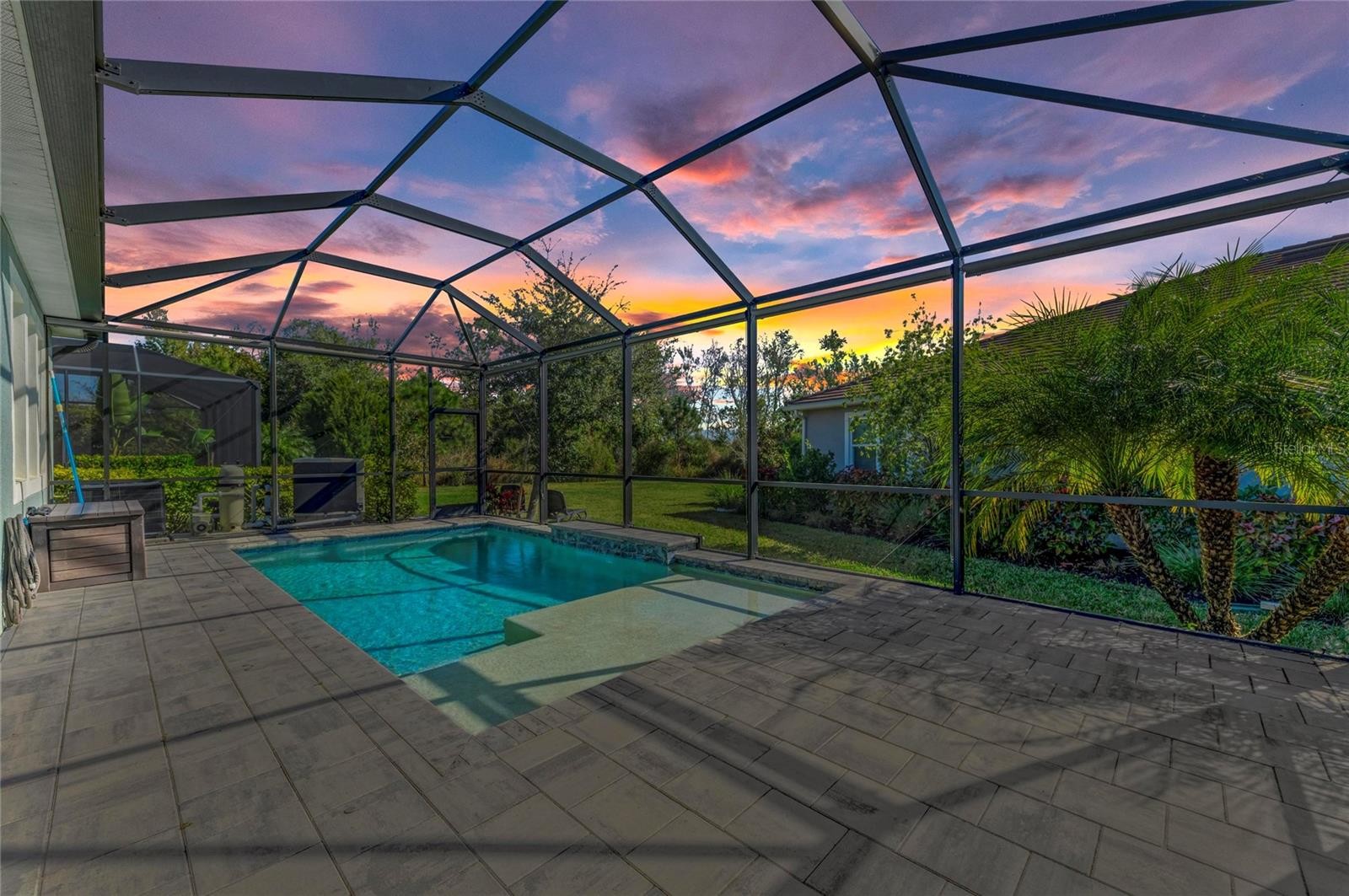 Welcome to the exclusive gated community of Sunrise Preserve, neighboring Palmer Ranch and only minutes from the pristine, world-renowned quartz sands of Siesta Key Beach. Embrace refined contemporary living in this exquisite Dayspring model, featuring 3 bedrooms, 2 bathrooms, and 2,298 square feet of thoughtfully designed space, complete with hurricane-impact windows and doors for ultimate peace of mind. This residence grants you full access to the community's premium amenities, blending luxury and convenience seamlessly. Step inside to a grand foyer adorned with classic, enduring accents that flow into an atmosphere of pure sophistication. Thoughtful enhancements abound, including elegant porcelain tile floors, crystal chandeliers, striking tray ceilings accented by crown molding, and impressive 8-foot doors that elevate every room. The gourmet chef's kitchen stands as the centerpiece, equipped with 42-inch cabinetry, an expansive quartz-topped island, a natural gas range, dual ovens, and a generous walk-in pantry—perfect for crafting meals and hosting gatherings. This culinary haven opens effortlessly to the dining space and the expansive great room, creating an inviting hub for daily life and entertainment. Pocket sliding glass doors lead to your private backyard retreat, highlighted by a custom-designed heated pool featuring waterline tile, a sleek wet-edge pebble finish, and safety screens for added security. Enjoy tranquil moments with privacy shades framing serene views of the lush preserve beyond. The primary suite serves as a personal haven, boasting a spa-like en-suite bath with double vanities, an expansive shower with dual shower-heads , a private water closet, and dual walk-in closets. Throughout the home, custom lighting illuminates the spaces beautifully, while the Smart Home integration includes premium fixtures, ceiling fans, recessed lighting, and soaring 9'4" ceilings that merge modern tech with everyday comfort. Additional highlights include a spacious 2-car garage with durable epoxy flooring and convenient SafeRack storage solutions. With a low HOA fee covering lawn maintenance, irrigation, and a built-in Taexx pest control system, your exterior remains impeccably cared for year-round. Rest easy knowing this property is outside any flood zone and free from CDD fees. Community living shines here with a stunning 5,000-square-foot clubhouse, state-of-the-art fitness center, and a resort-inspired zero-entry pool complete with a spa for ultimate unwinding. Stay active on the two tennis courts, two pickleball courts, and two bocce courts. The clubhouse also offers a welcoming gathering room, cozy lounge, and a gourmet community kitchen with a guest bar. An on-site amenities director curates a vibrant monthly schedule of social events, sports, parties with live music, game nights, and food truck evenings. Savor outdoor moments in the grill and fire pit zones, all within a dynamic neighborhood brimming with nearby shopping, dining, and entertainment options. Explore the scenic Legacy Trail connecting Sarasota to Venice, or stroll the community's own walking paths. This isn't merely a home—it's an elevated way of life. Call for your private showing today!