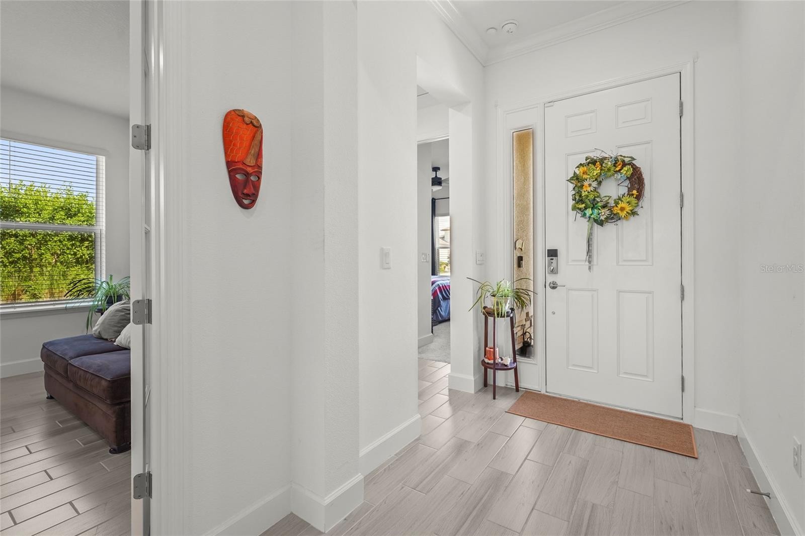 Discover this exquisite 2024 Taylor Morrison Antigua model masterpiece, where contemporary elegance meets thoughtful design in the prestigious Palmero Community. This stunning four-bedroom, three-bathroom home spans approximately 2,411 square feet of meticulously crafted living space, showcasing the builder's renowned attention to detail and superior construction quality. Step inside to find sophisticated wood-grained tile flooring flowing seamlessly throughout the main living areas, creating an effortless transition between the open-concept kitchen, dining, and family spaces. The gourmet kitchen commands attention with premium stainless steel appliances, rich granite countertops, and custom cabinetry complemented by sleek hardware. A generous center island provides additional workspace and casual dining, while pendant lighting creates ambient warmth throughout the culinary haven. Sumptuous carpeting graces each bedroom sanctuary, where crown molding adds architectural distinction and carefully selected lighting fixtures illuminate these private retreats. The primary owner's suite serves as a luxurious haven, offering serene backyard vistas and an indulgent en-suite bathroom featuring an oversized soaking tub, expansive glass-enclosed shower with rainfall fixtures, dual vanities with elegant mirrors, and a generous walk-in closet with built-in organization systems. Three additional bedrooms showcase thoughtful design elements including recessed lighting and ample natural light, while two full guest bathrooms feature contemporary finishes and designer fixtures. The thoughtfully designed flex room awaits your personal touch – transform it into a distinguished home office with built-in shelving, cozy den with architectural details, or intimate library where literary adventures unfold. However, the true jewel lies outdoors beneath the covered lanai, where breathtaking pond views and professionally curated landscaping create an atmosphere of tranquil sophistication. The Palmero community elevates lifestyle with exceptional amenities including a heated pool, basketball court, dedicated dog park, volleyball court, and playground facilities. This exceptional residence represents the pinnacle of modern Florida living.