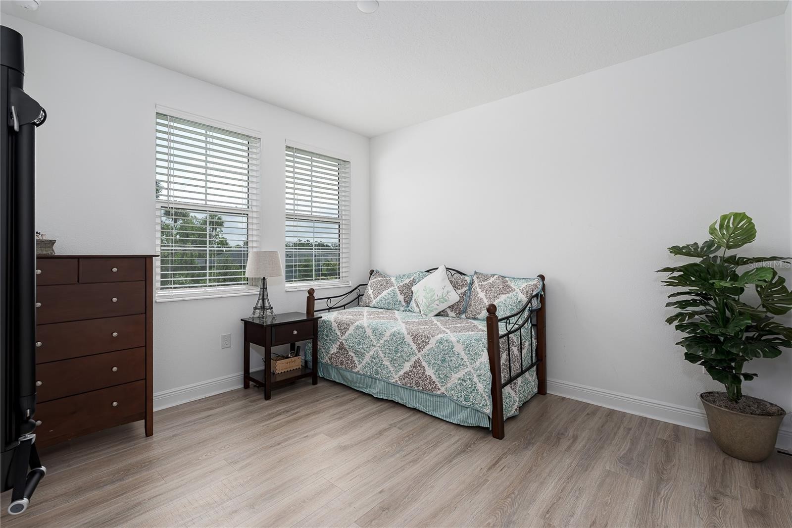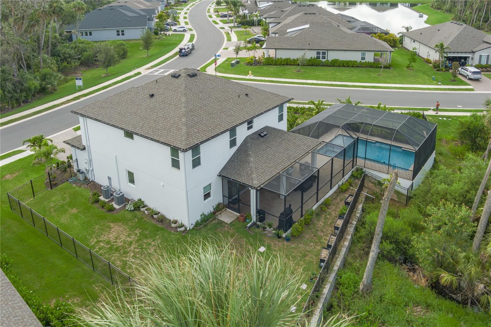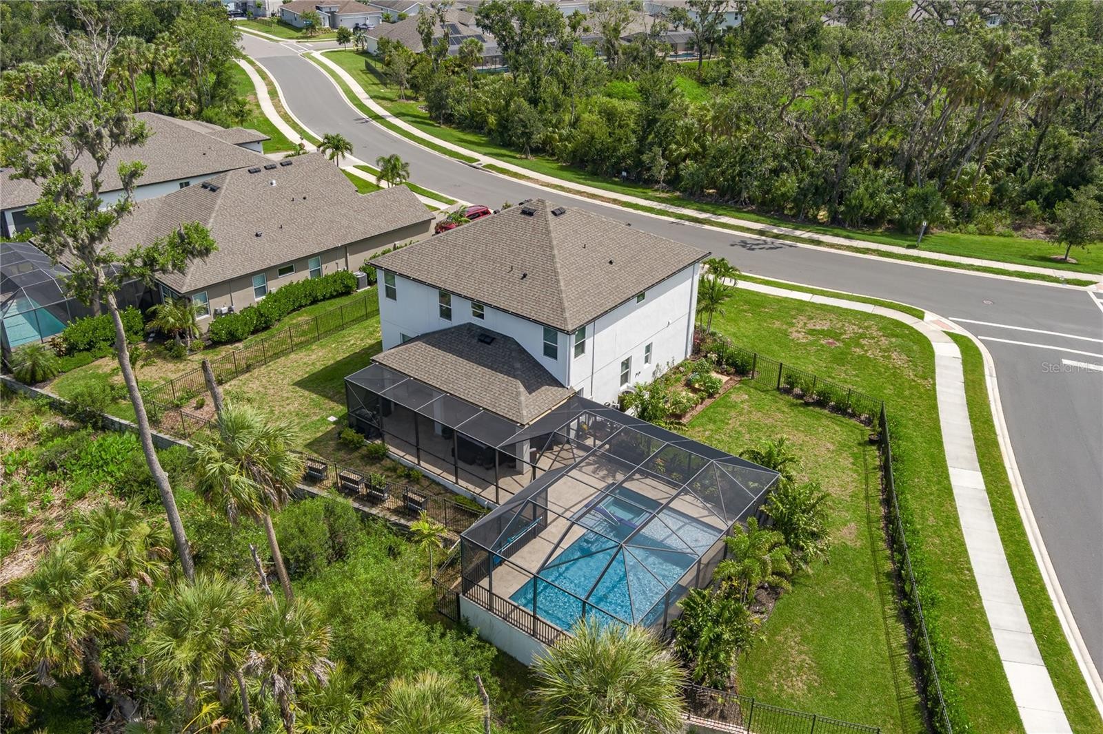 Welcome to one of Trevesta’s most desirable homes—situated on over ¼ acre, this unique fenced-in property is not only one of the largest lots in the community, but also backs up to a private preserve for the ultimate in peace and privacy. This stunning home features abundant upgrades throughout, including luxury vinyl plank flooring, upgraded lighting, and hurricane-impact sliding glass doors that open to your own private backyard oasis. The extended screened lanai showcases Travertine tile decking, and a brand new heated saltwater pool and spa—perfect for entertaining or relaxing year-round with no rear neighbors in sight. Step inside and you’re greeted by a flexible home office/library, perfect for remote work or a cozy reading nook. The open-concept first floor features a bright and airy great room, spacious dining area, and a chef’s kitchen tucked off to the side—boasting a walk-in pantry, quartz countertops, generous cabinetry, and an island with bar seating. Upstairs, all four bedrooms offer ample space and functionality. The primary suite features dual sinks, a walk-in shower with a bench, a large linen closet, and a truly oversized walk-in closet. The second and third bedrooms each offer full-size walk-in closets, while the guest bathroom includes dual sinks and quartz countertops. A spacious laundry room and several extra storage closets round out the upper level. Located in the gated community of Trevesta in North Palmetto, you’ll love the easy access to nearby schools, shopping, and dining. Perfectly positioned between St. Pete, Tampa, and Sarasota, and just 20 miles to Anna Maria Island and 45 miles to Tampa International Airport, this home offers the perfect mix of convenience and luxury living. Don’t miss this opportunity to own a standout property with one of the largest lots and most desirable floorplans in the neighborhood! * Buyers please be advised that the CDD is already incorporated into the current tax bill.
