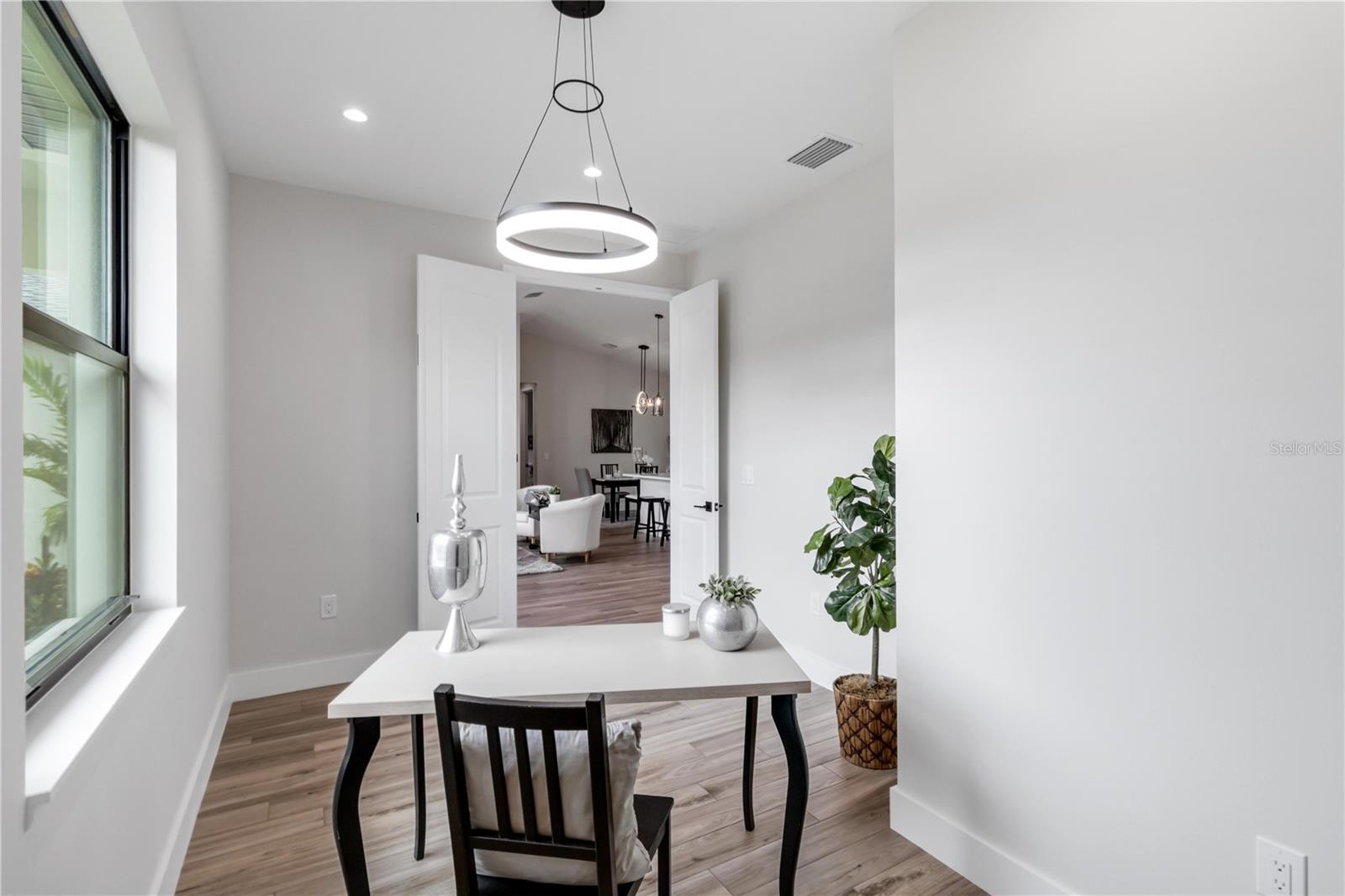 This stunning new construction home, built in 2025 and move-in ready, is waiting for you. From the moment you enter, you’ll fall in love with this beautifully designed custom residence featuring 3 bedrooms plus a den/office and 2 full bathrooms. Every detail was thoughtfully crafted, offering a bright open floor plan that’s ideal for entertaining family and friends. The expansive den is versatile and can easily serve as a 4th bedroom, creating the perfect setting for your family’s needs. Porcelain tile flows seamlessly throughout the home, adding elegance and ease of maintenance. The gourmet chef’s kitchen is a dream come true, complete with an oversized quartz island and countertops, premium stainless steel appliances, 42” solid wood shaker cabinetry, marble backsplash, and a spacious walk-in pantry. The large master suite is a private retreat with abundant natural light and a sliding door leading to the lanai. The breathtaking en-suite bathroom offers a designer’s touch with a soaking tub, large-format tile shower, dual quartz vanities with LED mirrors, and a tiled backsplash. This energy-efficient home is built with heavy-duty hurricane impact windows, sliders, and doors, along with upgraded LED recessed lighting, modern designer fixtures, and ceiling fans throughout. Euro-style pavers highlight the driveway and lanai, while the irrigation system covers both front and back lawns. The garage features durable epoxy flooring for a clean, polished look. Built by Chern Construction, the home comes with the peace of mind of a 1-year builder warranty. Ideally located in the growing city of North Port, it’s close to shopping, dining, and only a short drive to Florida’s pristine sandy beaches. With no HOA, no CDD fees, and no flood zone concerns, this home offers the perfect opportunity to fulfill your dream of ownership.