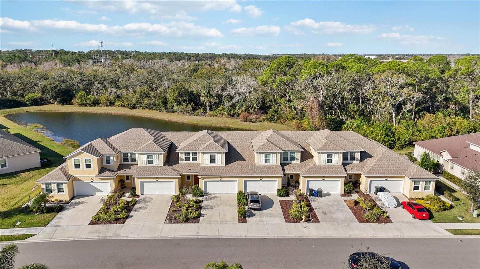 Welcome to this charming and highly sought-after Sandbar 2 townhome by Mattamy Homes, located in the desirable community of Harmony at Lakewood Ranch. This thoughtfully designed residence offers 3 bedrooms plus a loft, 2.5 baths, and an additional 12' x 10' storage room, providing a potential for a 4th bedroom, home office, game room, or flex space. Upon entry, soaring vaulted ceilings reaching up to 15 feet immediately enhance the open-concept layout, creating a bright and airy living environment. The home features carefully selected finishes throughout, including quartz countertops, laminate flooring, 8-foot interior doors, and 7" x 22" wood-look tile on the main level. The kitchen blends sophistication and functionality with quartz countertops, tile backsplash, 42" staggered cabinetry, stainless steel appliances, and a striking custom board and batten accent wall. The spacious primary suite offers luxury vinyl flooring, an expansive walk-in closet, and an elegantly finished primary bath featuring dual-sink quartz vanity and a tiled shower. Upstairs, you’ll find two secondary bedrooms, a full bath, a versatile loft, and the additional 12' x 10' bonus/storage room, ideal for work-from-home needs or additional entertainment space. A 2-car garage completes the home. Residents of Harmony enjoy resort-style amenities, including a heated pool, outdoor grilling area, fitness center, playground, and pet-friendly walking trails woven throughout the community, making it ideal for active lifestyles and pet owners alike. Conveniently located near The Green at Lakewood Ranch, you’ll have easy access to popular dining, bakeries, coffee shops, shopping, fitness centers, spa, medical offices. Schedule your private showing today and experience the best of Lakewood Ranch living.