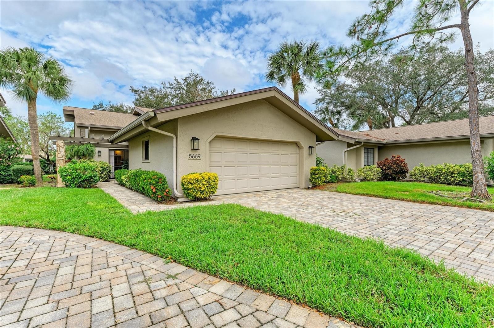 Move-In Ready in Las Palmas! This stylish 3BR/3BA townhome-style condo with attached garage offers a new roof (2024), brand new carpet on the stairs, a new garbage disposal, and newer kitchen appliances. The open living/dining area flows to a screened balcony with tranquil pool and pond views, while the kitchen features granite counters, wood cabinetry, breakfast bar, and pantry. Upstairs, two spacious suites each have private baths and walk-in closets, plus laundry right where you need it. Enjoy resort-style amenities—two heated pools, spa, fitness center with sauna, tennis, clubhouse, dog park, playground, and RV/boat storage. Just steps to Benderson Park, two miles to UTC shopping/dining, and minutes to I-75 and award-winning beaches. Perfect for full-time living, a seasonal escape, or investment.
