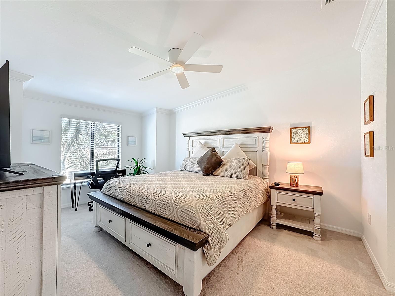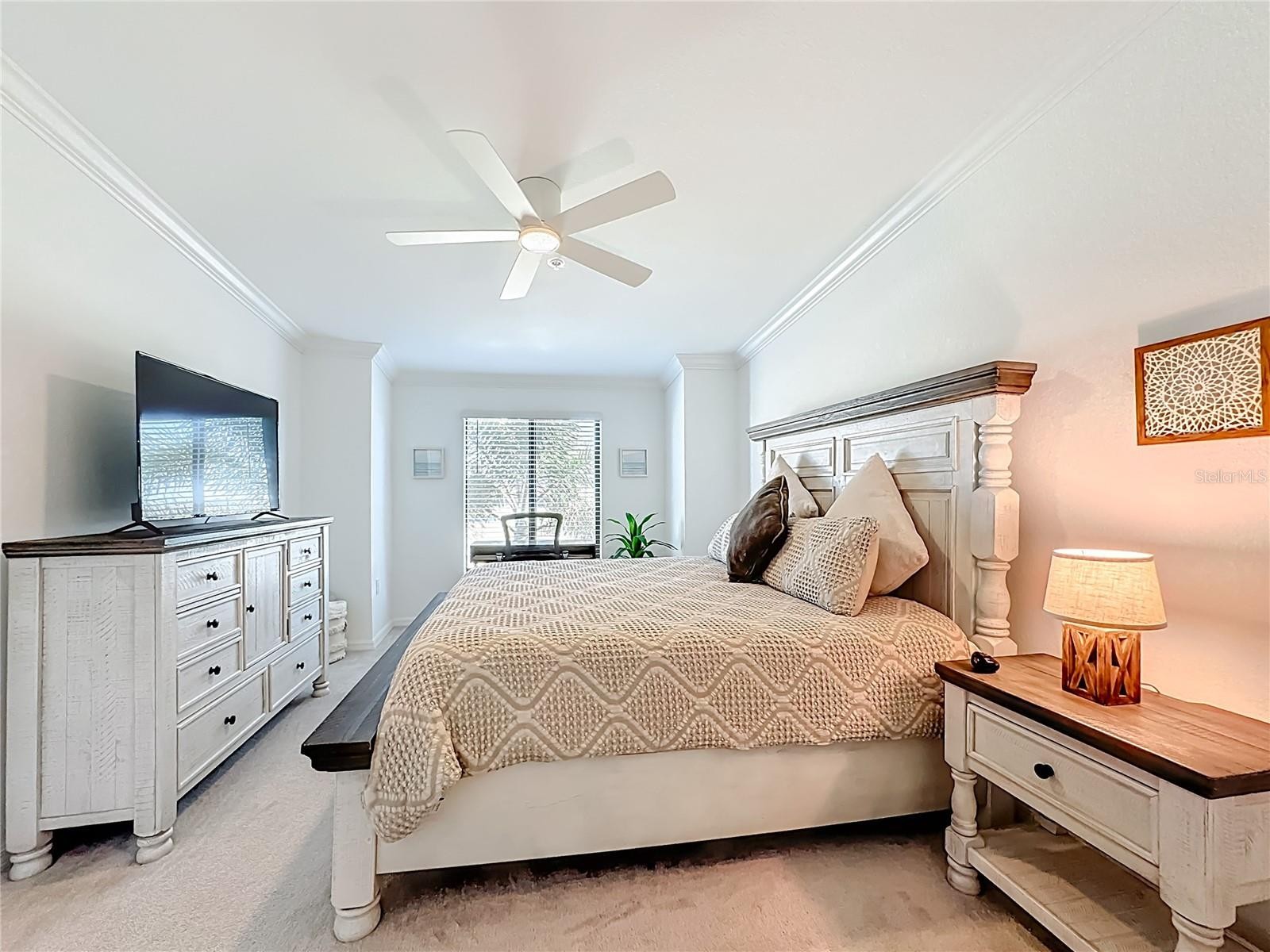 Beautifully decorated and meticulously maintained, this fully TURNKEY FURNISHED, golf-included top-floor veranda residence is move-in ready and ideal for primary residence, part time snow bird or seasonal or long-term rental as an income property. Overlooking the 18th hole of the Piper Course, the home offers peaceful golf course and water views from the desirable Bromelia II floor plan, featuring two bedrooms, two bathrooms, a den, which is currently being used a a 3rd bedroom, and a private garage. The open-concept layout is enhanced by vaulted ceilings, crown molding, porcelain tile flooring, updated lighting and ceiling fans, two screened lanais, and in-unit laundry, providing comfort and functionality throughout. The modern kitchen opens to the living area and is equipped with quartz countertops, solid wood cabinetry, stainless steel appliances, a breakfast bar, and a central island, making it perfect for both everyday living and entertaining. The den offers flexible bonus space and is currently configured as a bedroom, making it ideal for guests, a home office, or extended stays. Located within the gated Lakewood National Golf & Country Club, renters enjoy access to world-class amenities, including two 18-hole Arnold Palmer championship golf courses, a grand clubhouse, fine dining, a resort-style pool complex with poolside café and Tiki Bar, heated satellite pools, tennis and pickleball courts, bocce courts, a state-of-the-art fitness center with 24-hour access, a full-service spa, and 24-hour security. Conveniently situated in Lakewood Ranch, the nation’s top-selling master-planned community, residents are just minutes from shopping, dining, parks, biking trails, and a short drive to the area’s renowned beaches, cultural attractions, and entertainment. This residence offers an exceptional opportunity to enjoy a secure, low-maintenance, resort-style lifestyle in one of Southwest Florida’s most sought-after communities.