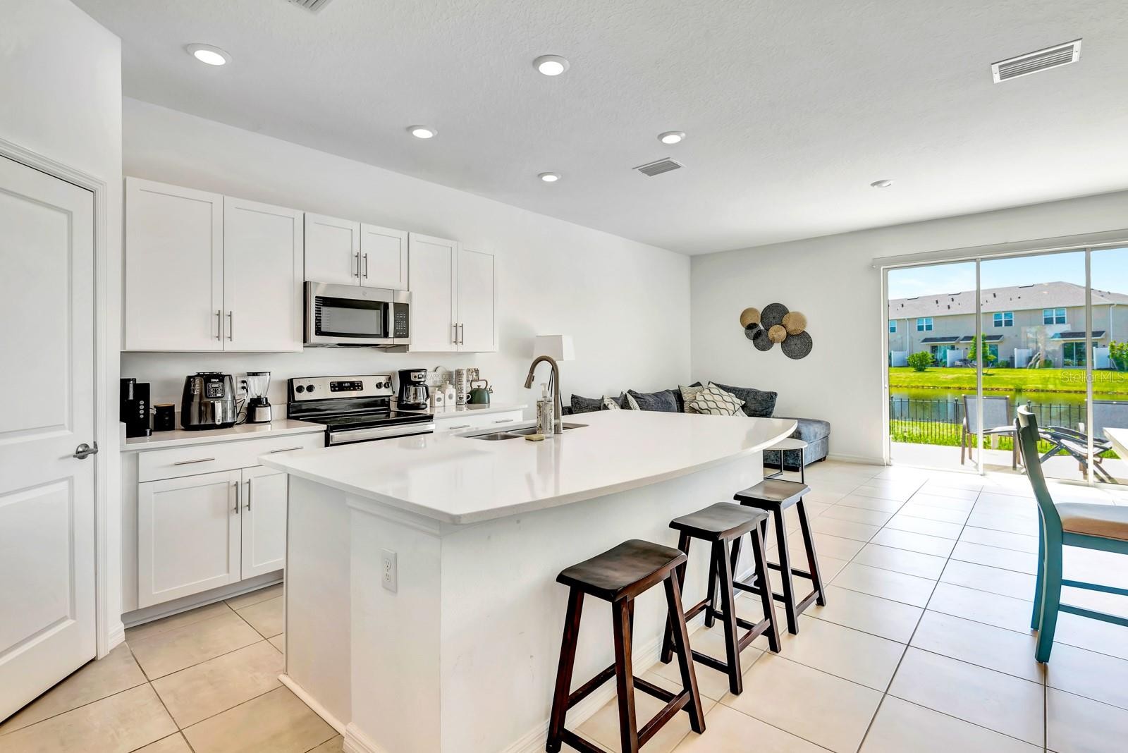 Why Wait For New Construction when you have this 2 year new Move In Ready Beauty? This Marigold model is a roomy END UNIT townhome thoughtfully designed with 3 bedrooms, 2.5 bathrooms and garage located in the a highly desirable gated community of Palmero. Inside, you are met with a spacious great room and an open-concept designer kitchen appointed with stainless GE Appliance package. The home chef will love the large island ideal for cooking and entertaining without missing a beat of the action. You will love being drenched with the natural light that pours through the rear patio sliders which give this townhome a nice airy feel. Enjoy tranquil water views with your morning coffee or afternoon cocktail and take in all that nature has to offer. Also located on the main level is a half bath for comfort and convenience. Upstairs are two bedrooms sharing a full bath and a large primary suite with oversized walk-in closet and double vanities. Enjoy multiple storage areas including a large walk-in kitchen pantry, separate laundry room, linen closet, and even a space under the stairs. Loation, location, location!! Close to award winning beaches, dining, shopping, parks, schools and major roads to make your commute a breeze! Schedule your private showing today and say yes to this address! Home also listed for lease $2600.