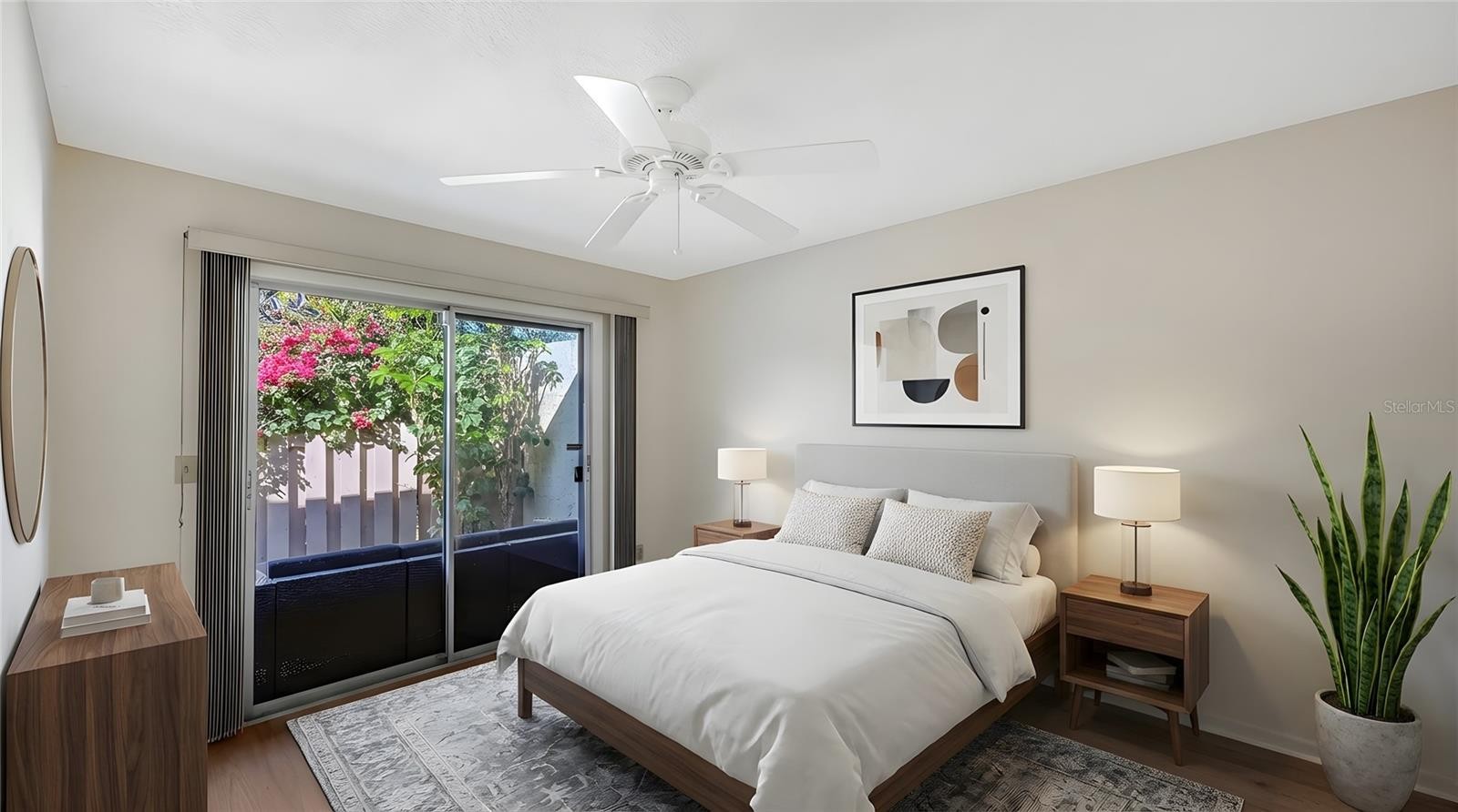 One or more photo(s) has been virtually staged. Looking for an AFFORDABLE "Lakefront Villa" in a great South Sarasota location? Look no further! This villa is approximately 10 minutes to World Famous Siesta Key Beaches! Nearly 1,200 sq ft with generous room sizes, a closed in lanai with sliders overlooking the huge backyard and lake and a 1 car garage. Many updates by Seller, including: Luxury Vinyl Flooring 2026*Shingle Roof 2023*Air Conditioner 2017*Garage Door 2017 & more! The primary bedroom has a vaulted ceiling, a walk-in-closet, sliding glass doors & a private bathroom. This charming villa is light & bright throughout and the kitchen offers great storage, lots of counter space & a breakfast nook. There is a laundry closet with a washer & dryer that is included. The living/dining room is spacious and has a vaulted ceiling. The monthly HOA fee includes: basic cable*community pool*exterior maintenance*lawn service, trimming of bushes & fertilization*roof replacement & repairs*exterior home insurance*community lake & a recreation facility that you are steps away from! This is a RARE & DESIRABLE FIND that is move-in ready and available for a quick closing. Make it yours today but don't wait. This is a well maintained community that is managed and is perfectly located to shopping, restaurants, fitness centers, Siesta Key beaches, Gulf Gate Library, Gulf Gate Shops & the Legacy Trail for those who like to bike/run/walk! H-U-R-R-Y!