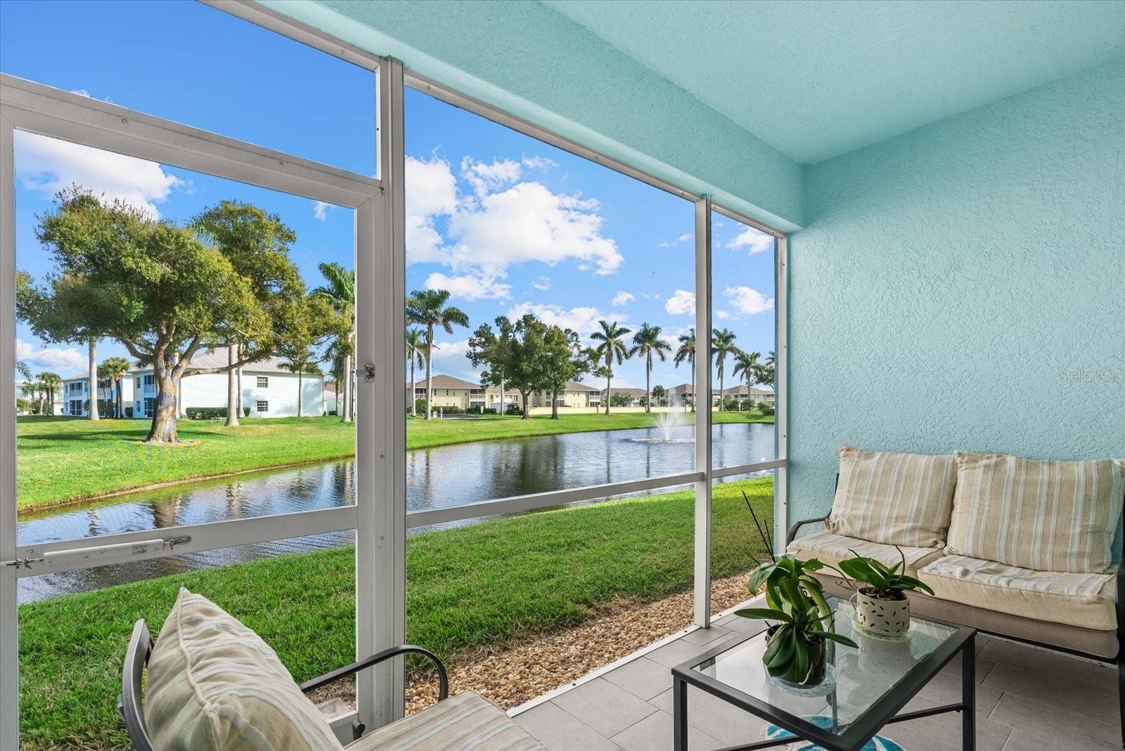 The first floor condo that is totally updated beautifully is now available for you in the desirable community of The Colony at Sabal Trace. As you enter the condo the neutral color scheme lends to the bright and airy feel of the unit. The ceramic tile flooring is throughout the condo even into the closets. The living room with trey ceilings and double sliding door to the lanai where the tile flooring continues. The dining area has an accent light fixture. The kitchen has been highly upgraded with all new wooden cabinetry and hardware, extended to the ceiling for extra storage. the kitchen has full quartz countertops. The cabinets have been extended to provide a built-in coffee, appliance quartz countertop area with glass front cabinets above. All of this is complimented by full length tile back splash and LED under cabinet lighting with switch and dimmer located in the cabinet out of sight. The kitchen has newer stainless steel appliances, Moen garbage disposal and Moen faucet. The kitchen has a double door pantry and breakfast bar. All of these upgrades waiting for the chef in the family. The primary bedroom has a walk-in closet and a single closet as well as an in-suite bath. The primary bath has been upgraded with new wooden vanity with double sink quartz countertop. The two sinks have Moen faucets with special warranties. The walk-in shower with glass door has an adjustable spray shower head. The split floor plan offers a second bedroom and bath for guests. The guest bath has new wooden cabinet with a single sink quartz countertop and Moen faucet, a tub/shower combination with an adjustable spray shower head. The condo has versatile bonus room that can be used as a den, office, extra sleeping area or a hobby area. The unit has an inside laundry closet with a newer washer/dryer and a newer Rheem hot water heater. The living room opens onto the screened lanai that has amazing east facing water views with beautiful sunrises that add a peaceful feeling to the lanai and living room with your morning coffee. Or relaxing in the afternoon with wine and cheese. The condo has a single car garage with extra wall cabinet storage and two sets of Malone kayak storage hooks and a new motor in the garage door opener. The community has a clubhouse with exercise room, meeting/social area, kitchenette, ping pong and pool tables. Most importantly, the clubhouse has a heated swimming pool with spacious sun decking for enjoying the Florida life style. All of this is close to shopping, restaurants, golf courses, local beaches, world class fishing, baseball Spring training facilities, and other area attractions.