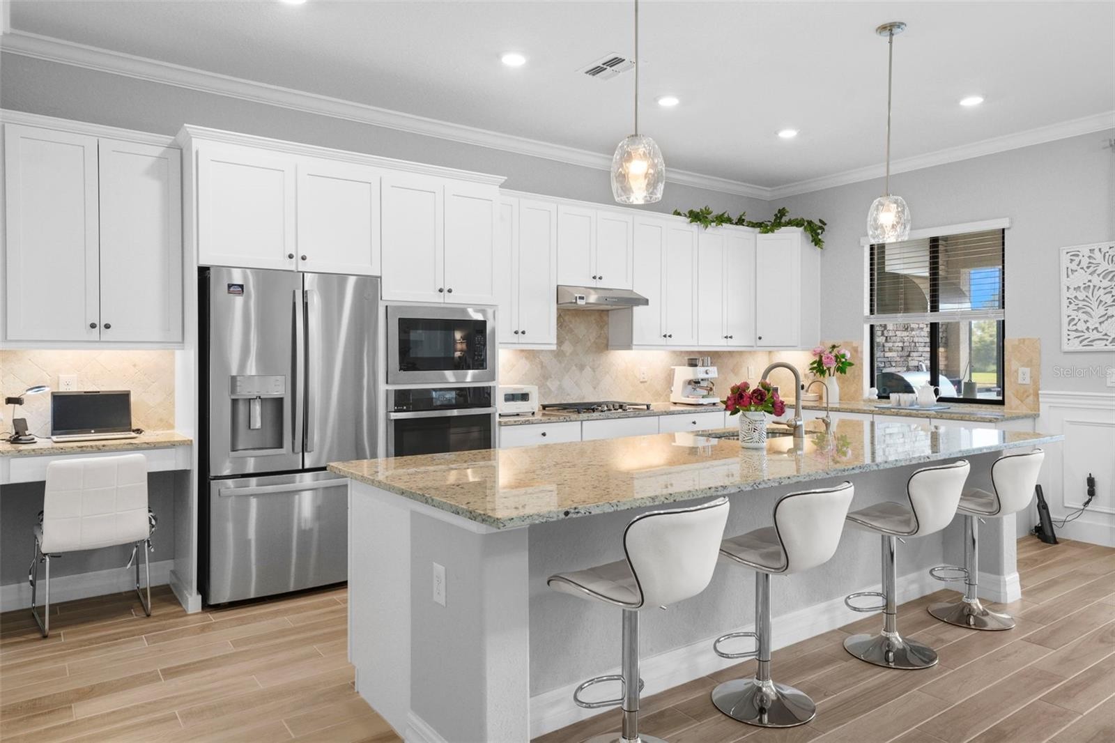 RESORT-STYLE LIVING IN LAKEWOOD NATIONAL! Welcome to your dream home in the highly sought-after Lakewood National Golf & Country Club—a premier gated community offering world-class amenities including golf, tennis, pickleball, bocce ball, fitness center, resort-style pools, tiki bar, clubhouse dining, and so much more. This stunning residence showcases upgrades that go far beyond what the builder offered—elegant tray ceilings, designer finishes, and thoughtful touches throughout. The heart of the home is a gourmet kitchen with high-end GE appliances, perfect for everyday living or entertaining in style. Step outside to your outdoor kitchen featuring a gas grill stove, a powerful vent hood, and a beverage fridge—a true entertainer’s paradise. Enjoy peaceful water views from the expansive extended lanai, beautifully enhanced with a picture screen cage that maximizes the scenery. Relax in your private above-ground hot tub, and take comfort in the home’s whole-house water filtration system that provides the highest quality living. While this home doesn’t include a pool, the oversized lanai and resort-style community amenities offer endless opportunities for fun, fitness, and relaxation. With its unmatched location, incredible amenities, and countless custom upgrades, this Lakewood National gem is more than a home—it’s a lifestyle.