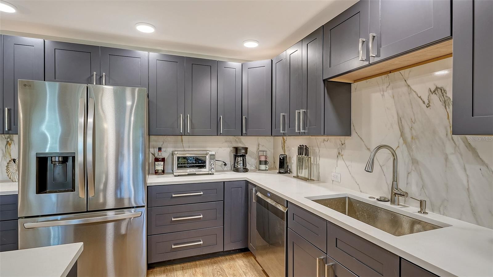 Beautiful completely remodeled 2-bedroom, 2-bathroom Tropical Oasis on Longboat Key. Relax and enjoy the Florida lifestyle at its best with stunning gulf views from this gorgeous second floor retreat. Just steps to the beautiful white sand and warm gulf waters. Upgrades include new open floor plan with spacious rooms decorated in a soothing coastal color palette. Heightened ceilings, hardwood engineered flooring, upgraded lighting and fresh paint. Enjoy cooking meals and entertaining friends and family at the large kitchen island with quartz countertops and backsplash, new solid wood, soft close cabinets and all new stainless -steel appliances. Spectacular morning views and amazing colorful sunset views await as you step into this lovely well stocked, turnkey furnished condo. Master bedroom boasts a king size bed and 40" TV with walk-in closets, en-suite master bathroom with double sinks, walk -in shower and access to the patio for heavenly gulf breezes and views. Second bedroom features a queen size bed and TV; the third flex room offers a queen bed for additional sleeping quarters for guests. Washer/dryer are located inside the unit in the laundry closet. Enjoy hours of entertainment watching wildlife including dolphins, manatees, turtles, birds and boaters from this perfect spot. Outdoor amenities include beachside private heated pool and hot tub. This lovely community showcases mature trees and well-maintained tropical lush landscaping. Other amenities include a gym, sauna, craft room, large social room with catering kitchen, bicycle and Kayak storage. This property is available from December - April.