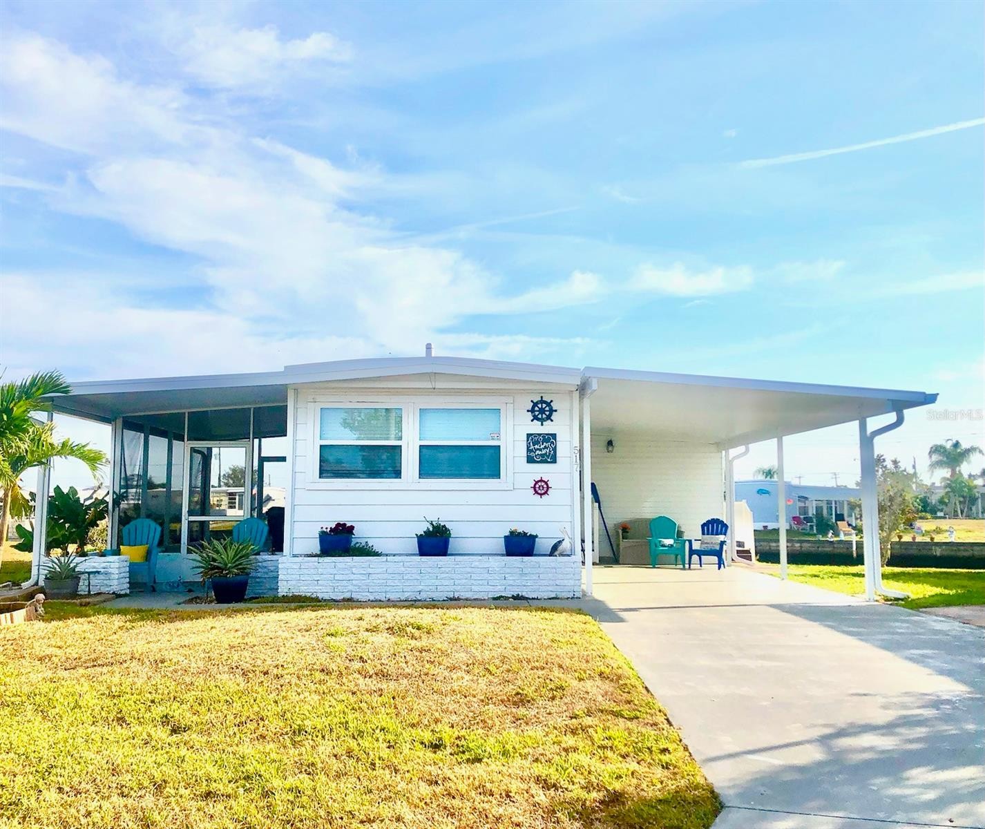 Welcome to your dream home in North Port's Holiday Park! Sold AS-IS and TURNKEY, just bring your bags! This charming 2-bedroom, 2-bathroom mobile home offers the perfect blend of comfort and convenience. As you step inside, you'll be greeted by a spacious interior bathed in natural light. The open layout seamlessly connects the living room, dining area, and kitchen, creating an ideal space for entertaining guests or simply relaxing with loved ones. The heart of the home, the kitchen, boasts beautiful white cabinets and ample counter space, making meal preparation a breeze. Whether you're whipping up a quick breakfast or hosting a dinner party, this kitchen is sure to impress. Retreat to the large primary bedroom, complete with a walk-in closet for all your storage needs. The attached ensuite bathroom offers privacy and convenience. Step outside onto the screened-in lanai and enjoy the serene Florida weather year-round. The expansive back patio provides the perfect setting for BBQs and outdoor gatherings. Parking is a breeze with a large covered carport and an extended driveway wide enough for two cars. Plus, the storage shed includes a washer and dryer, adding to the home's convenience. Other features include a new roof (January 2023) for peace of mind, a new lanai screen enclosure (September 2023), new carport (January 2023), and blinds every window for added privacy. Holiday Park is a great community with many activities to choose from weather you are love playing shuffleboard, swimming at the community pool, or just taking a drive in your golf cart! You are close to shopping, dining, entertainment, numerous golf courses, airports, sports facilities, and SW Florida's best beaches. Don't miss your chance to make this delightful North Port residence your own. Schedule a showing today and start envisioning the possibilities!