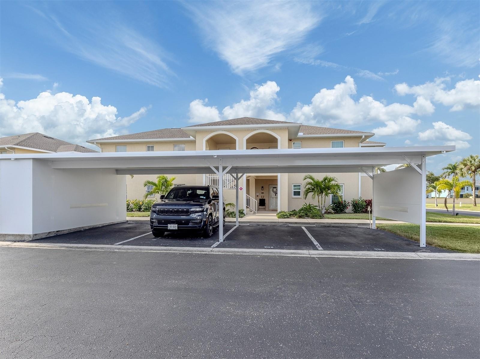 Rarely Available Turn-Key Furnished 3-Bedroom Condo in Gated Linkside at Sabal Trace, an exclusive gated community within Sabal Trace. This 3-bedroom, 2-bath condo offers a bright, open layout that invites easy living and relaxed Florida charm. The large eat-in kitchen provides plenty of space for everyday meals, while the formal living and dining room combination creates an ideal setting for hosting family and friends. An enclosed back lanai offers a peaceful place to unwind, complete with power hurricane shutters for added security and comfort. The spacious primary suite features an ensuite bath with dual sinks, a walk-in shower, and two closets—including a generous walk-in. The guest bedroom comfortably accommodates twin or king-sized beds, and the third bedroom is currently arranged as an office or den. A separate laundry room with a full-size washer and dryer provides additional storage, complemented by multiple indoor and outdoor storage closets perfect for beach gear, bikes, and more. Additional conveniences include an assigned carport parking space directly in front of the unit, with extra parking available for guests. Residents also enjoy access to the community pool and cabana, offering an ideal spot to relax and soak up the Florida sunshine. This prime location places you close to restaurants, shopping, medical facilities, a fire station, the Atlanta Braves Spring Training facility, parks, Warm Mineral Springs, golf courses, and stunning Gulf beaches. Ideal for seasonal or year-round living.