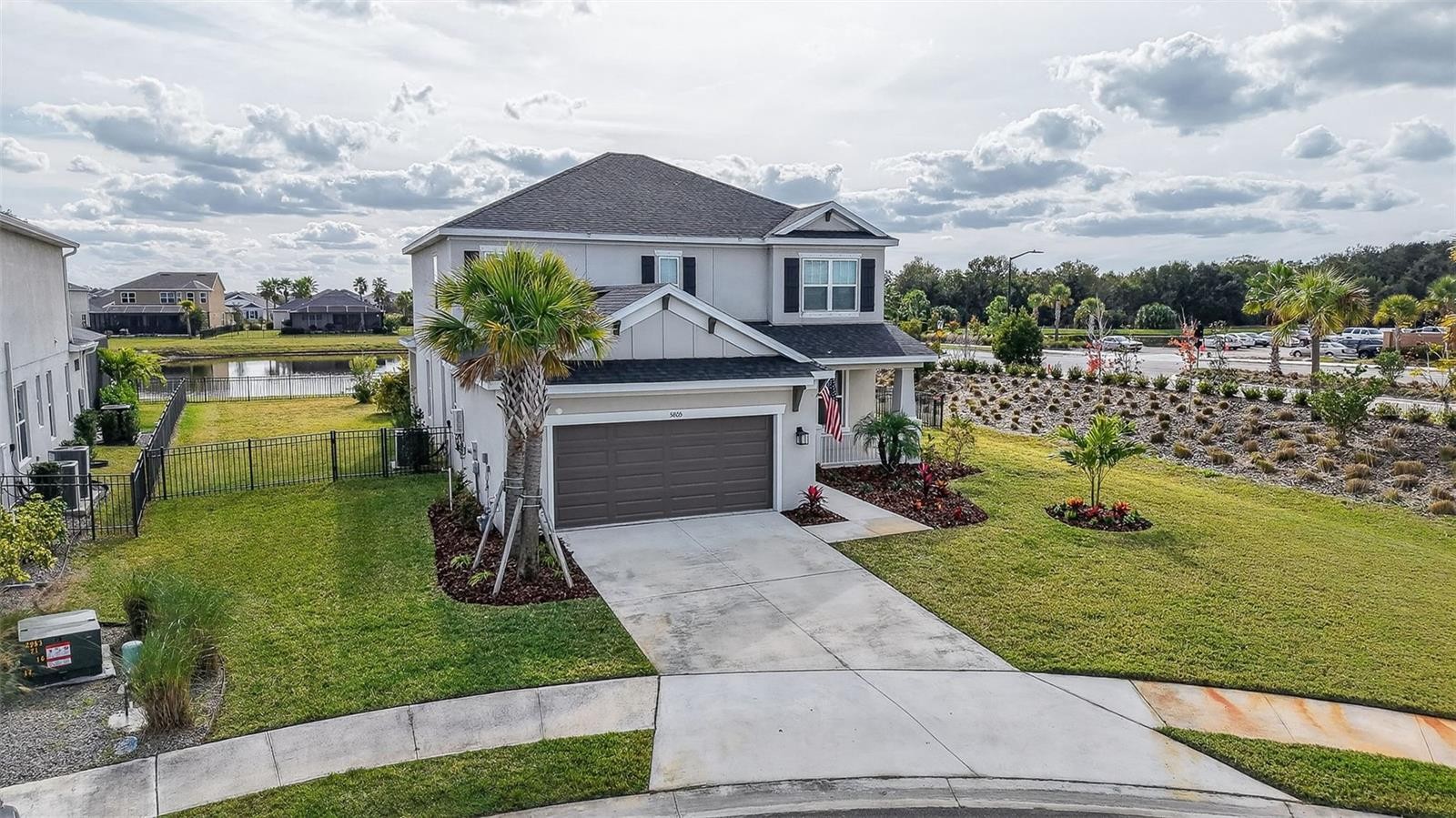 Welcome to this exceptional 4-bedroom, 3.5-bath home offering 2,636 sq ft of beautifully designed living space, built in 2022 and perfectly positioned on a quiet cul-de-sac in the highly desirable Artisan Lakes – Eaves Bend community. This home blends modern elegance with everyday comfort, featuring a first-floor primary suite and a stunning open living area with soaring ceilings that create a bright, spacious feel from the moment you enter. The gourmet kitchen is the heart of the home, showcasing upgraded cabinetry and countertops, a 30" built-in cooktop, combination microwave and thermal wall oven, and a vented designer hood- ideal for both entertaining and daily living. A sun-filled breakfast nook and a separate formal dining room provide flexible spaces for casual meals or hosting special gatherings. The spacious owner’s suite offers a spa-like bath with upgraded countertops, while thoughtful upgrades throughout the home include a dog wash station, pre-plumb for a water softener, garage attic stairs for extra storage, recessed lighting, ceiling fans, hurricane shutters, and an irrigation system. Step outside to enjoy serene pond views from the large fenced backyard with no rear or side neighbors, along with inviting outdoor spaces that include a charming front porch and a back patio perfect for relaxing or entertaining. Eaves Bend at Artisan Lakes offers an amenity-rich lifestyle with low community fees and a prime location close to shopping, dining, entertainment, and major commuter routes. Residents enjoy a heated resort-style pool and spa, a recently renovated 24-hour fitness center, clubhouse with a fully equipped kitchen, playgrounds, dog park, walking trails, and sports courts. This is a rare opportunity to own a move-in-ready home in a sought-after community -- schedule your private showing and fall in love today!