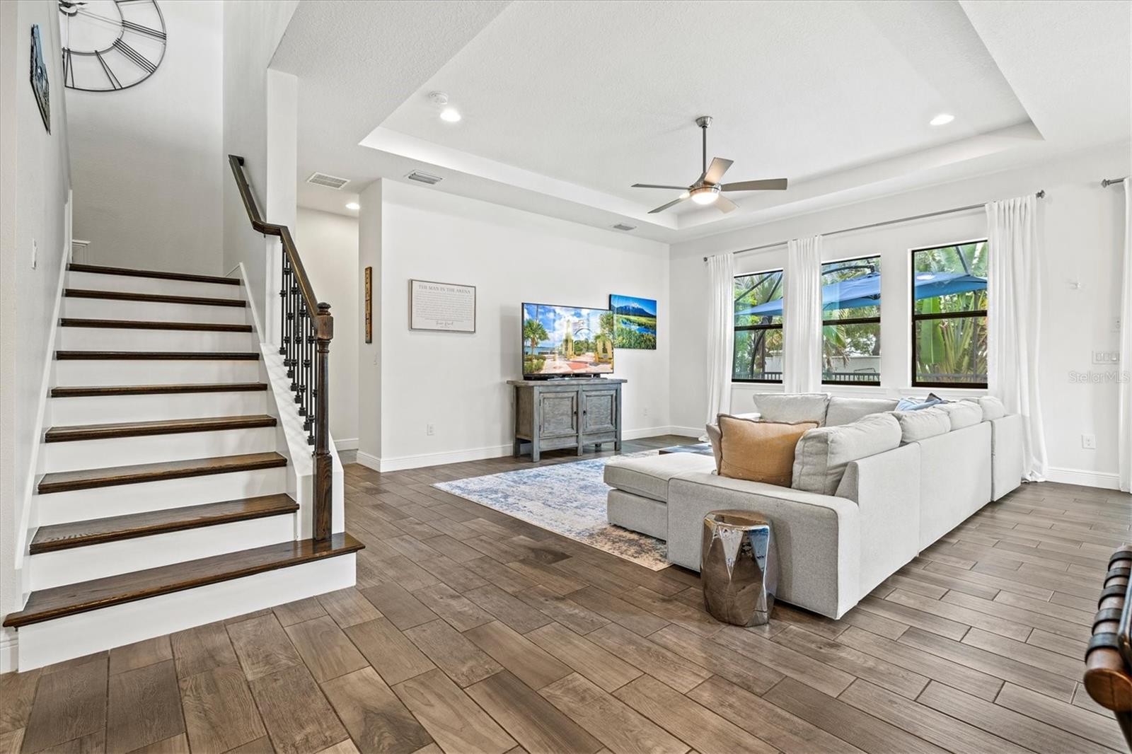 This seller is MOTIVATED! This incredible price invites you to make this home your own! Let’s make a deal! Introducing this breathtaking 4-bedroom, 3-bathroom pool home, nestled within the welcoming, most sought after gated community of Legends Bay, just moments from world-renowned IMG Academy and a short drive to St. Stephen's Episcopal School, Inspiration Academy and many other Bradenton educational options. This home is set amid lavish tropical landscaping... it is the epitome of Florida luxury design. This home is ideally located 10-20 minutes from the powdery sandy Gulf Beaches of Cortez, Coquina and Anna Maria Island, perfect places for relaxing and for your recreational activities including kayaking, paddle boarding, boating and more. This home is Florida luxury at its finest in an ideal location in Paradise. Pride of home ownership shines throughout this home with newer paint, inside and out along with recently epoxied garage flooring. Inside, you will find hard flooring throughout. Wood-look tile floors, high coffered ceilings, newer appliances, including washer and dryer, oven, refrigerator and microwave, giving you peace of mind. Additionally, newer upgraded interior lights with lifetime LEDs, California closets, a Gladiator organizing rack in the garage and a water treatment system are extra gifts that this home offers. The open-concept great room flows into a chef’s kitchen with beautiful lighting from Restoration Hardware, a sprawling island, white shaker cabinets, stone countertops, glass tile backsplash, and stainless-steel appliances including a gas cooktop, providing the perfect space for family and friends to enjoy while studying, enjoying quiet time or entertaining. A butler’s pantry and very large walk-in pantry add extra convenience. The main floor includes a guest bedroom, full bath, and a front office/flex-room space. Upstairs, you'll find two more spacious guest bedrooms, a large bonus room, laundry room, and a primary suite with an extra sitting area, dual walk-in closets and a spa-like master bathroom featuring a soaking tub and walk-in shower. In addition to the amazing interior, step through the sliders to your private screened oasis with a heated saltwater pool, sun shelf, paver patio and yard with room to play. This home offers an abundance of space and storage, giving you the perfect place for you to invite all of your friends and to enjoy easy living. Residents of Legends Bay enjoy resort-style amenities including a clubhouse, pool, and fishing pier overlooking Sarasota Bay. With easy access to IMG, golf, tennis, pickleball, shopping, dining, and the beaches of Anna Maria Island, this home offers luxury, comfort, and an unbeatable location. Another draw to this location is the close proximity to Tamiami Trail and to Sarasota. This home and location offers an extremely appealing lifestyle, not only a house! Come see, come sigh and make this home your own.
