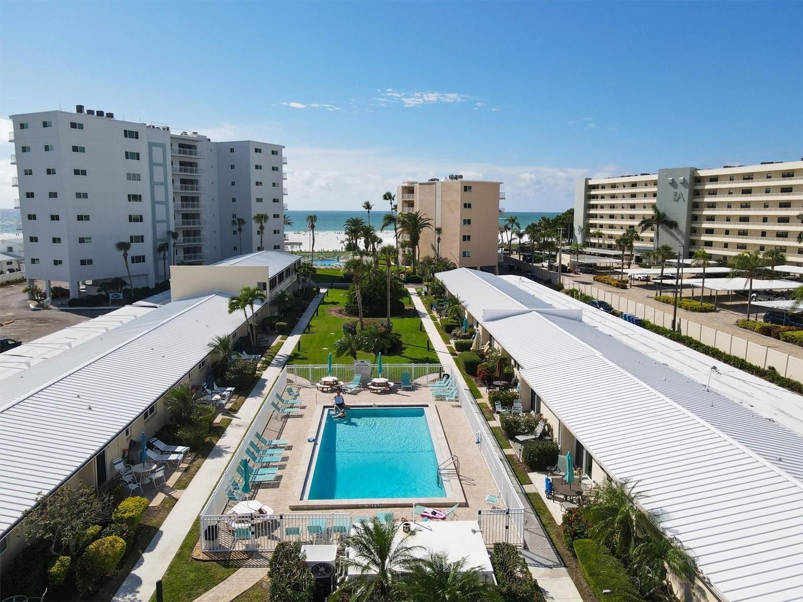 Welcome to your slice of paradise at Jamaica Royale on world famous Siesta Key Beach. This completely remodeled 2 bedroom, 2 bath condo offers the perfect blend of coastal elegance and income producing potential. The stunning kitchen features quartz countertops, custom wood cabinetry, stainless steel appliances, dining space, and a laundry closet with stackable washer and dryer, ideal for entertaining after a day on the sand. Both bathrooms have been beautifully updated with designer finishes, including marble like tile shower and sleek quartz-top vanities, creating a spa like retreat. The thoughtfully designed floor plan is comfortable, stylish, and Turn-key move-in ready. Located in a highly desirable beachfront community with one week minimum rentals, this condo is an excellent investment or vacation getaway. Enjoy a heated pool and approximately 300 ft of private beach frontage, just steps from the Gulf’s crystal clear waters and powder soft sand. Ideally situated near Siesta Key Village, you’re moments from renowned dining, boutique shopping, and vibrant night life. Whether you are seeking a personal retreat, rental income, or both, this is coastal living at it’s best!