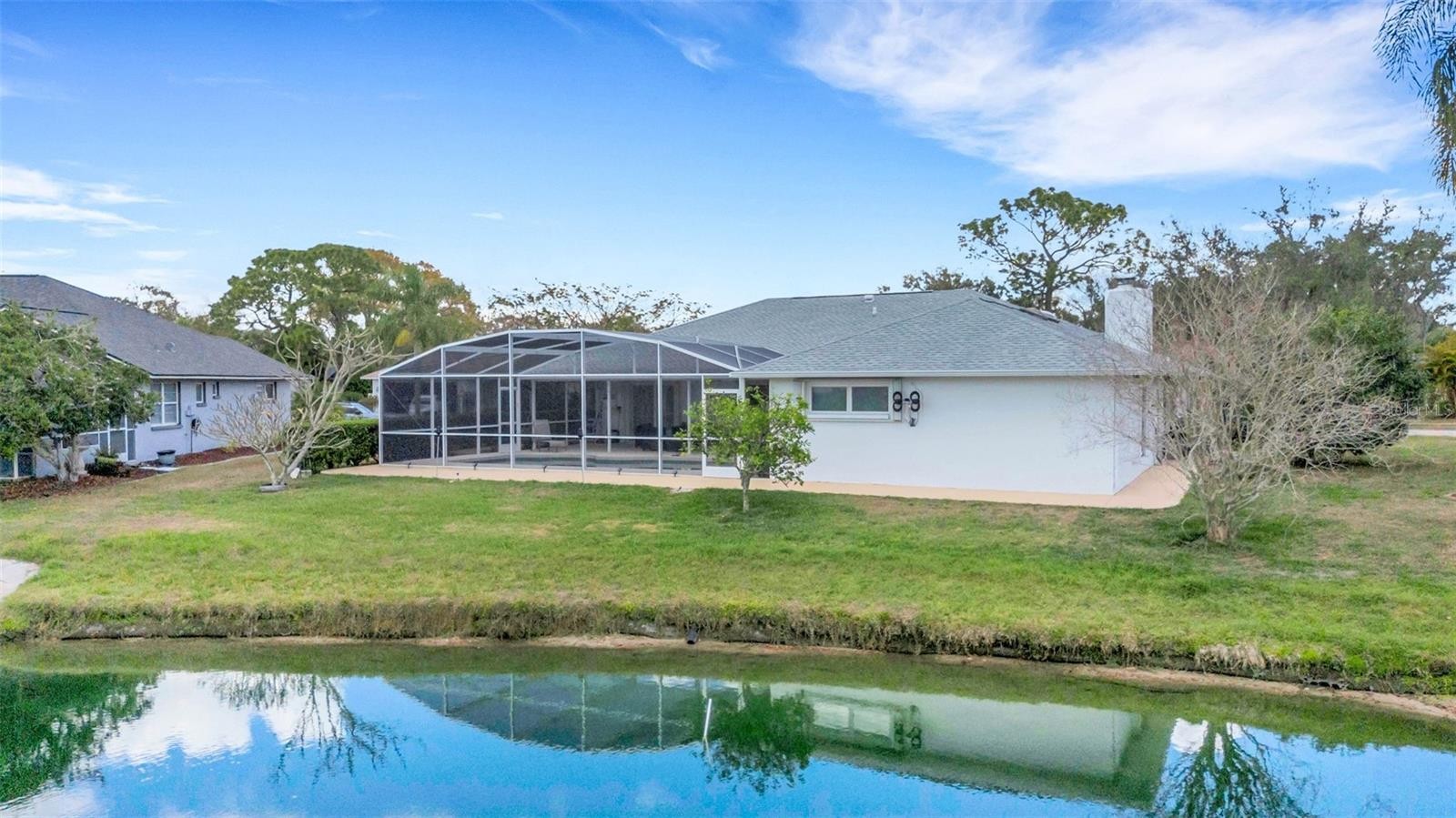 LET THE SUN SHINE IN! Come explore this waterfront beauty in Cedar Creek - North Sarasota, where serene pond views and indoor-outdoor living come together beautifully. This 3-bedroom, 2-bath home offers approximately 2,100 square feet of living space on a generously sized lot perfectly positioned to capture water views from nearly every room. Double front doors open to a vaulted-ceiling living room with sliders that immediately draw your eye to the sparkling pool and wide pond view beyond. The natural light pouring in creates a warm and inviting first impression that only gets better throughout the home. Designed for both comfort and entertaining, the layout includes separate living and dining rooms plus a stunning family room featuring a stone wood-burning fireplace and a full wall of custom built-ins adjacent to the kitchen. The bright kitchen offers shaker cabinetry, dark granite countertops, a pass-through window to the lanai, a newer dark stainless GAS range giving you the convenience of propane cooking — a true chef’s dream. All three bedrooms feature walk-in closets and mounted 50+” TVs, with the 2nd bath featuring a door to access the pool area. The spacious primary suite includes a custom-designed closet maximizing every inch of space and sliding glass doors that open directly to the lanai and pool. Outdoor living shines with four sets of sliders leading to the pool area, creating seamless indoor-outdoor flow. The large lanai is under roof, offering plenty of room to add an outdoor kitchen and dining area. The screened pool enclosure was replaced in 2024, and poured sidewalks surround the home for clean, easy access all around. For peace of mind, major improvements include • Roof replacement in 2021 • New A/C and water heater in 2022 - there are so many features here, get the full list! Low HOA fees of just $200/quarter and no CDD make this home even more attractive. Location is here as this community is just 4 miles from UTC and all it has to offer - restaurants, shopping, Benderson Park, and tons more close by! Don't let this opportunity pass you by!