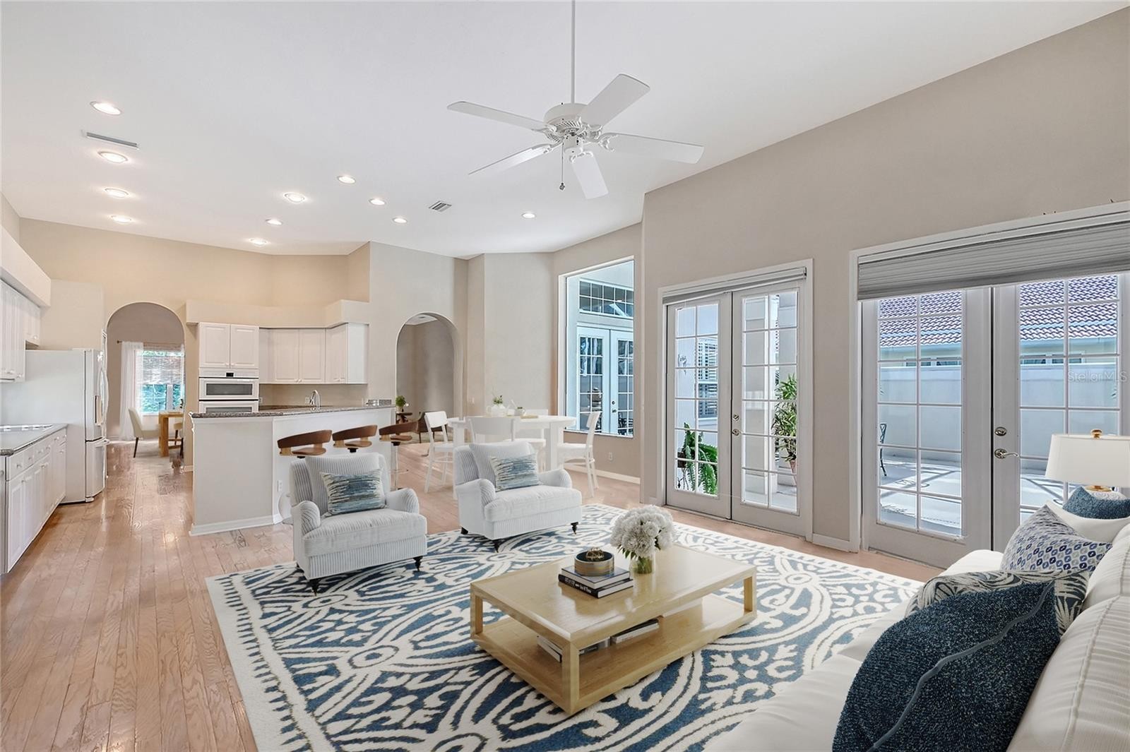 Major Price Reduction + Buyer Lender Incentives Available! Welcome to The Greens—a quiet, maintenance-free golf course community located outside of high-risk flood zones (‘X’ zone), just minutes from IMG Academy Golf Club and waterfront dining. Enjoy a serene private preserve backdrop, a secluded courtyard design, and a versatile casita/in-law suite — with new pool plans available upon request! This Sedona floor plan—the builder’s premier design—offers over 2,700 sq ft of thoughtfully designed living space centered around a private screened courtyard retreat. Inside, you’ll find soaring 12-foot ceilings, hardwood floors, abundant natural light, and a flexible layout ideal for everyday living or hosting extended family. The detached casita, with its own entrance, full bath, and walk-in closet, provides a perfect space for guests or in-laws. The open kitchen, finished with neutral stone countertops, flows seamlessly into the dining room, breakfast nook, and leisure room with French doors overlooking the sunlit courtyard. On the preserve side, the primary suite offers peaceful wooded views, dual walk-in closets, and a spacious ensuite bath. A second bedroom with French doors opens to the courtyard—ideal as a guest room or home office. The private courtyard enjoys southern exposure, making it the perfect setting for outdoor dining—or a future pool oasis (concept available). A dedicated laundry room and two-car garage offer added functionality and storage, with ample space for a golf cart. Built in 1997 with solid block construction, the home was updated in 2023 with a new HVAC system and water heater, and includes PVC plumbing for lasting peace of mind. The Greens is an intimate 43-home enclave, quietly tucked away with a single entry point—offering privacy and a relaxed pace, while staying close to IMG Academy, Gulf beaches, SRQ Airport, and Downtown Sarasota. The IMG Academy Golf clubhouse is a short cart ride away with various optional membership opportunities, including fitness and social, with a beautiful waterfront restaurant on Sarasota Bay (open to the public). Come see the lifestyle for yourself—schedule your tour today!