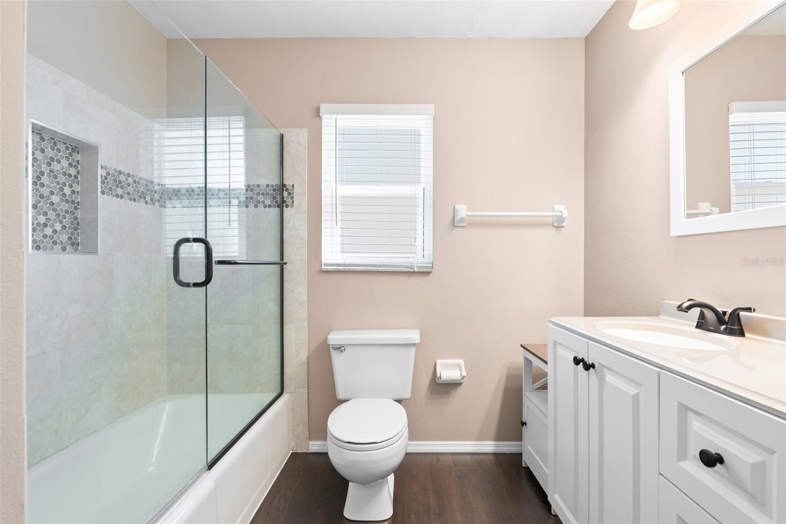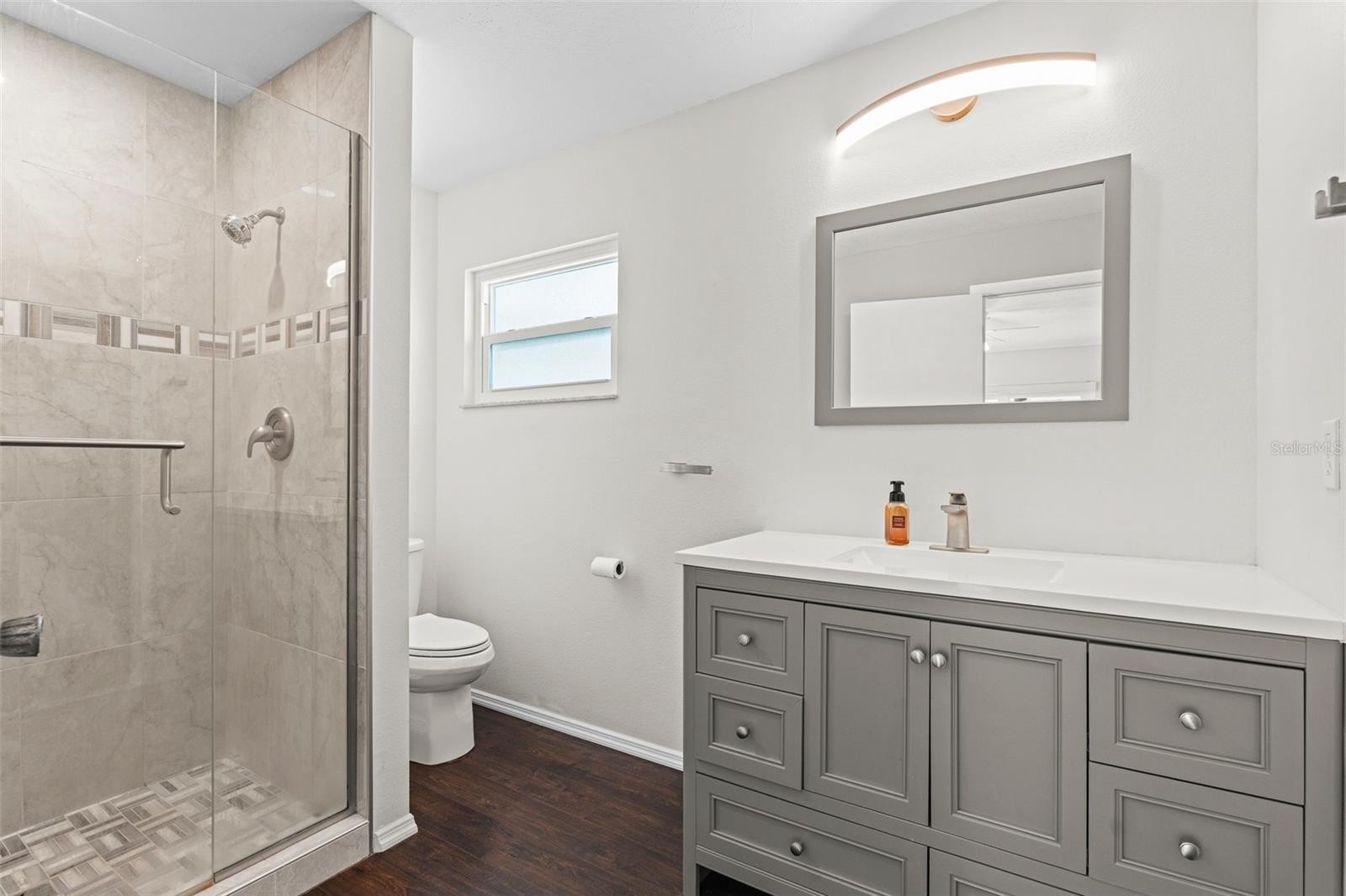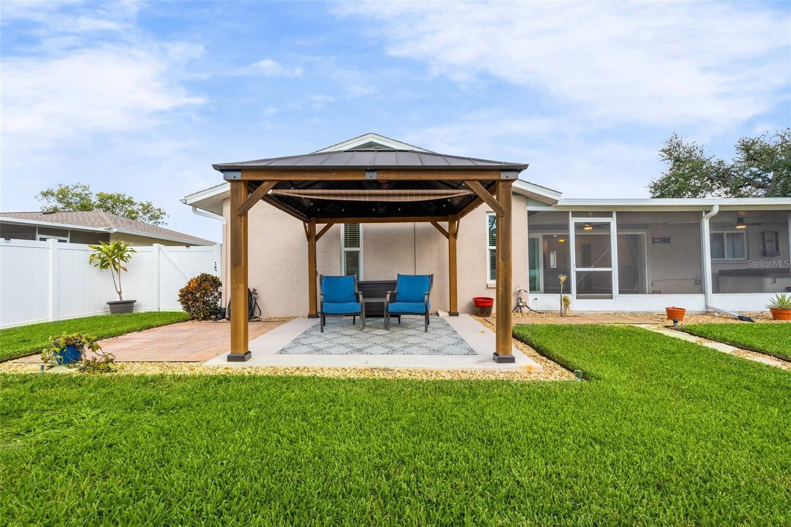 Welcome to this completely renovated, impeccably maintained Sarasota home offering an exceptional combination of location, upgrades, and lifestyle. Perfectly situated with easy access to I-75, dining, shopping, hospitals, schools, and Sarasota’s renowned white sandy beaches, this move-in-ready residence truly has it all. From the moment you arrive, the home’s outstanding curb appeal sets the tone. The park-like front yard is meticulously landscaped and accented with low maintenance pebble garden beds, lush perfectly mowed grass, and a spacious driveway with ample room for multiple vehicles or even a boat. Major updates provide peace of mind, including a 2018 roof, hurricane-impact windows installed in 2022, and a new HVAC system in 2017. Inside, you’re welcomed by a light-filled, open layout with newer Pergo laminate flooring and a neutral color palette throughout. The designer kitchen, updated in 2020, is the heart of the home and ideal for entertaining, featuring a large window over the sink for abundant natural light, stylish finishes, plenty of pantry and cabinet storage and a convenient countertop bar seating area. The split floor plan offers privacy and functionality. Two generously sized guest bedrooms share a beautifully updated bathroom with a frameless glass shower door and stylish tile, installed in 2022. The expansive great room is a showstopper, highlighted by a massive impact pocketing slider door that opens fully to invite in the gentle Florida breeze and showcase serene views of the flawlessly manicured backyard. Outdoor living shines here. The screened-in patio features a freestanding hot tub and ceiling fans, creating the perfect space to relax year-round. Beyond, the fully fenced backyard is a true tropical oasis, complete with a gazebo, fire pit for cooler evenings, and plenty of room to add a pool. An irrigation system services the entire property, keeping the grounds vibrant. The primary suite is thoughtfully designed with a custom closet featuring built-ins and a well-appointed en-suite bathroom. The bathroom offers convenient access to both the laundry room and the two-car garage, adding everyday ease to luxury living. With extensive updates, immaculate condition, and a prime Sarasota location, this home represents incredible value and is truly one you don’t want to miss!