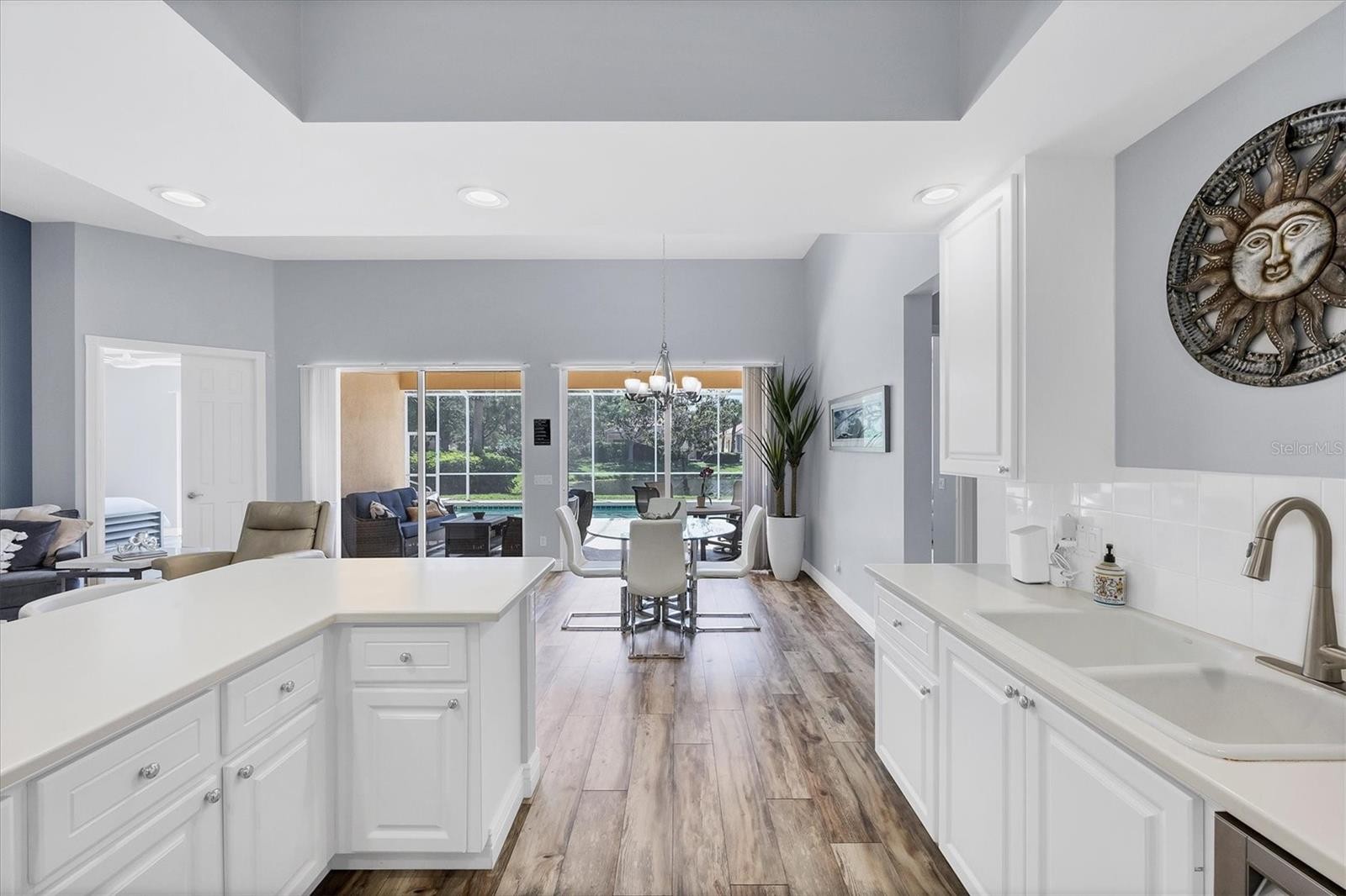 Welcome to this spectacular 5-bedroom, 3.5-bath home with a large, HEATED POOL on a rare corner waterfront lot in award-winning VillageWalk. The interior is light and bright with a wide-open floor plan, large windows and cathedral ceilings in the living areas. The backyard faces south offering maximum sun for year-round enjoyment of the pool and watching wildlife on the lake. There are unobstructed views on both sides of the lanai offering rare privacy. Updates include NEW A/C, KITCHEN APPLIANCES, WASHER/DRYER, CEILING FANS AND PAINT throughout. Feel secure knowing the home was built to last by DiVosta with REINFORCED POURED CONCRETE CONSTRUCTION including roofs reinforced exceeding building codes. Storm season is covered with HURRICANE SHUTTERS for all windows and sliding doors. VillageWalk is 24-hour guard-gated resort lifestyle community where every day feels like a vacation. It sits on over 500 acres of lush, manicured tropical landscaping with miles of scenic recreational and biking paths along picturesque lakes. The waterfront town center consists of a STATE OF THE ART FITNESS CENTER, lap and lagoon pools, six Har-Tru lighted tennis courts, PICKLEBALL, basketball court, bocce, event and meeting rooms. VillageWalk is one of the few communities that has its CAFE WITH FULL BAR, lagoon pool tiki bar, gas pumps as well as a hair salon, and a gift shop. This ideal location has A-rated schools nearby and is in the heart of Palmer Ranch with proximity to Siesta Key, downtown Sarasota and Legacy Biking Trail. Furniture is available separately, making this completely updated home move-in ready. Call today to set up a private showing.