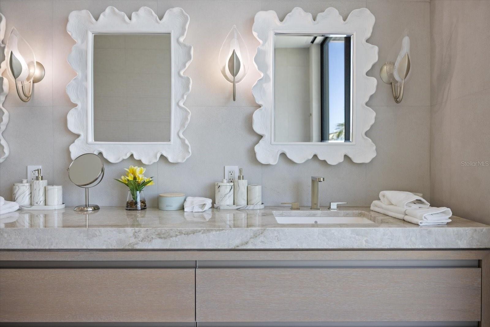 Step into a new era of coastal modern living with this breathtaking, newly constructed waterfront retreat, perfectly positioned on the exclusive north end of Longboat Key. Designed with intention and offered fully turnkey-furnished, this residence is a refined sanctuary where architectural elegance meets cutting-edge technology and relaxed sophistication. The grand entry leads into a dramatic great room, showcasing driftwood-accented ceilings and expansive floor-to-ceiling windows that flood the space with natural light. From here, the home flows effortlessly into the open dining area and chef’s kitchen, where rich wood-tone custom cabinetry, premium appliances, and clean modern lines create an atmosphere of understated luxury. Just off the dining space, you’ll find an expansive entertainer’s room with its own full bath—ideal for hosting dinner parties, events, or enjoying a night in with guests. Upstairs, the home’s private quarters await. Bedrooms two and three are located on the second level, while the third floor is reserved entirely for the primary suite, accessible by private elevator. This executive-level retreat features multiple walk-in closets, serene private balconies overlooking the water, and a spa-inspired primary bathroom designed with curated finishes and timeless style. Throughout the home, attention to detail is evident in every finish and feature—including a full Lutron lighting system, motorized shades, integrated surround sound, and a Brinks security system with CCTV monitoring. Outside, the coastal lifestyle truly comes to life. Enjoy a resort-style pool, fire pit lounge, and a brand-new private dock just a few homes away from open water—offering easy access to the Gulf and endless boating adventures. This property was crafted to bring people together, whether relaxing with family or entertaining in style.