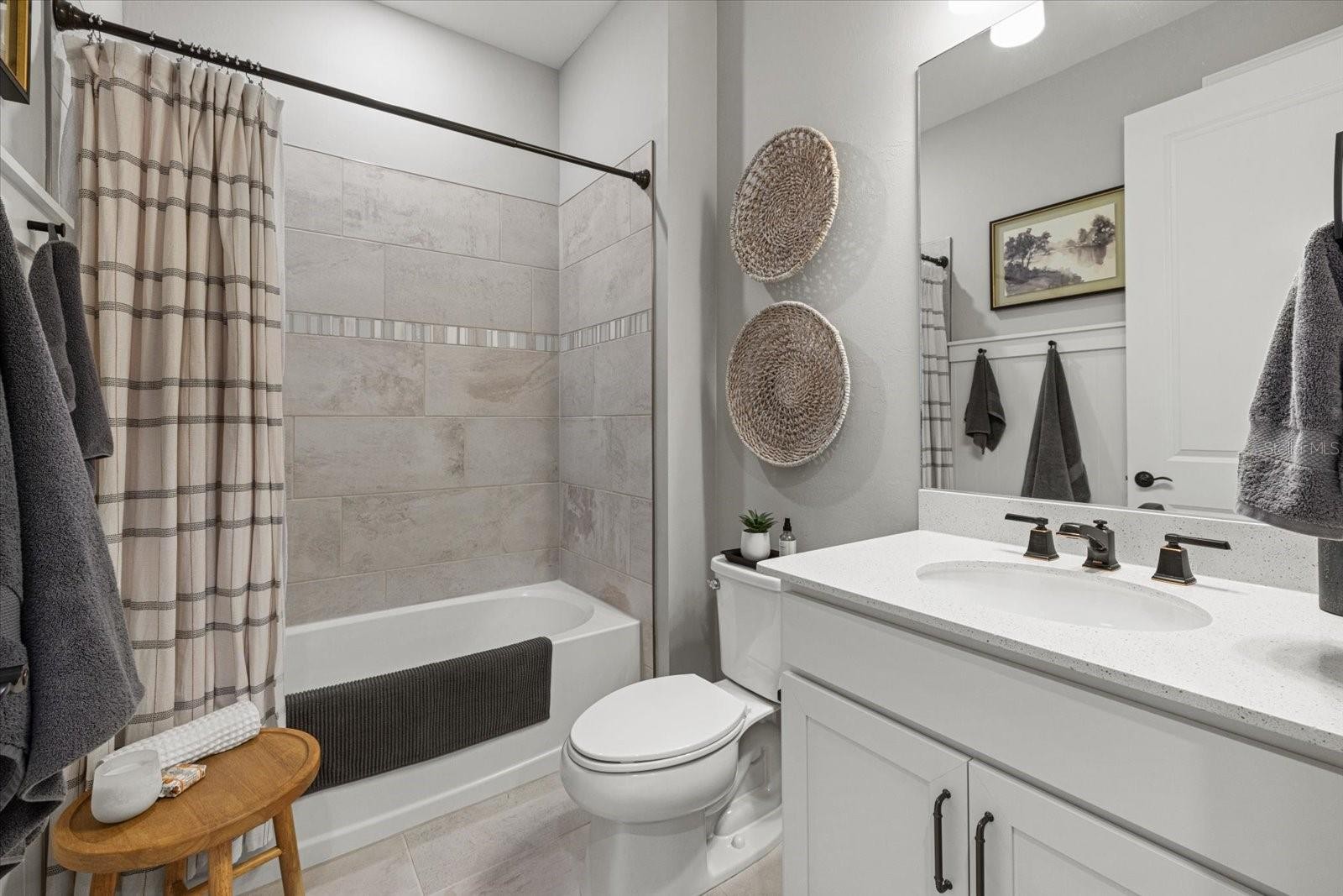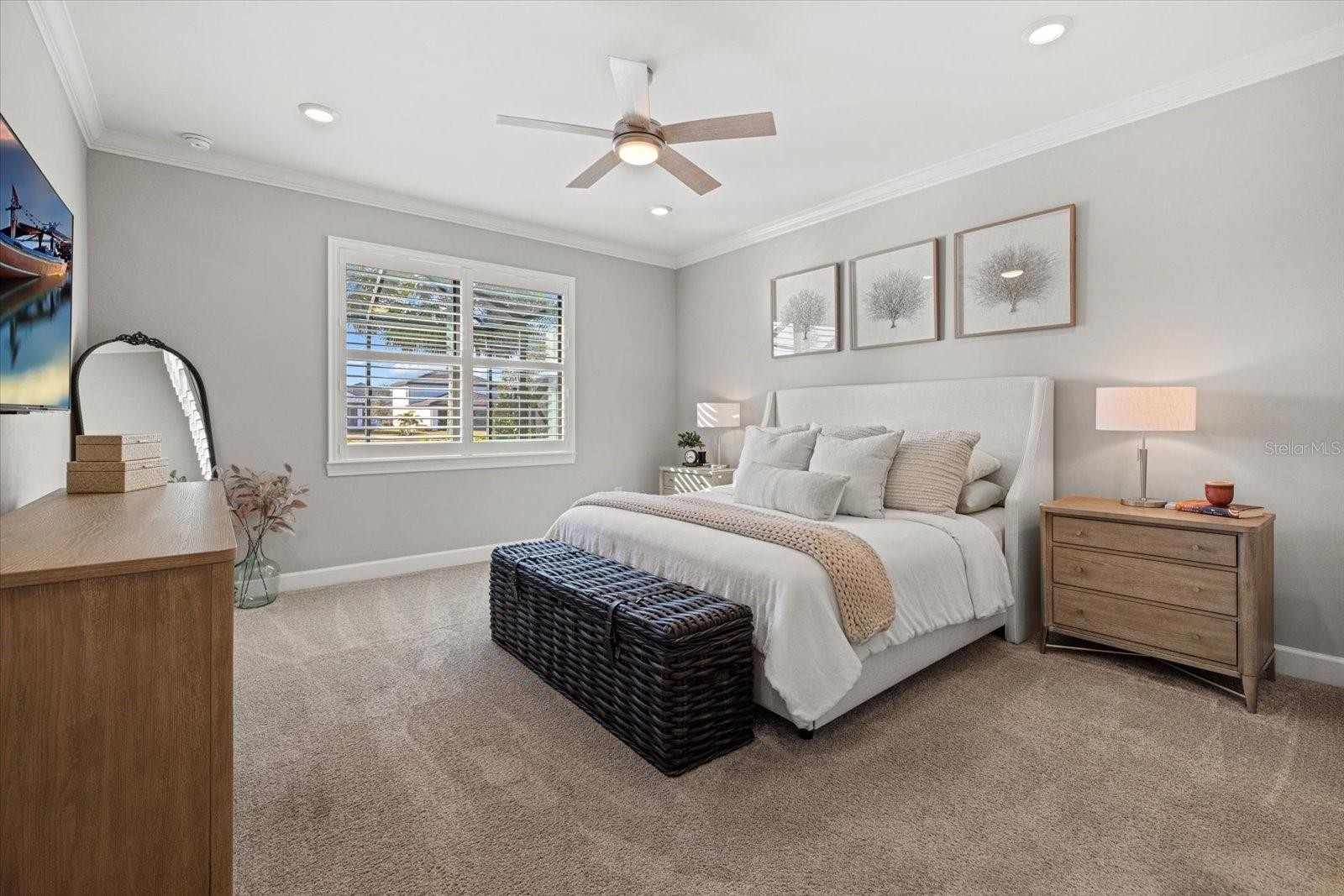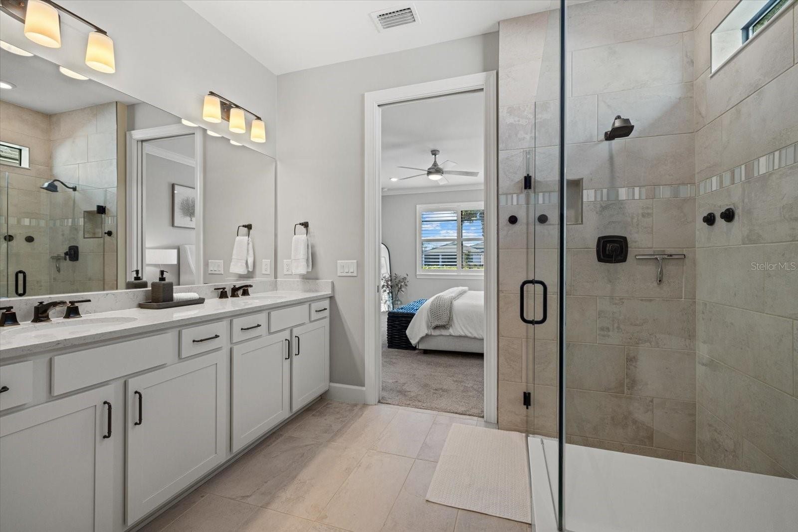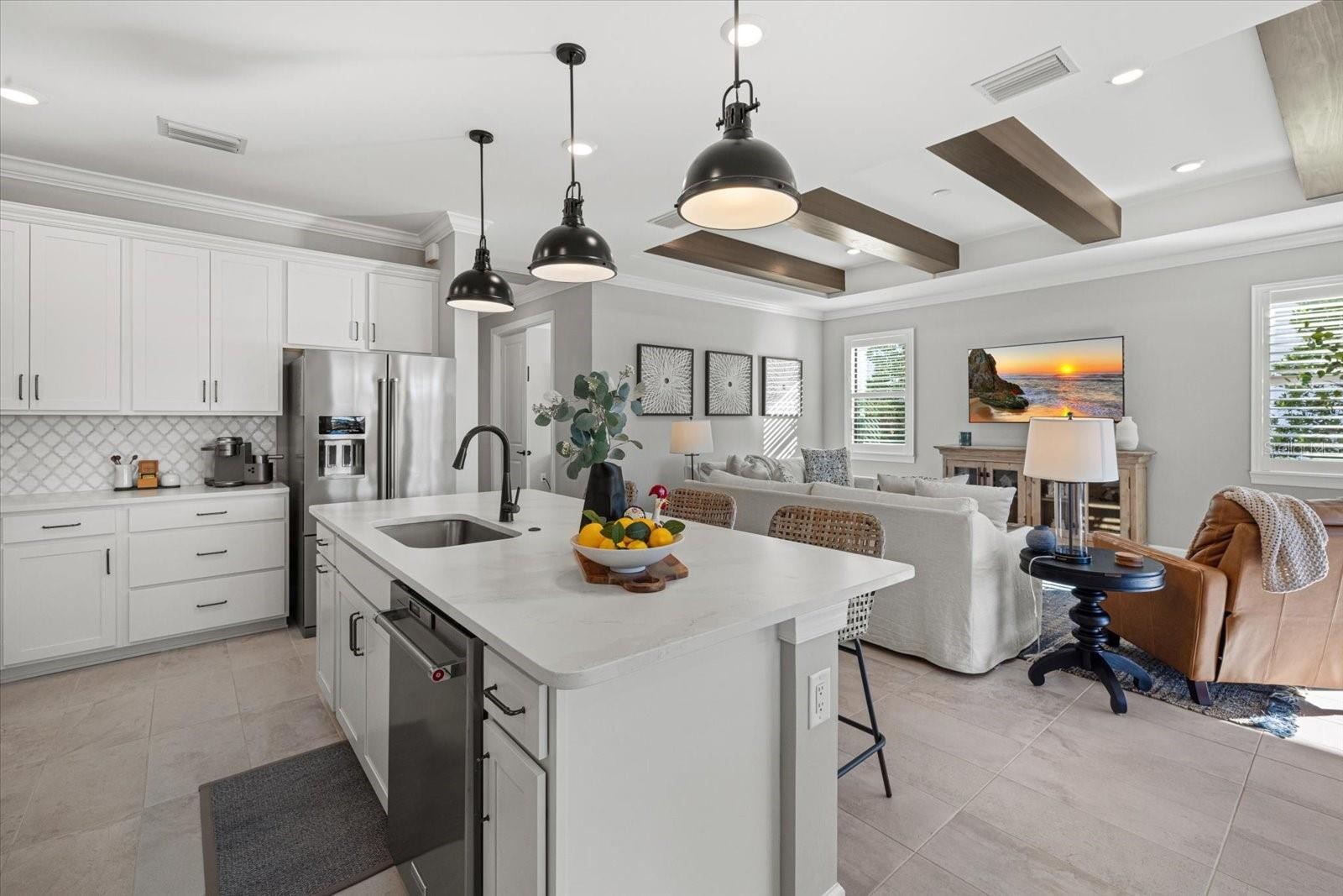 Welcome to this Mystique model home located in the gated community of Sapphire Point at Lakewood Ranch, just steps from the community amenities. This move-in-ready residence offers three bedrooms plus a den and two bathrooms, thoughtfully designed for comfort, functionality, and modern Florida living. Interior features include tray ceilings with decorative beams, crown molding throughout, and ceiling fans in every room. The kitchen is enhanced by a walk-in pantry, while the functional laundry room and drop zone provide excellent everyday organization. Additional upgrades include pull-down attic stairs and added garage rafters, offering valuable storage solutions. The home’s widened driveway provides additional parking, while the epoxy-finished garage floor and desirable four-foot garage extension create extra space ideal for storage, larger vehicles, or a workshop area. The main living area opens seamlessly to the outdoors through zero-corner pocket sliding glass doors, leading to an upgraded extended covered lanai designed to maximize shaded outdoor living and entertaining space. This exceptional outdoor retreat features a heated pool and spa, custom lanai lighting for evening ambiance, and tranquil pond views, creating the perfect setting for both relaxing and hosting guests year-round. Sapphire Point offers resort-style amenities including a clubhouse, fitness center, dog park, basketball courts, covered playground, fire pit, and an active social calendar. Conveniently located near top-rated schools, shopping, dining, and everything Lakewood Ranch has to offer, this home delivers an exceptional combination of upgrades, location, and lifestyle.