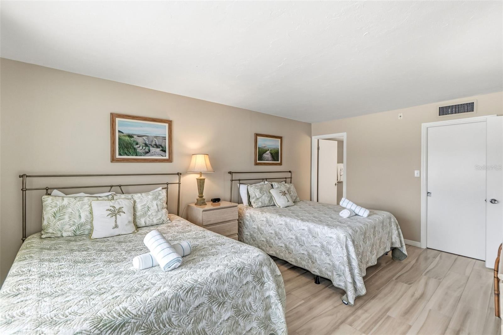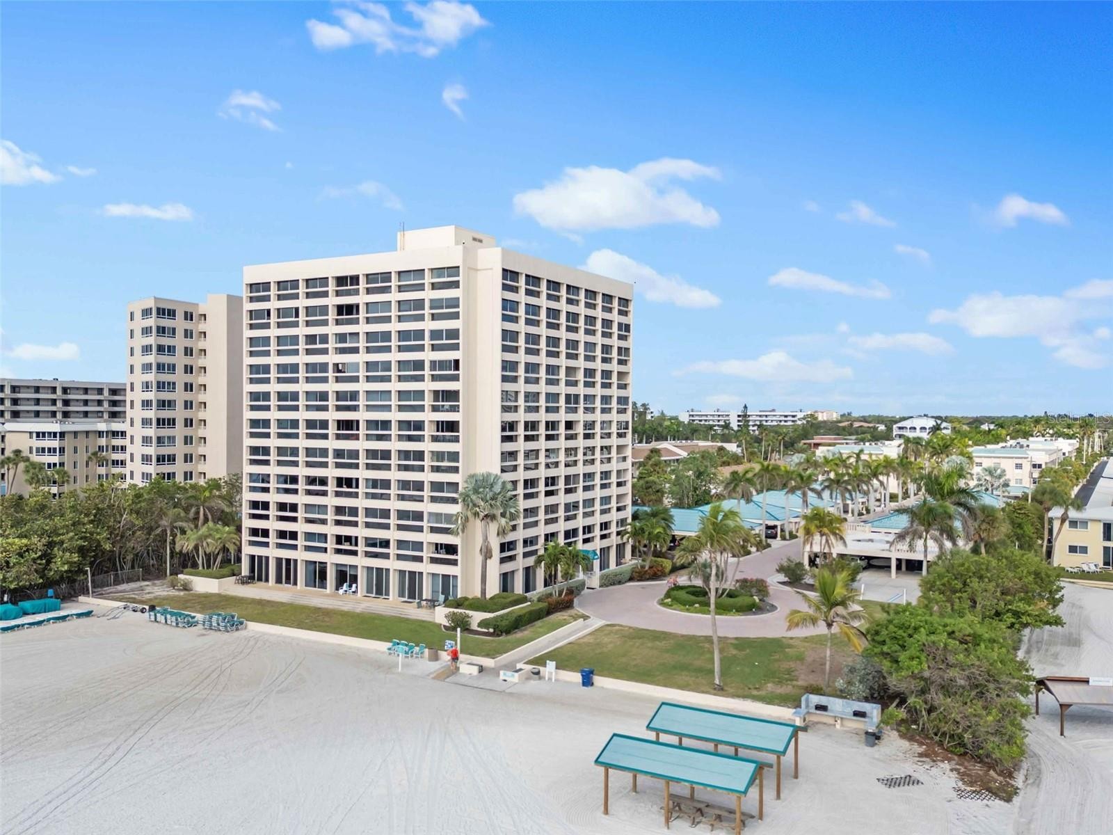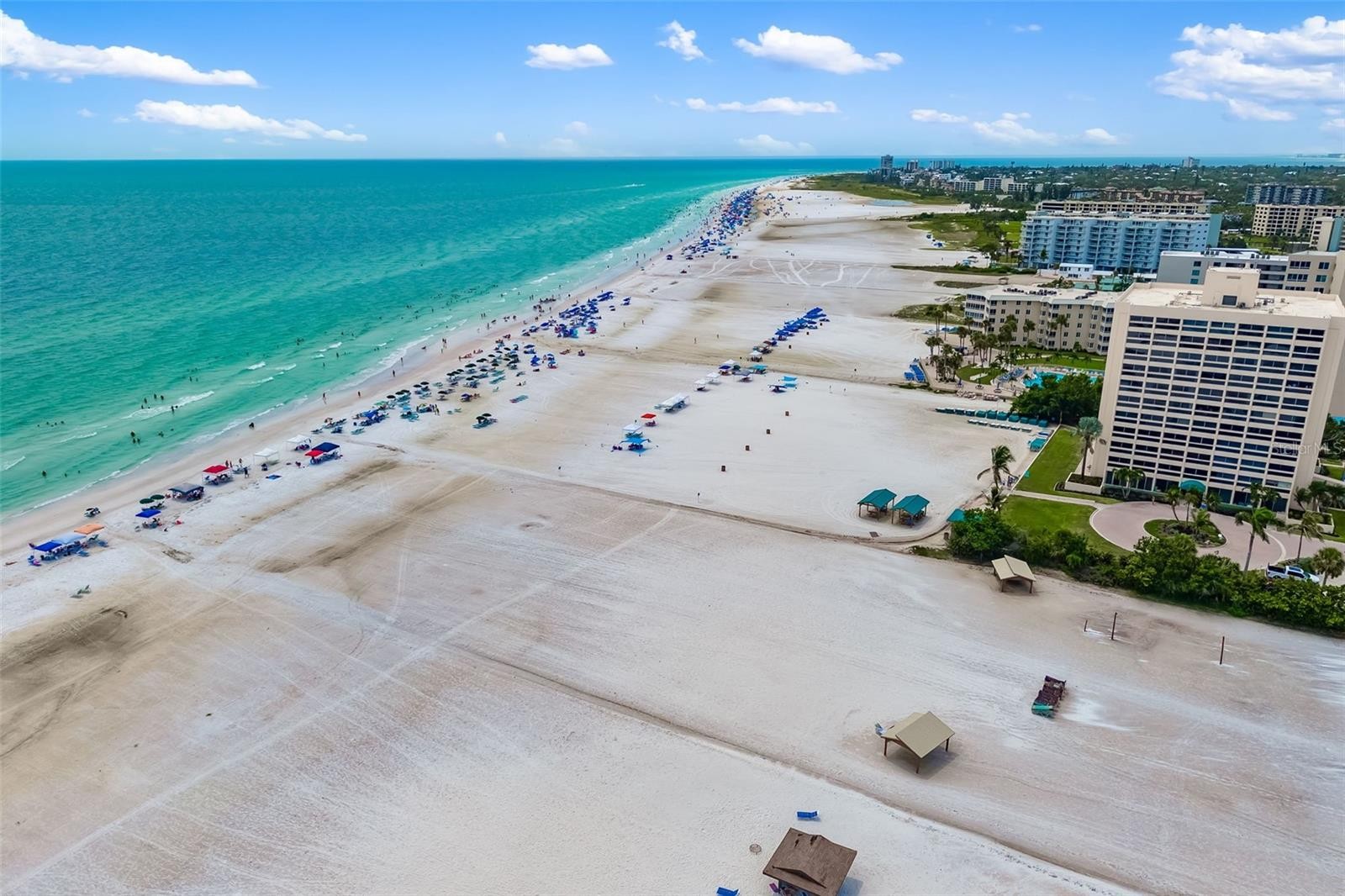 Welcome to this beautifully updated third-floor, two-bedroom, two-bath residence on the desirable Gulf side of the Palm Bay Club on Siesta Key. Offering the largest two-bedroom floorplan in the community, this spacious corner unit enjoys additional windows that invite in abundant Florida sunshine, enhancing its light and airy coastal ambiance. Thoughtfully refreshed with clean, coastal-inspired furnishings, the residence features an updated kitchen with white cabinetry, granite countertops, and generous storage, all seamlessly connected to the open living and dining areas—ideal for gathering after a day at the beach. Your Siesta adventures are undoubtedly sandy, and the attractive driftwood inspired tile throughout means low maintenance and easy clean up. The living room is designed for comfort and relaxation, while the screened lanai provides the perfect setting to enjoy warm tropical breezes in a peaceful, private setting. Both bathrooms have been tastefully renovated with frameless glass walk-in showers and modern finishes. The primary suite is generously sized and comfortably furnished with two queen beds, while the guest bedroom offers a king bed—accommodating up to six guests. Palm Bay Club is one of Siesta Key’s rare beach-to-bay communities, offering owners and guests access to both the powdery Gulf sands and the peaceful Intracoastal Waterway. On the bayside, enjoy a scenic fishing pier, boat docks, and bayside pool complete with a custom hot tub, where you can take in passing boat traffic and frequent wildlife sightings including birds and manatees. On the Gulf side, this unit is just a short stroll from the sugar-white sands of Siesta Key Beach, as well as the community pool, tennis courts, and grilling areas, offering the ideal blend of comfort, style, and convenience. A top-notch onsite rental management team organizes your rental calendar and turnovers while you enjoy the income from your second home with a fantastic 3-night rental minimum policy. Whether enjoyed as a personal retreat or a high-performing rental, this Gulf-side corner unit delivers the very best of effortless island living at Palm Bay Club.
