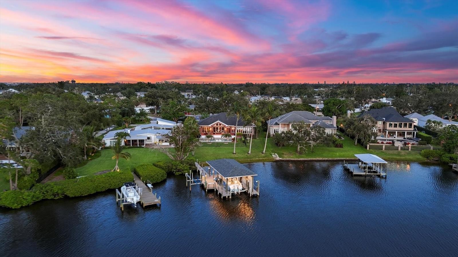 *NEW PRICE* A boater’s tropical paradise awaits you in this custom-built home located on Warner’s West Bayou in desirable NW Bradenton. Imagine living the FL boating lifestyle where you can be out in your boat fishing or sightseeing in the beautiful Tampa Bay in a matter of minutes. This luxurious estate home features 4025 sq ft with 3 bedrooms + den with 2 full baths + 2 half baths plus an oversized saltwater pool on a boatable waterfront lot. This beautiful home sits on an estate sized lot with 100’ of water frontage and no HOA. There is a large covered dock that includes two boat lifts, one that is covered and fits a 50’ yacht, 25,000lb lift, with water & electric & a fish cleaning station. Coming into the home are beautiful mahogany double doors with glass inserts that welcome you and set the scene for elegant living. Upon entering the home, you will love the open floor plan with its high ceilings and beautiful water views. The living and dining rooms are inviting, spacious, and feature wood floors, elegant crown moldings, chair rails and custom built-ins. To enjoy large gatherings and family fun there is an impressive, oversized family room/game room with woodburning fireplace and large windows that let in the sunshine, pool, and water views. The spacious kitchen which opens to the family room is a chef’s dream with wood cabinetry, granite countertops, tile backsplash, newer stainless-steel appliances, a large center island with prep sink, and a built-in desk. Rest and relax in the master bedroom suite overlooking the lovely backyard with sliding doors opening to the pool area and water views. The master bath features travertine floors, a large walk-in shower and large tub made for two. Separated from the master bedroom are two spacious bedrooms and a hall bathroom with tub and walk in shower. Next is the laundry room that is oversized featuring a newer washer & dryer, laundry sink, plenty of cabinets and a large closet. Out back everyone will love the oversized covered lanai that is a dream come true and keeps you shaded during the day while your family is enjoying the sunshine in the pool and spa. There is a pool bath and an outside shower plus a storage closet for all your boating gear. Watching the sunsets views while sitting on the lanai with your favorite beverage is a lovely way to end the evening. The backyard is fenced for your family and pets to run and play and there is an open beach for kayaking or canoeing. Another great feature is the oversized 40’ 3 car insulated A/C’d garage with large semi-circular driveway with parking area. Plenty of room to park, store your possessions, and work on your cars. All this is conveniently located to Sarasota/Bradenton airport, IMG Academy, restaurants, shopping, and the beautiful AMI Gulf beaches.