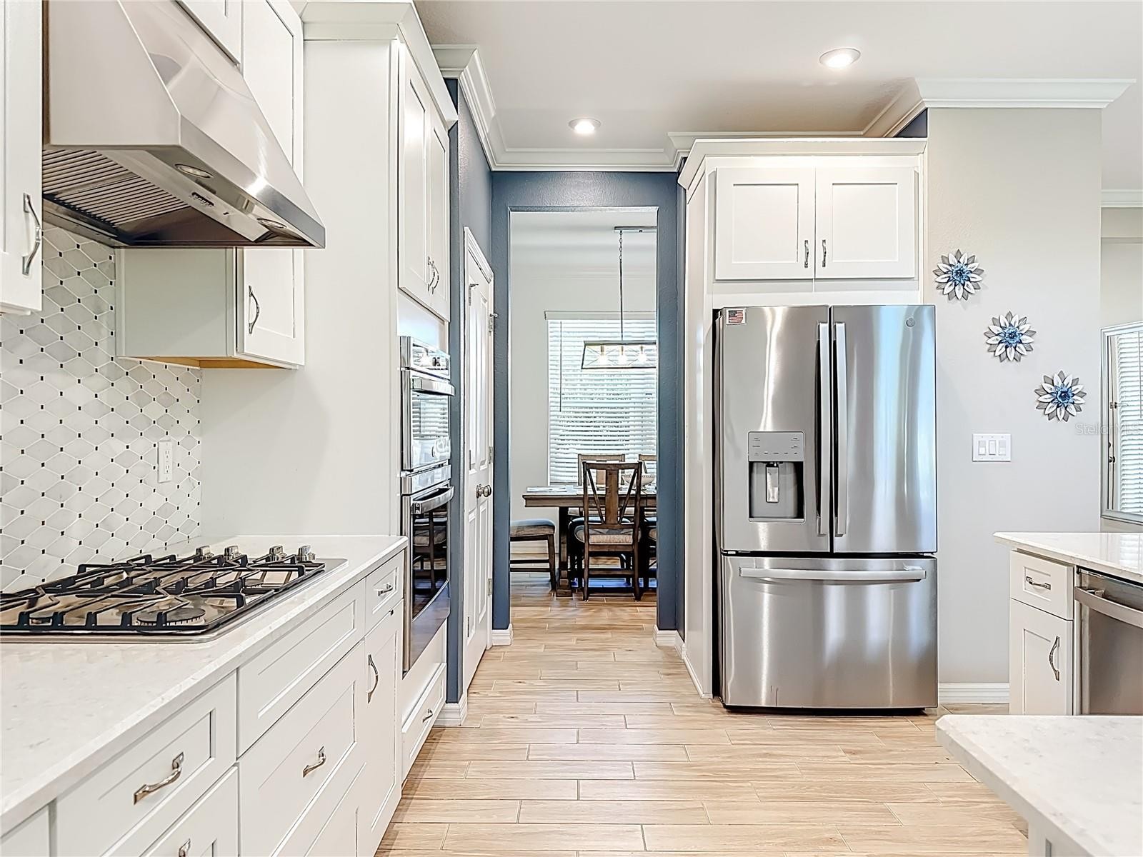 Experience refined Florida living in this impeccably designed executive Taylor Morrison Bonaire model, nestled within the sought-after community of Eaves Bend at Artisan Lakes. This stunning 4-bedroom, 3.5-bath residence offers over 2,600 square feet of thoughtfully curated living space, blending luxury, comfort, and modern sophistication. From the moment you step into the grand foyer, you’re greeted by soaring ceilings, abundant natural light, and an open-concept layout ideal for both elegant entertaining and everyday living. The gourmet kitchen is a true centerpiece, featuring premium stainless steel appliances, gleaming quartz countertops, a spacious island with bar seating, custom cabinetry, a walk-in pantry, and a whole-house water filtration system. The main-level owner’s suite serves as a private retreat, complete with tray ceilings, a cozy sitting area, dual walk-in closets, and a spa-inspired bath with dual vanities, a soaking tub, and a glass-enclosed walk-in shower. Upstairs, generously sized secondary bedrooms and a versatile loft provide flexibility for a home office, media room, or additional living space. Designed for today’s lifestyle, the home also includes extended Wi-Fi coverage to keep you seamlessly connected. Step outside to your own private oasis backing to a peaceful conservation area. The screened-in lanai with outdoor kitchen is perfect for entertaining, while the beautifully landscaped yard offers and ample space to design your dream pool. Additional highlights include an oversized 3-car garage with epoxy flooring, abundant storage, and room for a full-size truck, along with extra storage potential beneath the staircase. The home’s contemporary design delivers striking curb appeal and a commanding presence. Residents of Eaves Bend enjoy resort-style amenities including a clubhouse, resort pool, fitness center, playground, sports courts, and scenic walking trails—all conveniently located near I-75, downtown St. Petersburg, Lakewood Ranch, and the Gulf beaches. This is luxury Florida living at its finest.