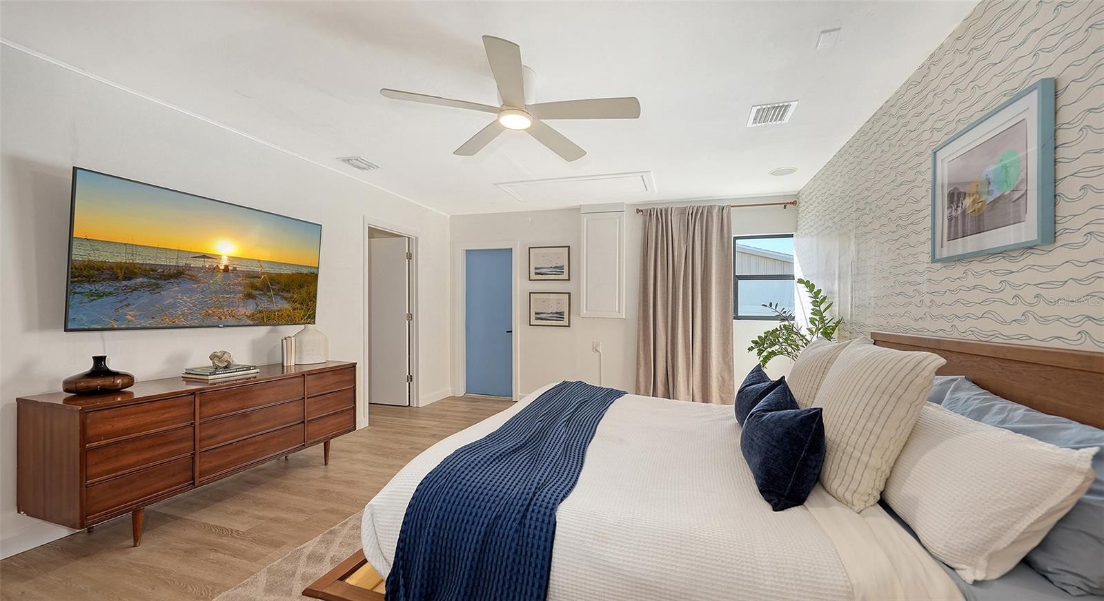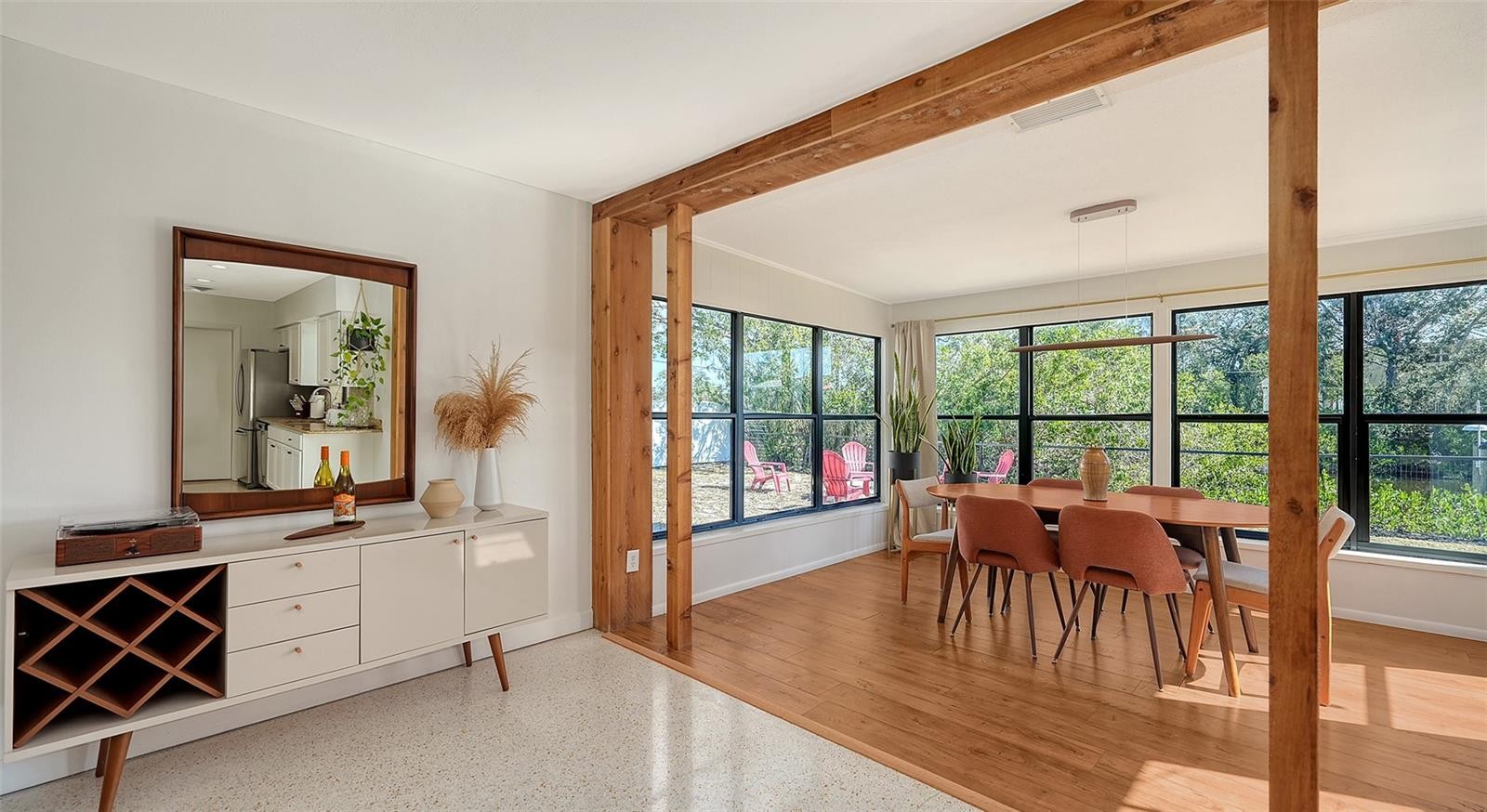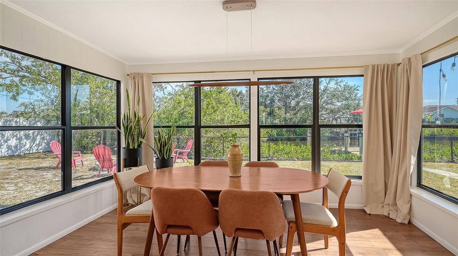 Set along the Barnes Parkway inlet directly on Curry Creek, this canalfront residence offers true boating freedom and a waterfront lifestyle that’s increasingly hard to find. Launch from your private dock, cruise beneath the Legacy Trail and US-41/Tamiami Trail, and you’re out into Roberts Bay, with the South Jetty leading straight to the Gulf and no additional bridges beyond US-41. Sunset views, protected mangrove privacy, and direct Gulf access define this exceptional setting on a quiet dead-end street. Positioned at an impressive 11-foot baseline elevation, the property offers rare peace of mind with no HOA, no deed restrictions, and no CDD fees, keeping ownership simple and flexible. Beaches, dining, parks, and golf are all just minutes away, while the private road is maintained by the owners. Offered turnkey furnished with select exclusions (see private remarks), the nearly 1,950-square-foot interior blends timeless mid-century character with thoughtful modern updates. Polished terrazzo floors, expansive windows, and an open, light-filled layout create an inviting atmosphere throughout. The waterfront-view lanai naturally extends the living area, while a covered front porch provides a peaceful place to enjoy sunrises and local birdlife. The bright galley kitchen overlooks the canal and features granite countertops, tile backsplash, painted wood cabinetry, matte black hardware, stainless appliances, a walk-in pantry, built-in USB outlets, and smart storage. The primary suite includes a walk-in closet and updated en-suite bath, while two guest bedrooms and a second updated bath provide comfortable accommodations. Set on an almost one-third-acre fully fenced lot, the backyard offers ample room to add a pool and create a private waterfront retreat. The 4' x 20' dock with water and electric accommodates boats up to approximately 25 feet, offers about five feet of clearance at high tide, and has lift potential. Mangrove views provide privacy without obstructing the water view, and a kayak launch is located across the street. Major updates include a new water heater (Jan 2026), septic drainfield (2020), complete cast-iron plumbing replacement under slab (2016), updated electrical (2013), Septic System: New drainfield installed (2022) HVAC: New AC system (2022), R/O water filter at kitchen sink & new garbage disposal (2025) and a 30-year roof replacement (2013). The home has never flooded during the seller’s ownership. Survey and elevation certificate (2015) are attached in MLS. All fencing is owned except the shared south fence.