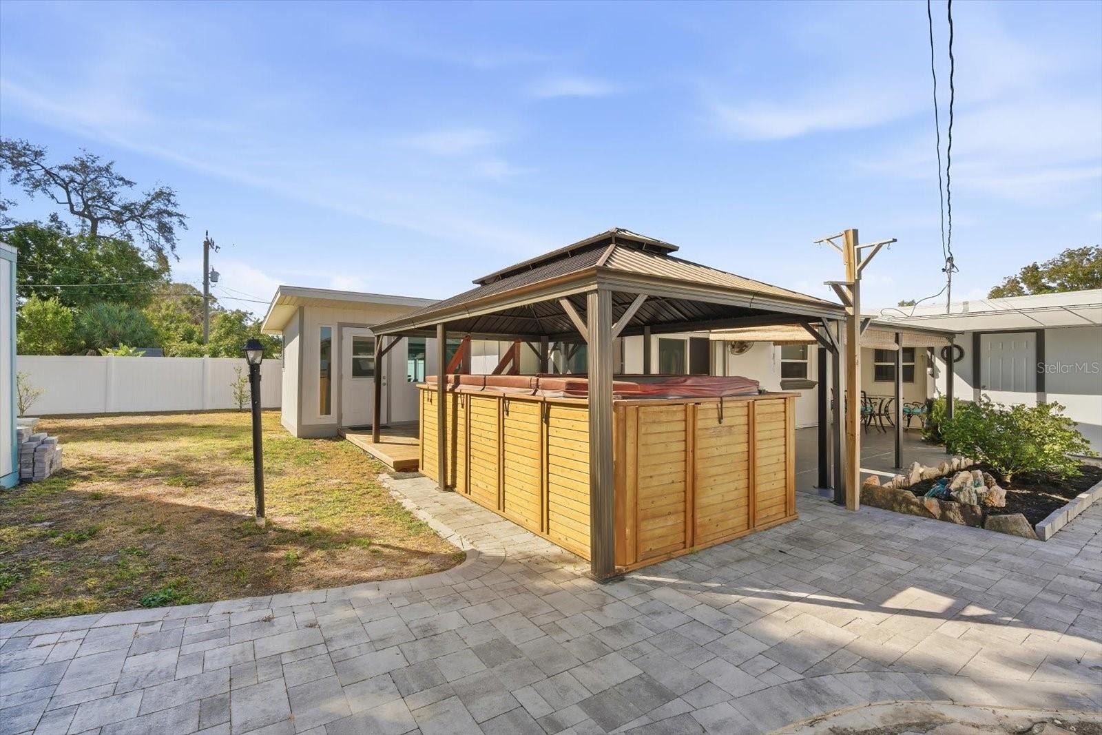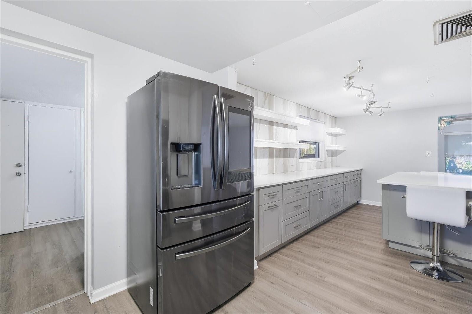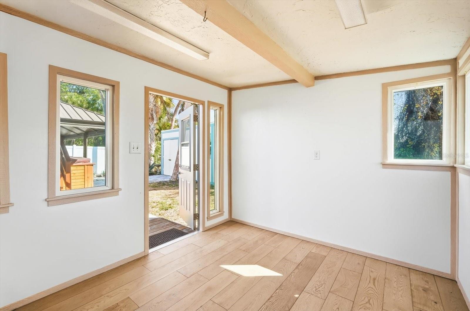 This beautifully upgraded 2-bedroom home with a large family room, also a private-entrance flex space offering exceptional value and versatility. The additional room with its own entrance is perfect for a home office, guest suite, or potential third bedroom. The open-concept floor plan seamlessly connects the kitchen, dining area, and living/sunroom—ideal for entertaining. The remodeled kitchen showcases with solid wood cabinetry with soft-close doors and drawers, elegant quartz countertops, a custom stained-glass corner cabinet, stainless steel appliances (all under 4 years old), a state-of-the-art touch-door refrigerator (1 year old), gas stove, and a spacious island with bar seating. So many cabinets, you will never run out of storage. The large dining area easily accommodates gatherings. The primary suite features new carpet and fresh paint, and bathroom with shower. The second bedroom is next to the fully remodeled guest bathroom with a modern shower & granite countertop. Additional highlights include: Laundry room with abundant storage -6 large closets & two cabinets over washer & dryer Insulated single-car garage with heat & A/C, updated lighting, and hidden storage room & safe Upgraded electrical panel (2020) Central A/C plus two mini-split A/C & heat systems & two wall units 2024 membrane roof-over system with 1.5” insulation board and upgraded 60-mil thickness New custom European front door Step outside to your private fenced backyard retreat featuring a 12-foot swim spa with LED lighting under a roof structure and seating around the spa, perfect for year-round enjoyment. There’s also a 10x12 treated lumber shed and an additional 10x20 workshop/storage shed. Plenty of parking with a circular driveway, brick pavers on the side of house & under hot tub. Room for a small boat or golf cart. Located in Bayshore Gardens, residents enjoy access to a recreation center with a large pool, playground, Pickleball & Basketball court, small kayak-canoe storage, workshop area, boat launch and marina. Annual amenities fee of $427, included in your property tax bill. Visit bayshoregardens.org for full details Conveniently close to shopping, bus lines, Sarasota Airport, and beautiful Gulf beaches. This move-in ready home truly has it all. No rental restrictions.