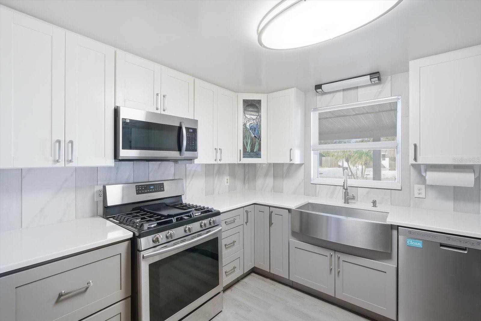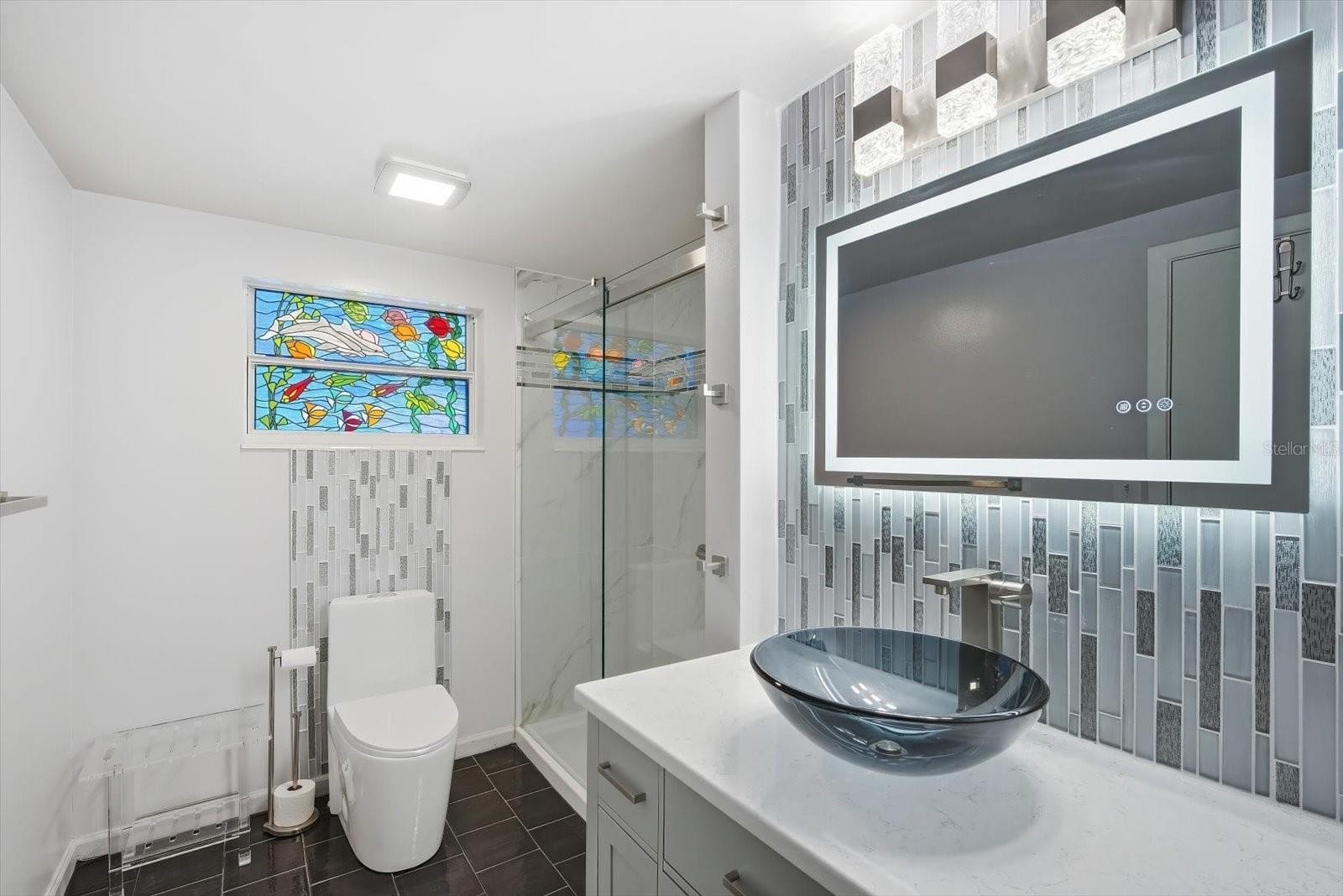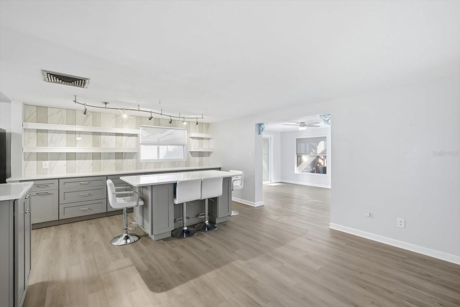 This beautifully upgraded 2-bedroom home with a large family room, also a private-entrance flex space offering exceptional value and versatility. The additional room with its own entrance is perfect for a home office, guest suite, or potential third bedroom. The open-concept floor plan seamlessly connects the kitchen, dining area, and living/sunroom—ideal for entertaining. The remodeled kitchen showcases with solid wood cabinetry with soft-close doors and drawers, elegant quartz countertops, a custom stained-glass corner cabinet, stainless steel appliances (all under 4 years old), a state-of-the-art touch-door refrigerator (1 year old), gas stove, and a spacious island with bar seating. So many cabinets, you will never run out of storage. The large dining area easily accommodates gatherings. The primary suite features new carpet and fresh paint, and bathroom with shower. The second bedroom is next to the fully remodeled guest bathroom with a modern shower & granite countertop. Additional highlights include: Laundry room with abundant storage -6 large closets & two cabinets over washer & dryer Insulated single-car garage with heat & A/C, updated lighting, and hidden storage room & safe Upgraded electrical panel (2020) Central A/C plus two mini-split A/C & heat systems & two wall units 2024 membrane roof-over system with 1.5” insulation board and upgraded 60-mil thickness New custom European front door Step outside to your private fenced backyard retreat featuring a 12-foot swim spa with LED lighting under a roof structure and seating around the spa, perfect for year-round enjoyment. There’s also a 10x12 treated lumber shed and an additional 10x20 workshop/storage shed. Plenty of parking with a circular driveway, brick pavers on the side of house & under hot tub. Room for a small boat or golf cart. Located in Bayshore Gardens, residents enjoy access to a recreation center with a large pool, playground, Pickleball & Basketball court, small kayak-canoe storage, workshop area, boat launch and marina. Annual amenities fee of $427, included in your property tax bill. Visit bayshoregardens.org for full details Conveniently close to shopping, bus lines, Sarasota Airport, and beautiful Gulf beaches. This move-in ready home truly has it all. No rental restrictions.