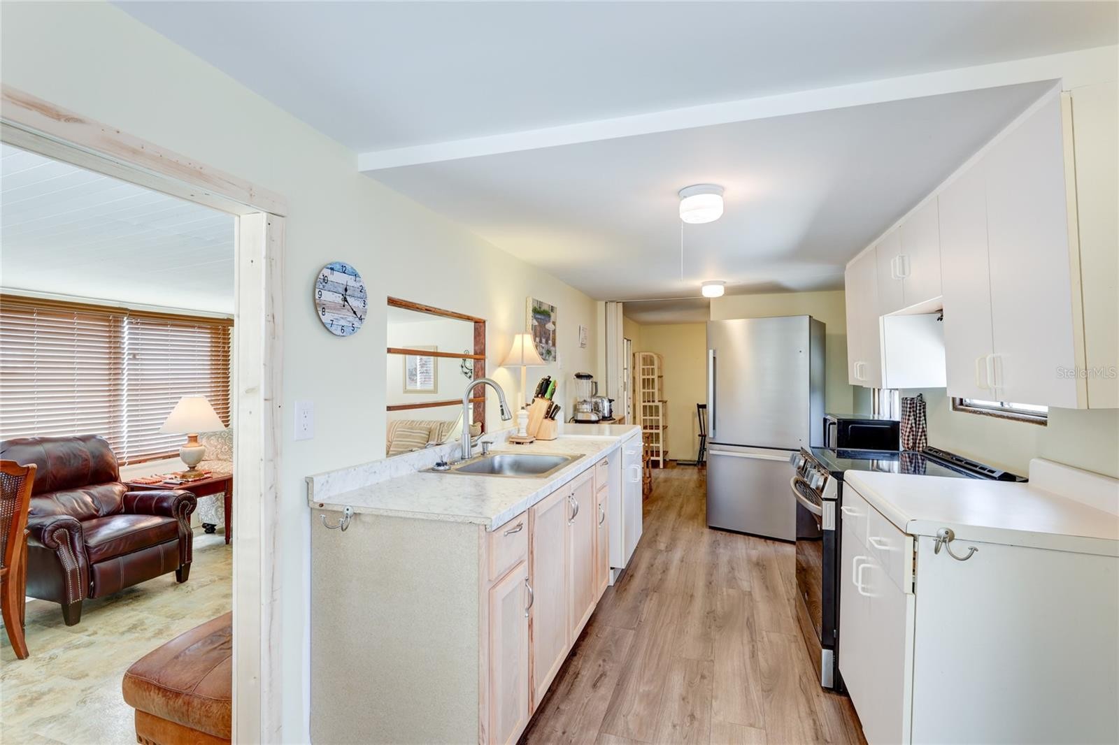 Your slice of paradise is ready and waiting. This beautifully remodeled, **fully furnished** 1-bedroom, 1-bath mobile home offers 680 square feet of thoughtfully designed living space where comfort meets convenience. Step inside to discover a bright, refreshed interior featuring new drywall and fresh paint throughout. The stylishly updated kitchen flows seamlessly into the inviting living area, creating a warm, open space perfect for relaxing evenings or casual entertaining. The bathroom has been tastefully updated with new flooring and paint, providing a clean, modern feel. This home is truly move-in ready—sold turnkey furnished with carefully selected pieces that make settling in effortless. Major upgrades, including a new water heater and updated electrical system (December 2023), add extra value and peace of mind. Outside, enjoy the benefits of a rare double lot offering space to garden, entertain, or simply unwind in your own outdoor retreat. Two spacious storage sheds provide ample room for tools, hobbies, or additional storage. Located in a quiet, welcoming community with low HOA fees of just $134/month, you’ll enjoy land ownership along with access to a charming clubhouse and recreational amenities. Whether you’re seeking a seasonal escape or a full-time residence, this property delivers comfort, simplicity, and lifestyle—all in one inviting package. Schedule your private showing today and start living the easy Florida lifestyle!