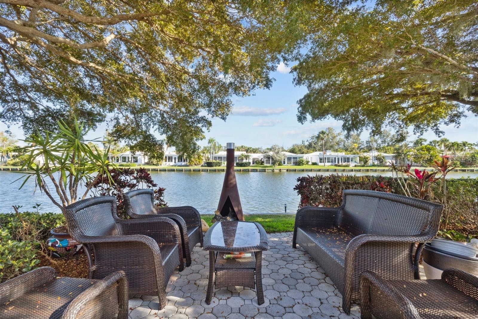 Longboat Key waterfront lifestyle at its finest is now yours to discover. We are proud to present this stunning, fully renovated waterfront two-bedroom, two-bathroom freestanding villa-arguably a premier location within the Spanish Main Yacht Club. Situated in the middle of the north shore of serene Lake Spanish Main, it provides breathtaking views in every direction. The effortless waterfront views are the star of the show, especially enjoyed from your oversized paver patio-ideally designed for perfect island lounging-but also from nearly every room in the home. The waterfront backyard of this residence is framed by mature Black Olive trees that provide dappled shade while perfectly preserving the bright southern light and glistening water. This "center-of-everything" location is truly unbeatable, offering effortless access to your private deeded beach, the deep-water marina, the community pool, and boat slips. Modern Luxury Meets Coastal Comfort- Inside, a comprehensive renovation features custom tile flooring throughout, immediately setting an elevated, modern tone. The gourmet kitchen is an entertainer's dream, boasting custom cabinetry, designer stone countertops, and new stainless steel appliances centered around a first-class island with updated statement lighting. The open-concept floor plan flows seamlessly from the kitchen into an elegant dining area and a spacious family room, where natural light pours in alongside expansive lake views. Beyond, a sun-drenched Florida room?perfectly suited for an artist's studio and private office?offers southern-facing windows where you can watch the sunlight glisten off the water. Private Retreats-The primary suite is a sanctuary of its own, featuring a walk-in closet, generous proportions, Lake Views and a fully renovated ensuite bath. The guest wing is equally impressive, offering an ample bedroom and a stunningly renovated bathroom with a contemporary walk-in shower. Rounding out this exceptional property are the interior workshop, laundry room, additional storage, outdoor shower and a spacious carport perfectly sized for all your island toys. New Windows installed 2019, 2022 brought a new Roof and AC.