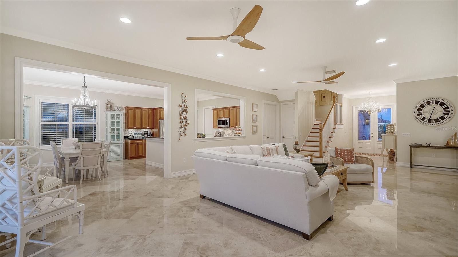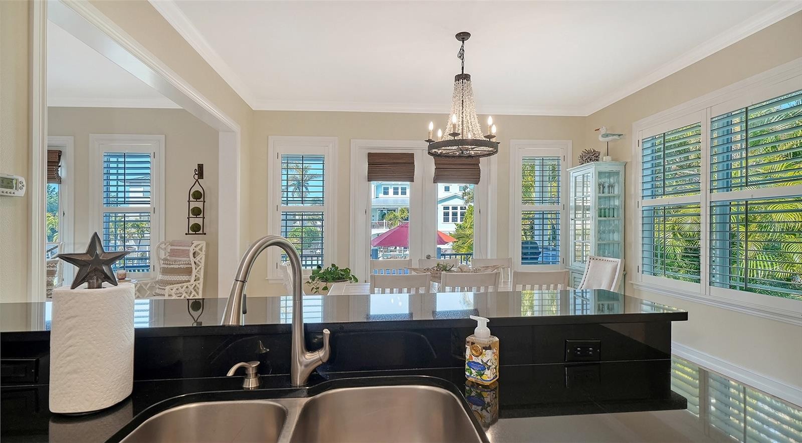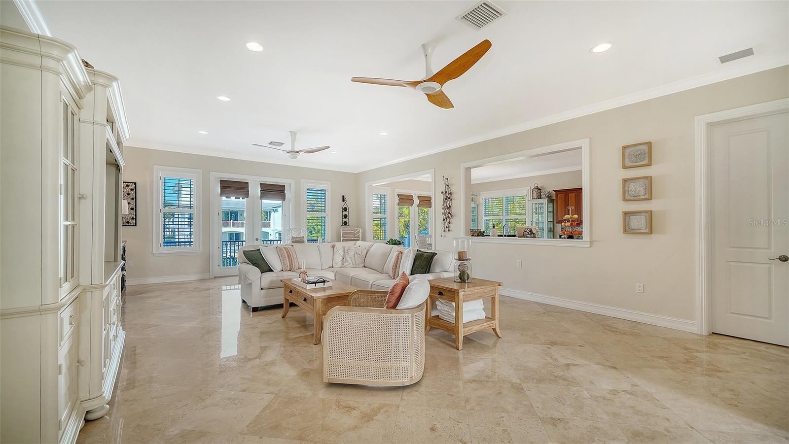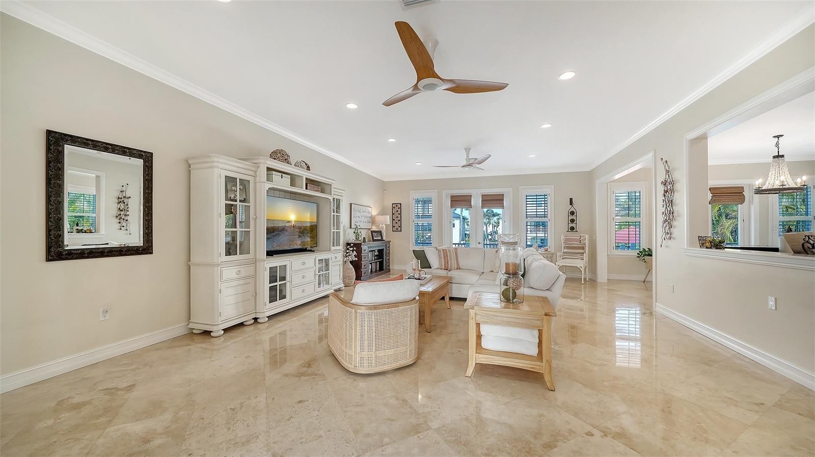 Nestled at one of the highest elevations on Anna Maria Island, this exceptional coastal retreat is located in the highly sought-after North Point Harbour community of Holmes Beach. Built in 2012 with hurricane-rated windows and doors, the home offers both refined elegance and peace of mind, perfectly blending luxury with the relaxed sophistication of island living. A cheerful front porch welcomes you inside, setting the tone for the warmth and charm found throughout. Soaring ceilings and gleaming marble floors create a light, airy ambiance, while coastal architectural details — including multiple porches and charming balconettes — add character and dimension to the design. The beautifully appointed living room is flooded with natural sunlight through two sets of French doors that frame tranquil canal views stretching toward Bimini Bay. These doors open to capture sunny mornings and breathtaking evening sunsets, seamlessly blending indoor and outdoor living. The open floor plan flows effortlessly into the dining and kitchen areas, creating an ideal setting for intimate family meals or hosting guests with ease. The spacious first-floor primary suite serves as a peaceful sanctuary, complete with a lovely ensuite bath and a private deck — perfect for quiet evenings under the coastal sky. Two additional bedrooms are also located on the first floor, including a second ensuite bedroom and a third bedroom with its own bath, offering comfort and privacy for family and visitors alike. Even everyday tasks feel elevated in the expansive and beautifully designed laundry and utility room, conveniently located off the kitchen and garage — a space so thoughtfully appointed it hardly feels like a utility area. The entire second floor is dedicated to a spectacular private suite. This luxurious retreat features two charming balconettes, a large walk-in closet, a spa-like ensuite bath with dual sinks, and a separate office or sitting room — an ideal haven for guests or multi-generational living. Outdoors, boating enthusiasts will appreciate the impressive 20,000-pound boat lift and expansive wraparound dock situated on a short, deep-water canal. With direct access through Bimini Bay to Tampa Bay, the Gulf of Mexico, and the Intracoastal Waterway, this property offers effortless navigation to some of Florida’s most beautiful waters. Life in North Point Harbour is as enriching as it is relaxing. Spend mornings at the nearby Key Royale Golf Club for an early tee time, afternoons joining friends at the community pool or enjoying a friendly match on the tennis courts or padel, and evenings cruising from your private dock into Bimini Bay as the sun melts into the horizon. Here, everyday flows seamlessly from recreation to relaxation, creating a true island lifestyle defined by beauty, convenience, and connection to the water. This extraordinary North Point Harbour residence embodies the very best of elevated coastal living — where thoughtful design, superior craftsmanship, and an unparalleled waterfront location come together to create a truly remarkable island home.