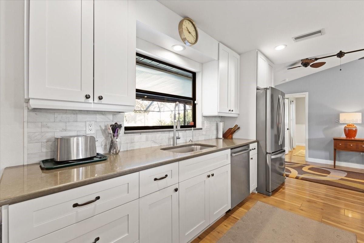 Welcome to this stunning lakefront retreat in Mill Creek! Situated on over an acre with New pavers and finish on pool and spa (2024), and plenty of room for an RV or boat! This freshly painted, beautifully updated 3-bedroom, 2-bath home offers the perfect blend of style, comfort, and community. Recent upgrades include a newer roof (2017), hurricane-rated front door, HVAC, septic system, insulation, water heater, and gutters. Inside you’ll love the remodeled kitchen with quartz countertops, soft-close cabinetry, vented hood, and newer appliances, plus remodeled baths, laminate wood flooring, and new doors throughout. The spacious lanai and pool area are perfect for relaxing or entertaining, plus an epoxy garage floor.What truly makes this home special is the neighborhood itself. The 10–12 surrounding homes are filled with wonderful neighbors who celebrate together, host block parties, share driveway dinners, and look out for one another in every way—from hurricane prep to everyday kindness. You simply can’t put a price on the safety, friendships, and peace of mind this close-knit community provides.Enjoy the feel of the country just minutes from shopping, dining, and UTC, with an easy commute to St. Pete, Tampa, or Sarasota. This is more than just a home—it’s a lifestyle you won’t want to leave!