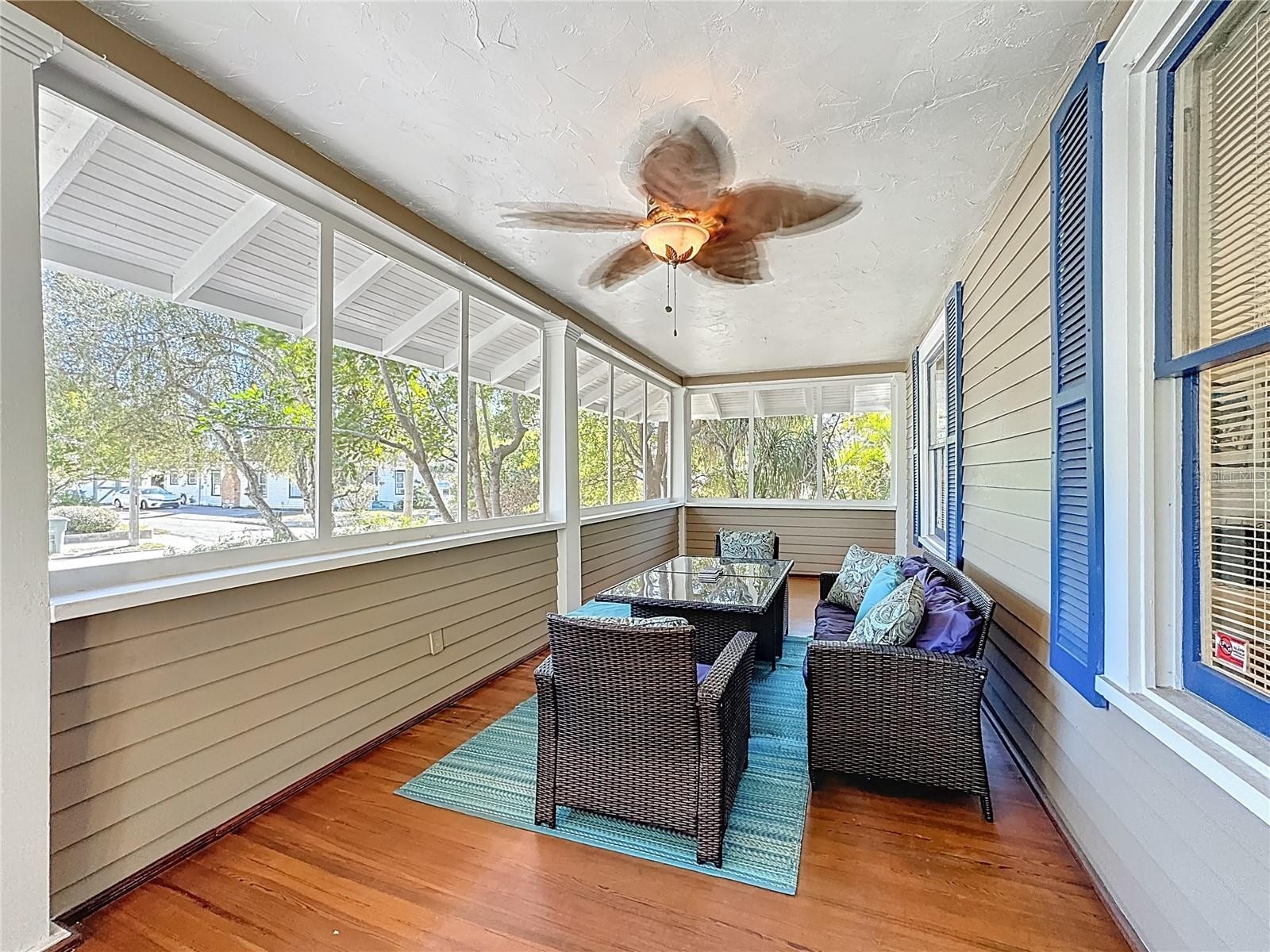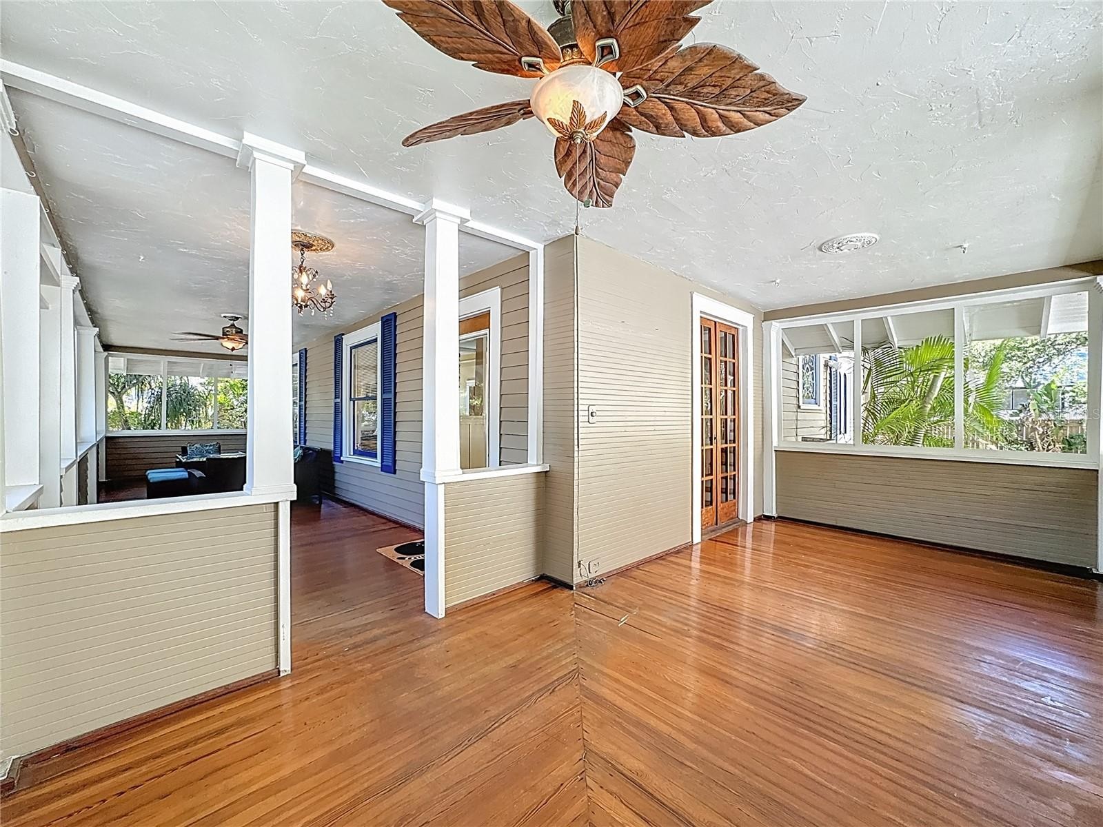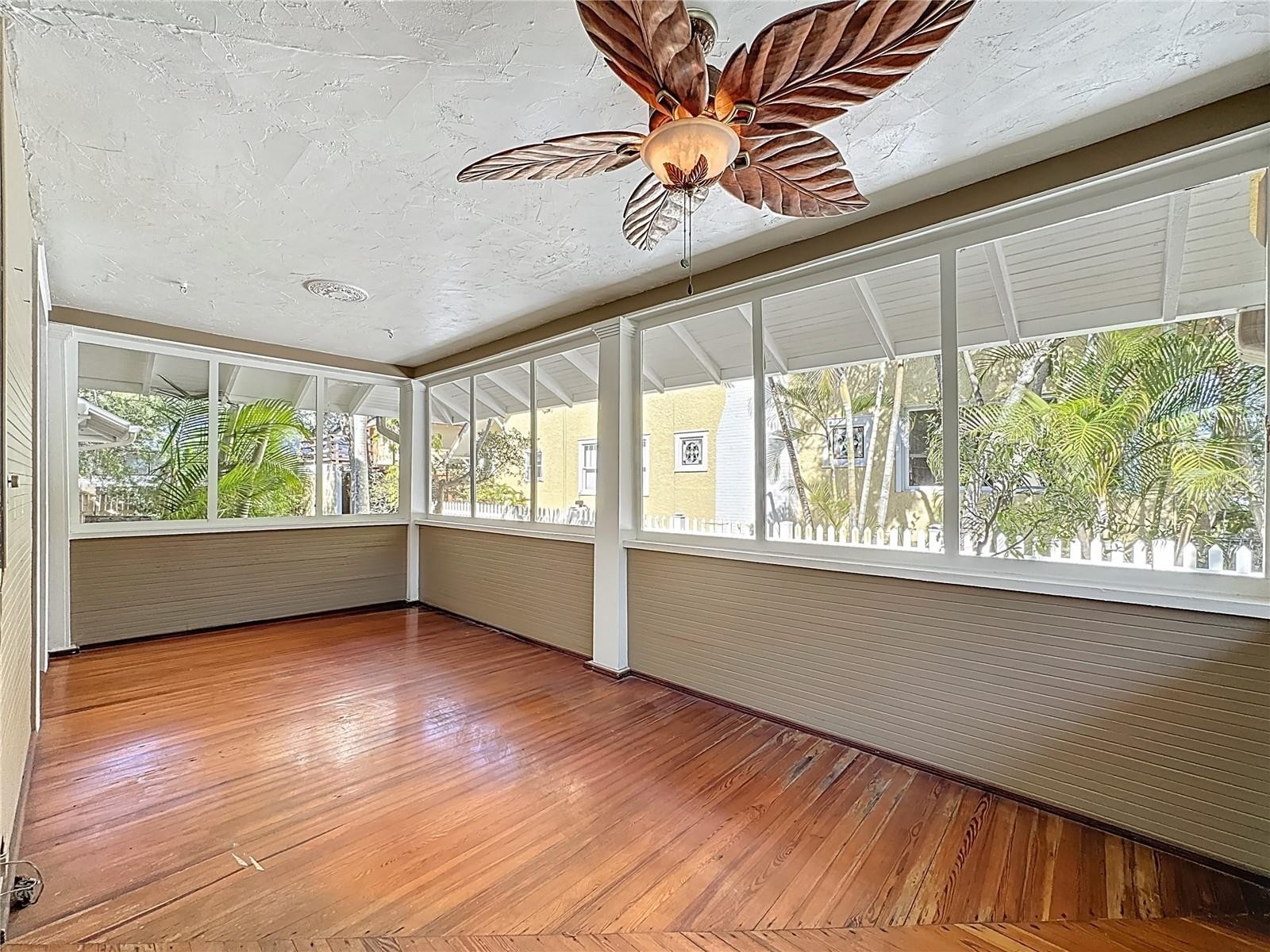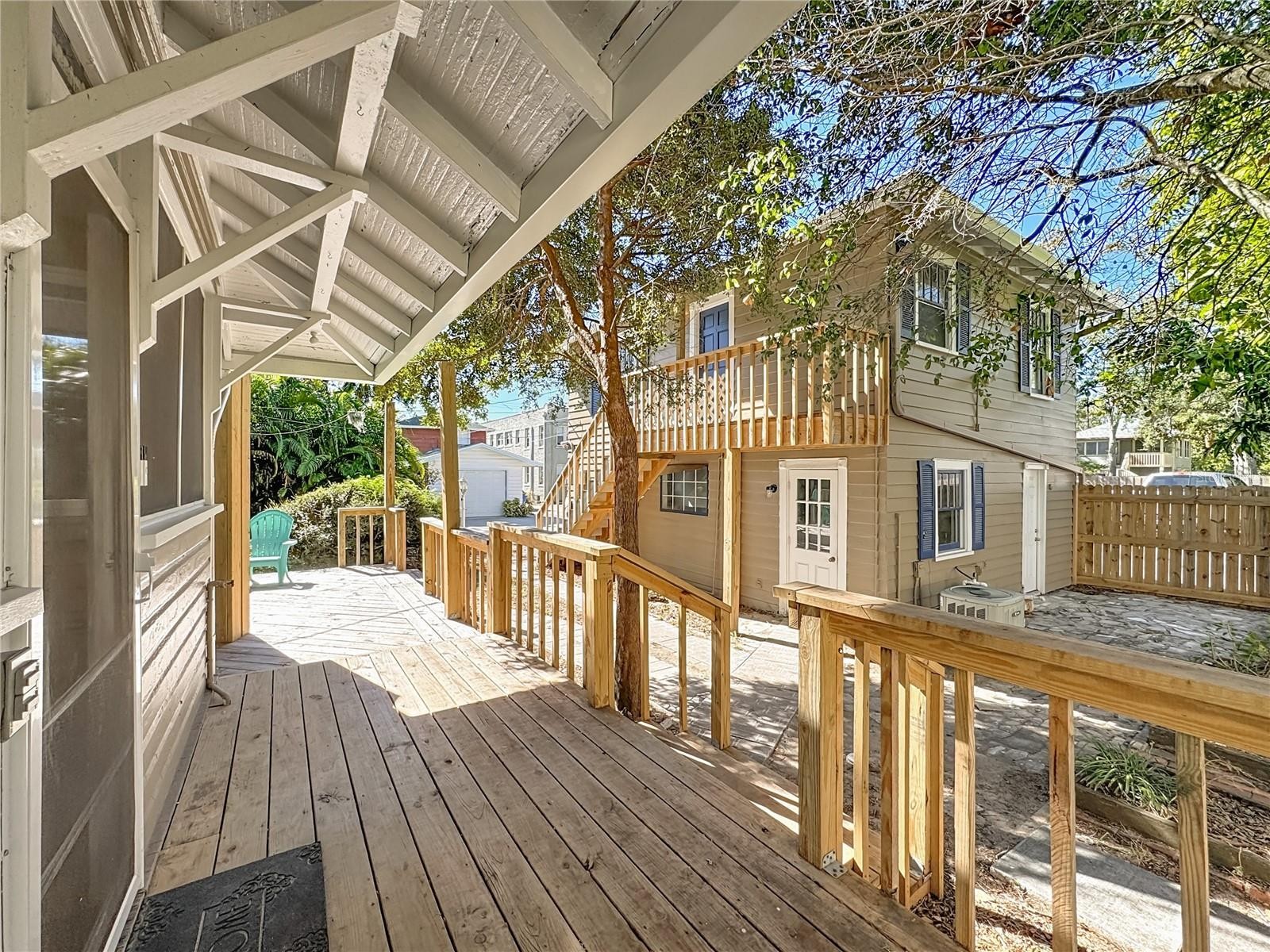 Where History Lives Beautifully — A 1914 Downtown Bradenton Classic! This historic home showcases the timeless craftsmanship and architectural character of early Florida residences. Designed for the subtropical climate, the home features high ceilings, generous windows, and a welcoming wraparound front porch that expands the living space and reflects the relaxed elegance of a bygone era. A coffered wood ceiling adds architectural depth, while hardwood floors, solid interior doors, and classic trim details enhance the historic appeal. The main home features 3 bedrooms and 2.5 baths. Working wood-burning fireplaces are featured in the living room, dining room, and primary bedroom. The primary suite includes an adjoining bonus room ideal for a nursery, office, or fitness space, a walk-in closet, and a renovated ensuite bath with double vanity, walk-in shower, and private water closet. The updated kitchen blends classic charm with modern functionality and includes stainless steel appliances, a double-oven five-burner gas range, dishwasher, and built-in wine cooler. The spacious dining room comfortably accommodates gatherings of family and friends, creating a warm setting for memorable meals. Recent improvements include a new roof and gutters (2025), exterior paint, replacement of the wood deck, stairs, and landing to the garage apartment, and a new rear fence (all 2024). Additional updates include A/C systems replaced in 2019 and 2023, and spray foam insulation added to the attic for improved energy efficiency. A separate garage apartment offers flexibility with one bedroom, full bath, living room, and kitchenette—ideal for guests, extended family, or potential income. Located within walking distance to Old Main Street and downtown Bradenton, enjoy easy access to the Bradenton Public Market, restaurants, boutiques, library, and museums. A rare opportunity to own a historic home with modern livability in the heart of the city.