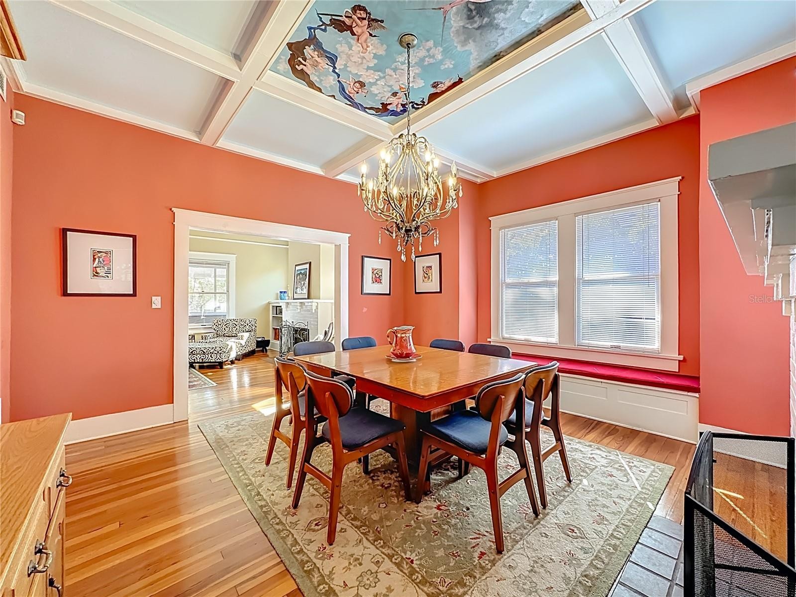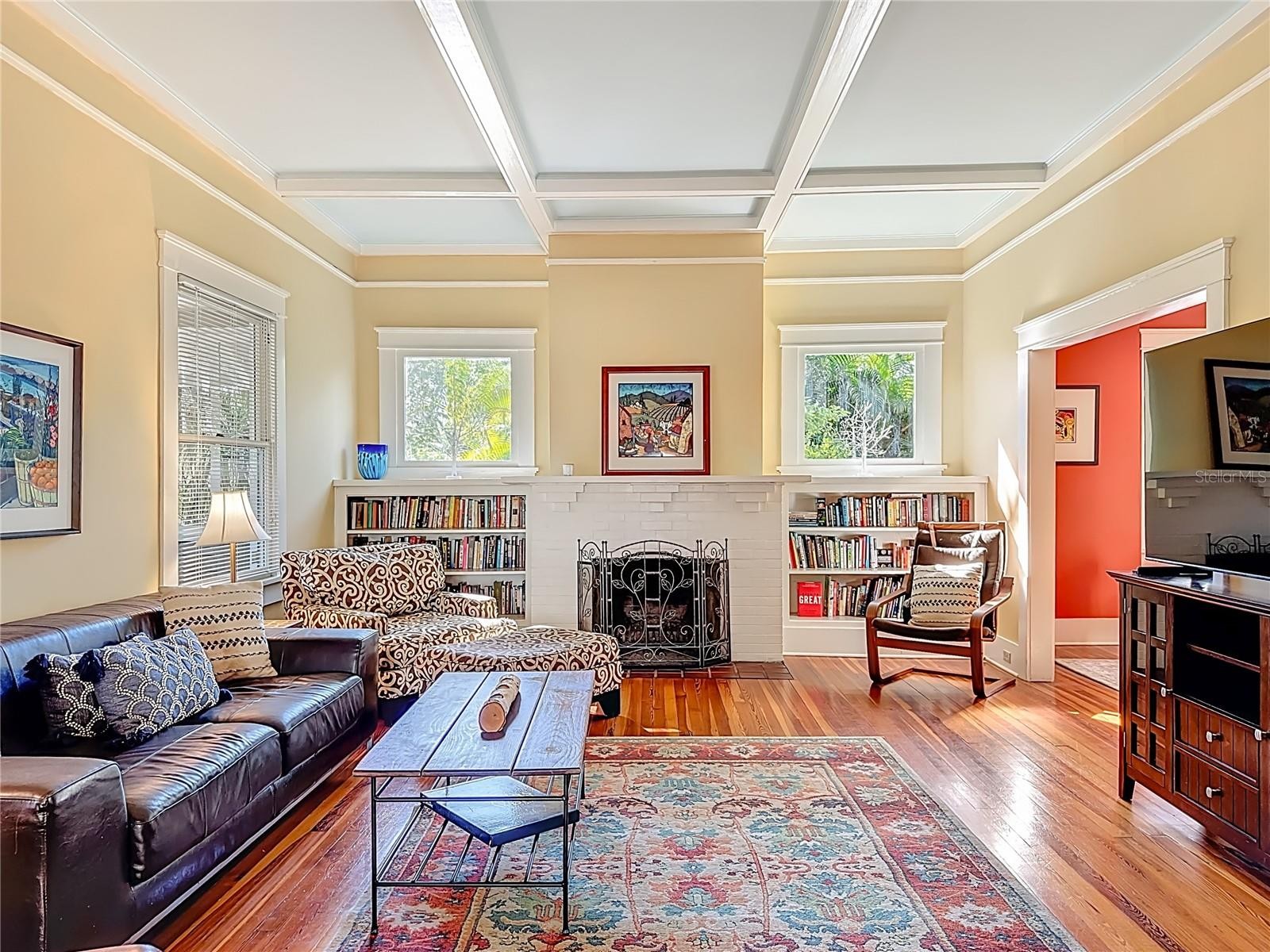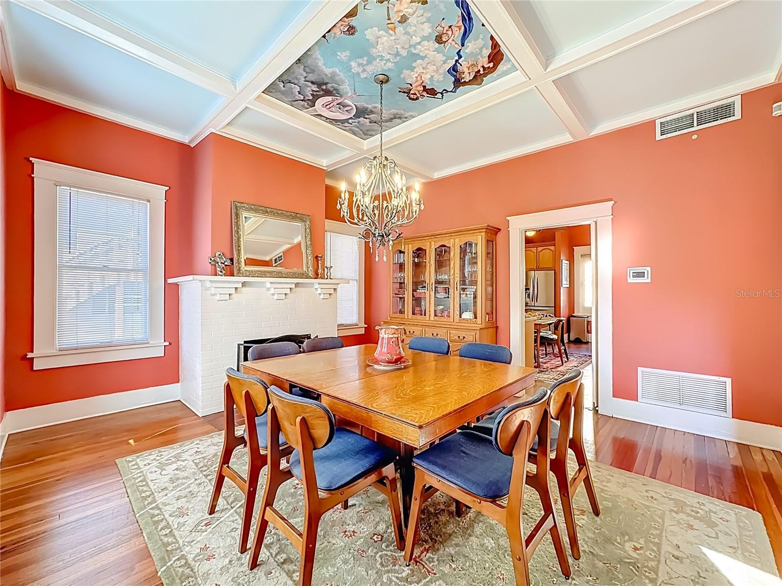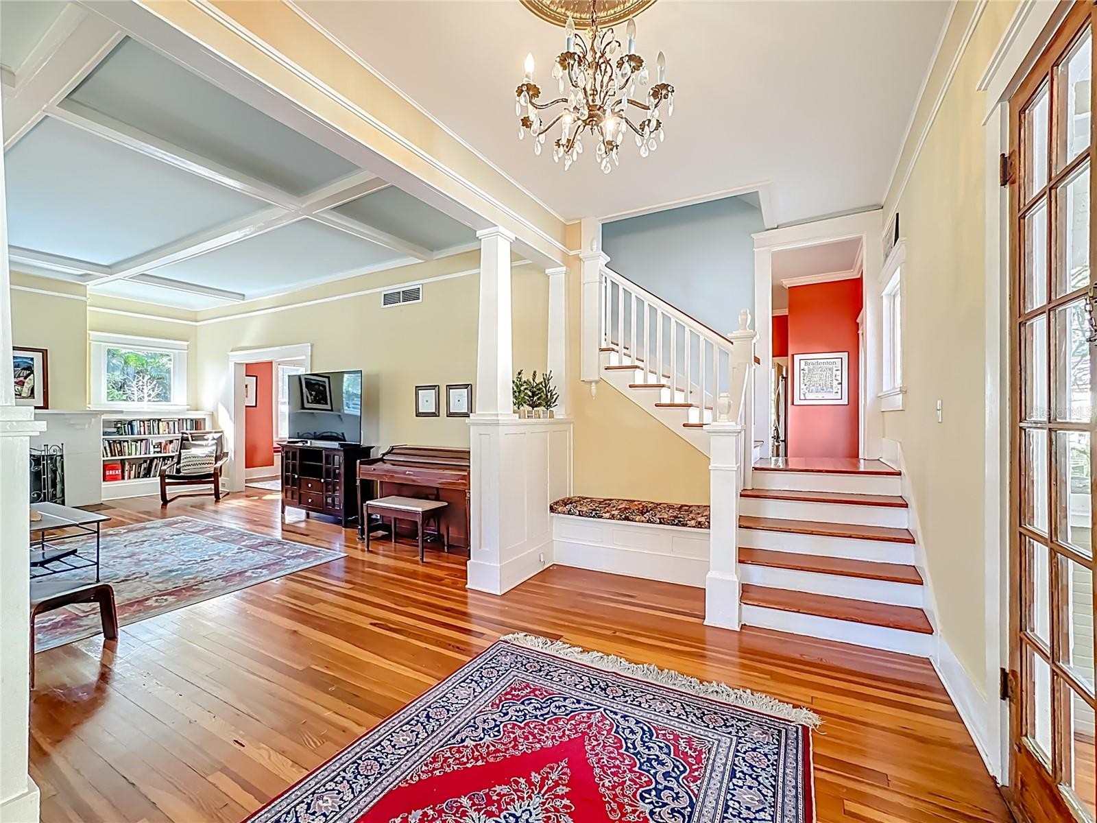 Where History Lives Beautifully — A 1914 Downtown Bradenton Classic! This historic home showcases the timeless craftsmanship and architectural character of early Florida residences. Designed for the subtropical climate, the home features high ceilings, generous windows, and a welcoming wraparound front porch that expands the living space and reflects the relaxed elegance of a bygone era. A coffered wood ceiling adds architectural depth, while hardwood floors, solid interior doors, and classic trim details enhance the historic appeal. The main home features 3 bedrooms and 2.5 baths. Working wood-burning fireplaces are featured in the living room, dining room, and primary bedroom. The primary suite includes an adjoining bonus room ideal for a nursery, office, or fitness space, a walk-in closet, and a renovated ensuite bath with double vanity, walk-in shower, and private water closet. The updated kitchen blends classic charm with modern functionality and includes stainless steel appliances, a double-oven five-burner gas range, dishwasher, and built-in wine cooler. The spacious dining room comfortably accommodates gatherings of family and friends, creating a warm setting for memorable meals. Recent improvements include a new roof and gutters (2025), exterior paint, replacement of the wood deck, stairs, and landing to the garage apartment, and a new rear fence (all 2024). Additional updates include A/C systems replaced in 2019 and 2023, and spray foam insulation added to the attic for improved energy efficiency. A separate garage apartment offers flexibility with one bedroom, full bath, living room, and kitchenette—ideal for guests, extended family, or potential income. Located within walking distance to Old Main Street and downtown Bradenton, enjoy easy access to the Bradenton Public Market, restaurants, boutiques, library, and museums. A rare opportunity to own a historic home with modern livability in the heart of the city.