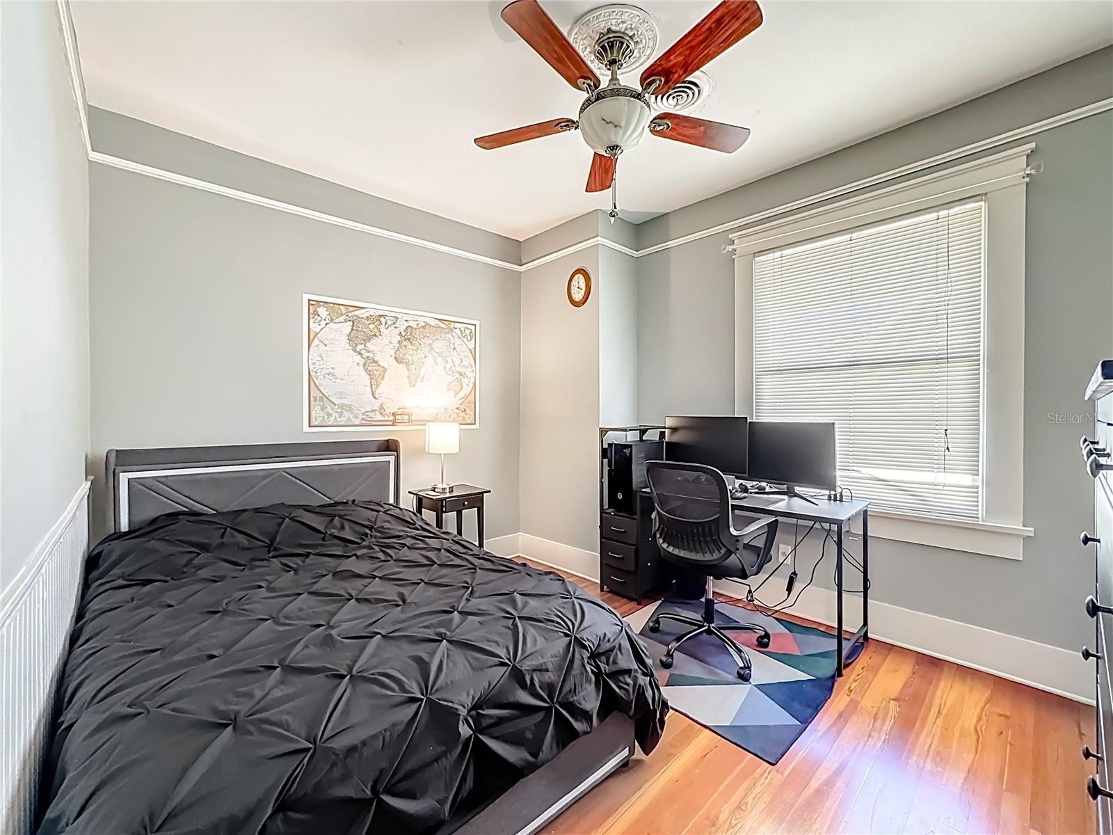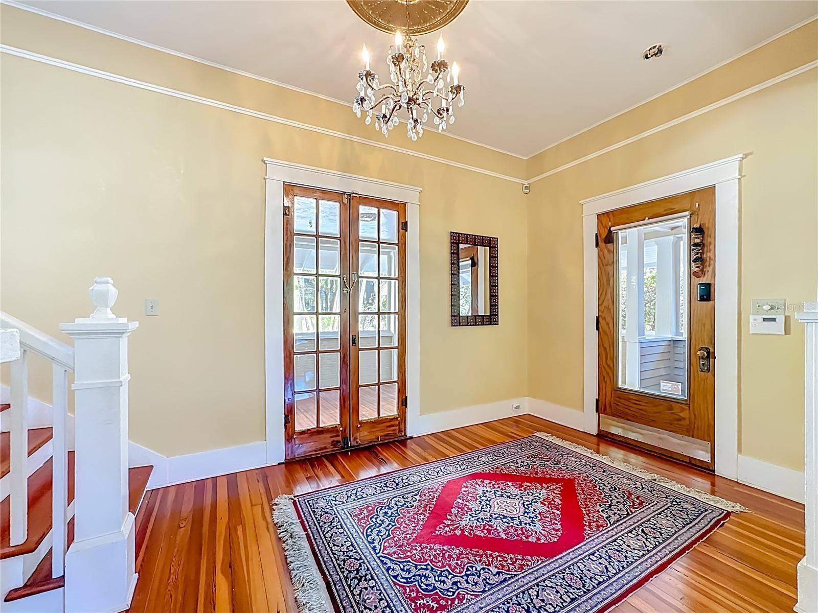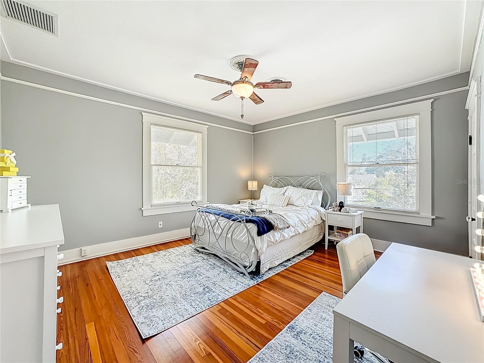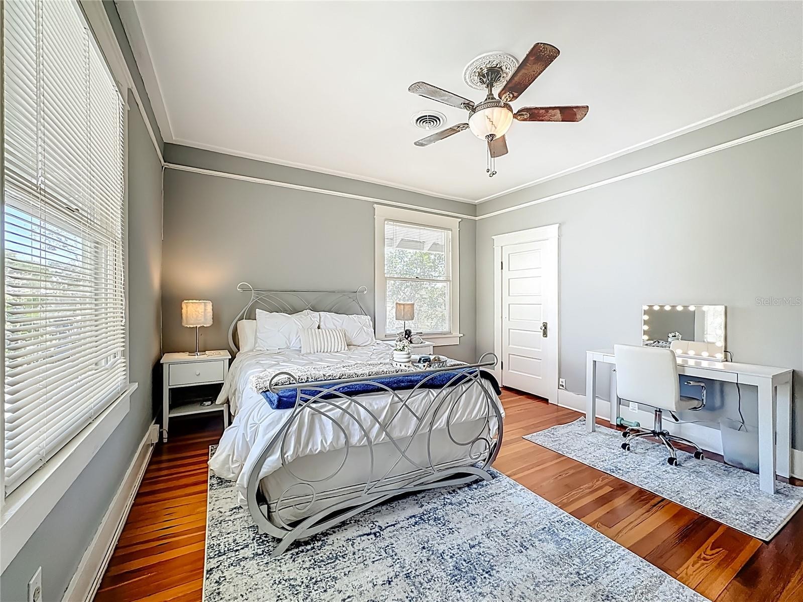 Where History Lives Beautifully — A 1914 Downtown Bradenton Classic! This historic home showcases the timeless craftsmanship and architectural character of early Florida residences. Designed for the subtropical climate, the home features high ceilings, generous windows, and a welcoming wraparound front porch that expands the living space and reflects the relaxed elegance of a bygone era. A coffered wood ceiling adds architectural depth, while hardwood floors, solid interior doors, and classic trim details enhance the historic appeal. The main home features 3 bedrooms and 2.5 baths. Working wood-burning fireplaces are featured in the living room, dining room, and primary bedroom. The primary suite includes an adjoining bonus room ideal for a nursery, office, or fitness space, a walk-in closet, and a renovated ensuite bath with double vanity, walk-in shower, and private water closet. The updated kitchen blends classic charm with modern functionality and includes stainless steel appliances, a double-oven five-burner gas range, dishwasher, and built-in wine cooler. The spacious dining room comfortably accommodates gatherings of family and friends, creating a warm setting for memorable meals. Recent improvements include a new roof and gutters (2025), exterior paint, replacement of the wood deck, stairs, and landing to the garage apartment, and a new rear fence (all 2024). Additional updates include A/C systems replaced in 2019 and 2023, and spray foam insulation added to the attic for improved energy efficiency. A separate garage apartment offers flexibility with one bedroom, full bath, living room, and kitchenette—ideal for guests, extended family, or potential income. Located within walking distance to Old Main Street and downtown Bradenton, enjoy easy access to the Bradenton Public Market, restaurants, boutiques, library, and museums. A rare opportunity to own a historic home with modern livability in the heart of the city.