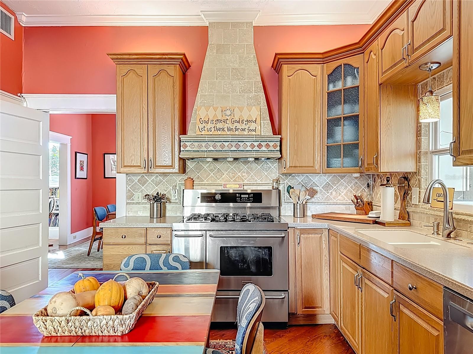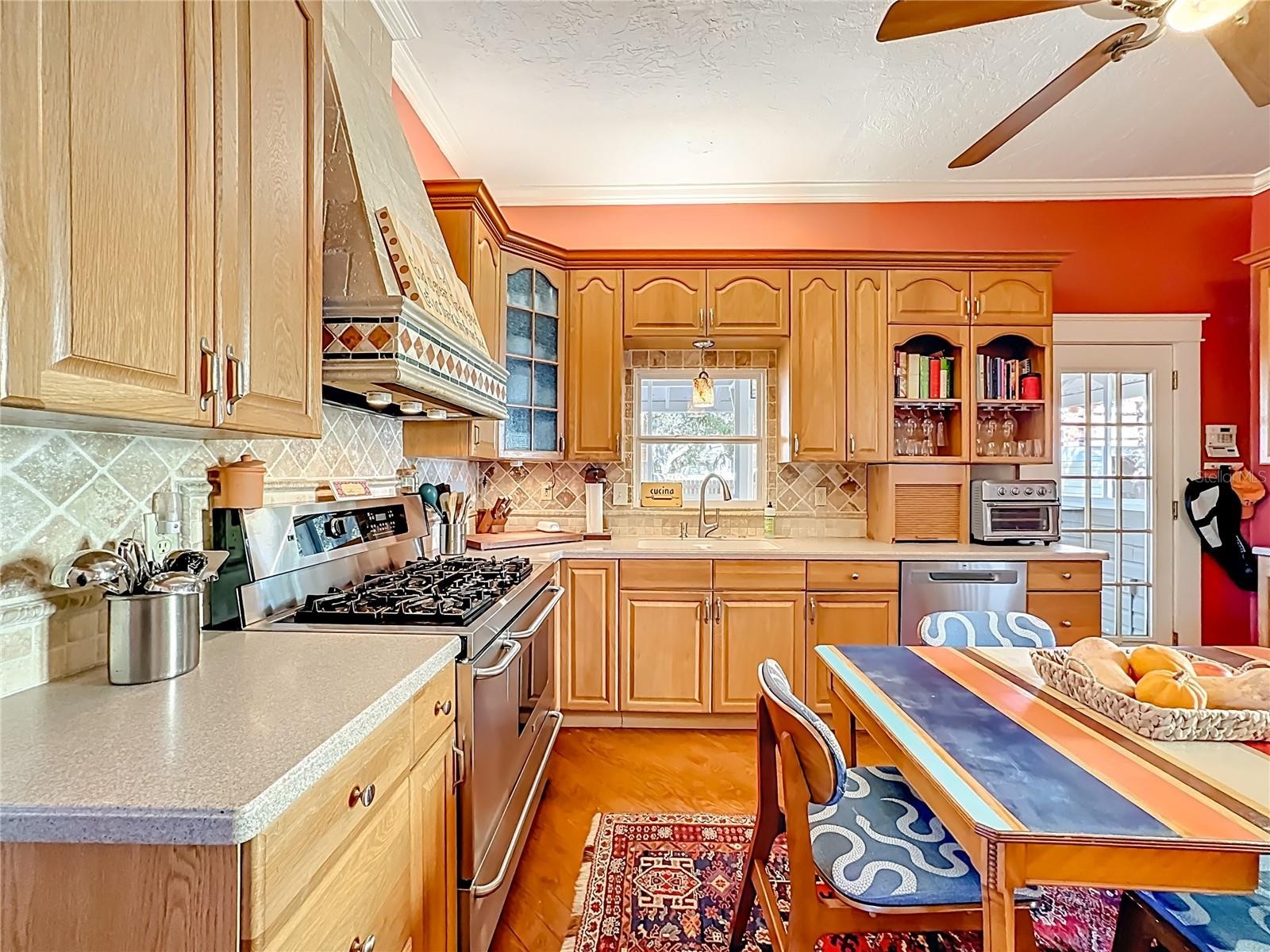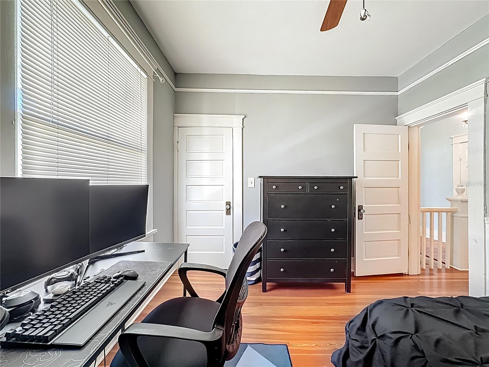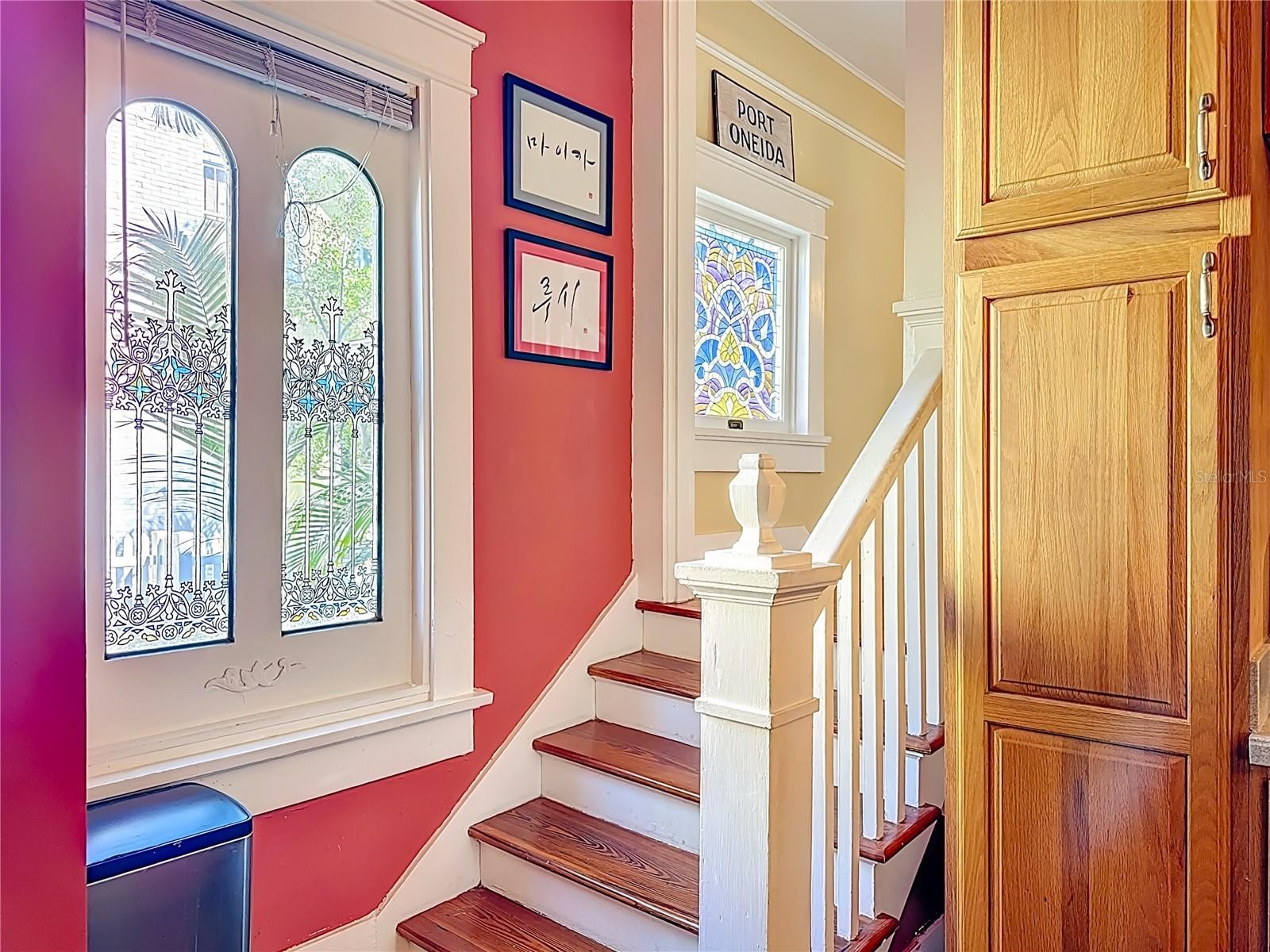 Where History Lives Beautifully — A 1914 Downtown Bradenton Classic! This historic home showcases the timeless craftsmanship and architectural character of early Florida residences. Designed for the subtropical climate, the home features high ceilings, generous windows, and a welcoming wraparound front porch that expands the living space and reflects the relaxed elegance of a bygone era. A coffered wood ceiling adds architectural depth, while hardwood floors, solid interior doors, and classic trim details enhance the historic appeal. The main home features 3 bedrooms and 2.5 baths. Working wood-burning fireplaces are featured in the living room, dining room, and primary bedroom. The primary suite includes an adjoining bonus room ideal for a nursery, office, or fitness space, a walk-in closet, and a renovated ensuite bath with double vanity, walk-in shower, and private water closet. The updated kitchen blends classic charm with modern functionality and includes stainless steel appliances, a double-oven five-burner gas range, dishwasher, and built-in wine cooler. The spacious dining room comfortably accommodates gatherings of family and friends, creating a warm setting for memorable meals. Recent improvements include a new roof and gutters (2025), exterior paint, replacement of the wood deck, stairs, and landing to the garage apartment, and a new rear fence (all 2024). Additional updates include A/C systems replaced in 2019 and 2023, and spray foam insulation added to the attic for improved energy efficiency. A separate garage apartment offers flexibility with one bedroom, full bath, living room, and kitchenette—ideal for guests, extended family, or potential income. Located within walking distance to Old Main Street and downtown Bradenton, enjoy easy access to the Bradenton Public Market, restaurants, boutiques, library, and museums. A rare opportunity to own a historic home with modern livability in the heart of the city.