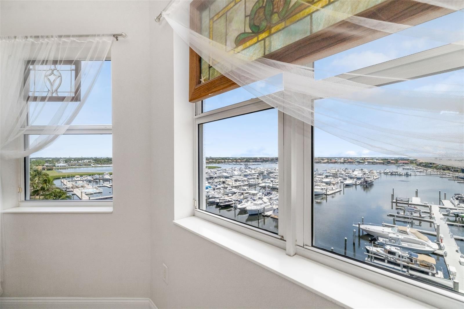 Rare 5th floor condo in an exclusive 7 floor building with a two story penthouse above it offering expansive, unobstructed water views with no parking lot exposure and no trees blocking the scenery. This fully renovated 2-bedroom, 2-bath home with a flex room perfect for an office, den or extra room is completely move-in ready after a full high end contractor-completed renovation where walls, ceilings, plumbing, electrical, lighting, kitchen, and bathrooms were replaced and a wall removed for an open layout. Features include new floor-to-ceiling 3-panel hurricane-impact sliders, imported Italian countertops, Cambria quartz, hidden Fisher Paykel and Monogram appliances, Kohler sink, Grohe and Kohler fixtures, porcelain flooring, LED lighting, custom coffee bar, custom wine bar with fridge, full-size stackable washer/dryer, custom bar stools, brand new HVAC, and a 2025 roof. No need to stress about mold. Chinese drywall and 17 year old appliances and bathtubs are gone. This home is surrounded by green spaces with biking and walking paths, community pool, clubhouse, fitness gym in a gated community with a live guard, this home offers a resort-style lifestyle in one of Florida’s most protected boating harbors. Call to see this home today!