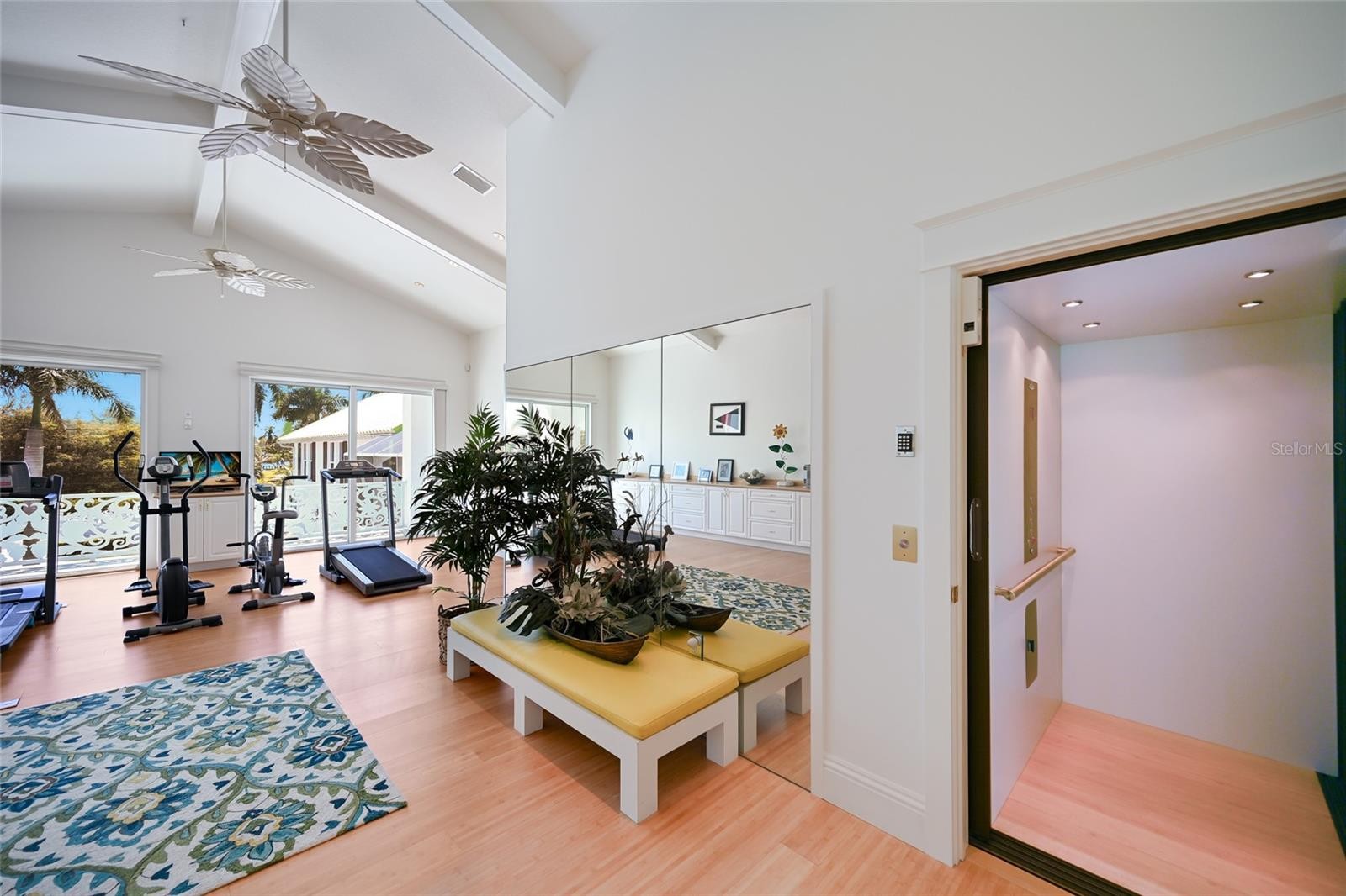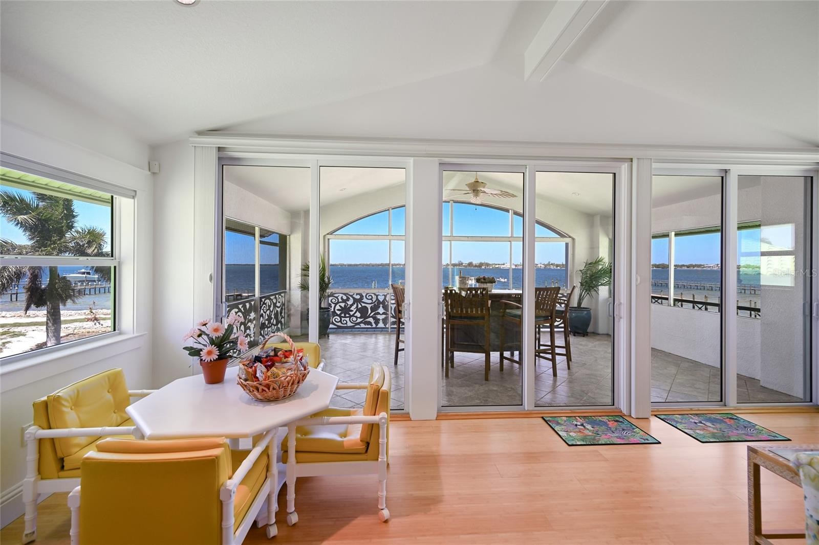 EXTRAORDINARY IN EVERY DETAIL, this GATED RIVERFRONT ESTATE embodies the pinnacle of LUXURY WATERFRONT LIVING! Perfectly positioned on nearly three quarters of an acre along one of the widest stretches of the Manatee River, this artfully designed residence offers 5 bedrooms, 5.5 bathrooms including a private guest apartment, 7,679 square feet of living space, and over 11,000 total square feet, all curated with uncompromising craftsmanship. A private entry through a hand carved iron gate reveals a stunning courtyard with a custom fountain, setting a grand and inviting tone. Inside, refined architectural detail meets relaxed coastal elegance with soaring vaulted ceilings, solid core doors, porcelain tile, bamboo flooring, plantation shutters, and intricate custom millwork. Walls of glass frame sweeping river views, filling the home with natural light while seamlessly connecting indoor and outdoor living. The first floor primary suite is a secluded sanctuary, featuring a private library and an adjacent bedroom ideal for flexibility. The spa inspired bath is a true retreat with dual vanities, a soaking tub, an expansive walk in shower, and a custom designed walk in closet complete with built ins and a center island. An elevator provides seamless access to all levels, where additional bedrooms are generously sized and thoughtfully positioned for privacy. Multiple living areas offer incredible flexibility for a media room, fitness studio, office, or lounge spaces, allowing the home to adapt effortlessly to any lifestyle. The detached guest house further enhances the estate with its own living room, kitchenette, and oversized ensuite bedroom, creating a private and comfortable retreat for visitors. Outdoor living unfolds like a tropical resort. Multiple balconies and screened terraces capture panoramic views across the mile wide river, while the gorgeous pool and spa are surrounded by lush tropical landscaping, creating a serene and secluded oasis. A rare white sandy beach along the river’s edge enhances the setting, offering a truly coastal experience rarely found on the Manatee River. The deep water dock is equipped with two boat lifts and provides direct access to Tampa Bay and the Gulf, ideal for boating, fishing, and sunset cruises right from your backyard. Additional features include a generator, a 3 car garage, and an additional 3 car carport providing ample space for vehicles and guests. A rare offering on one of Bradenton’s most prestigious riverfront addresses, this estate delivers an unparalleled blend of privacy, scale, and resort style living—where every detail is intentional and every day feels like a waterfront escape!